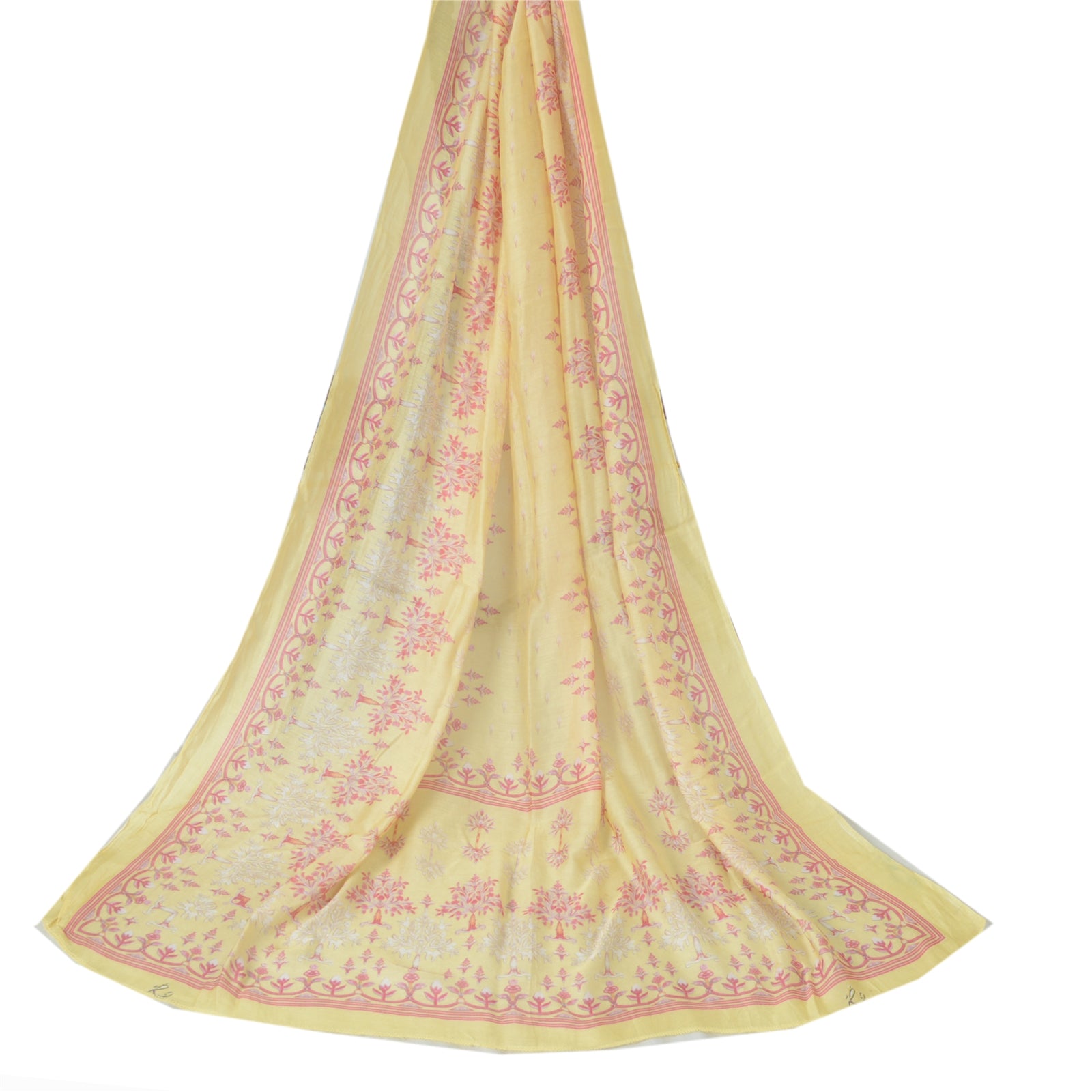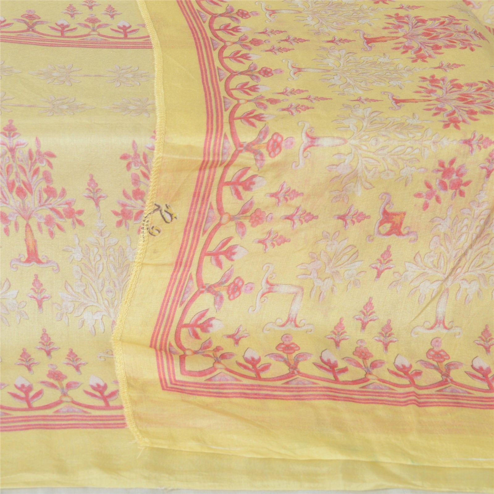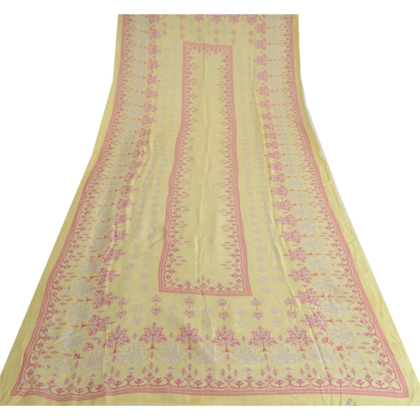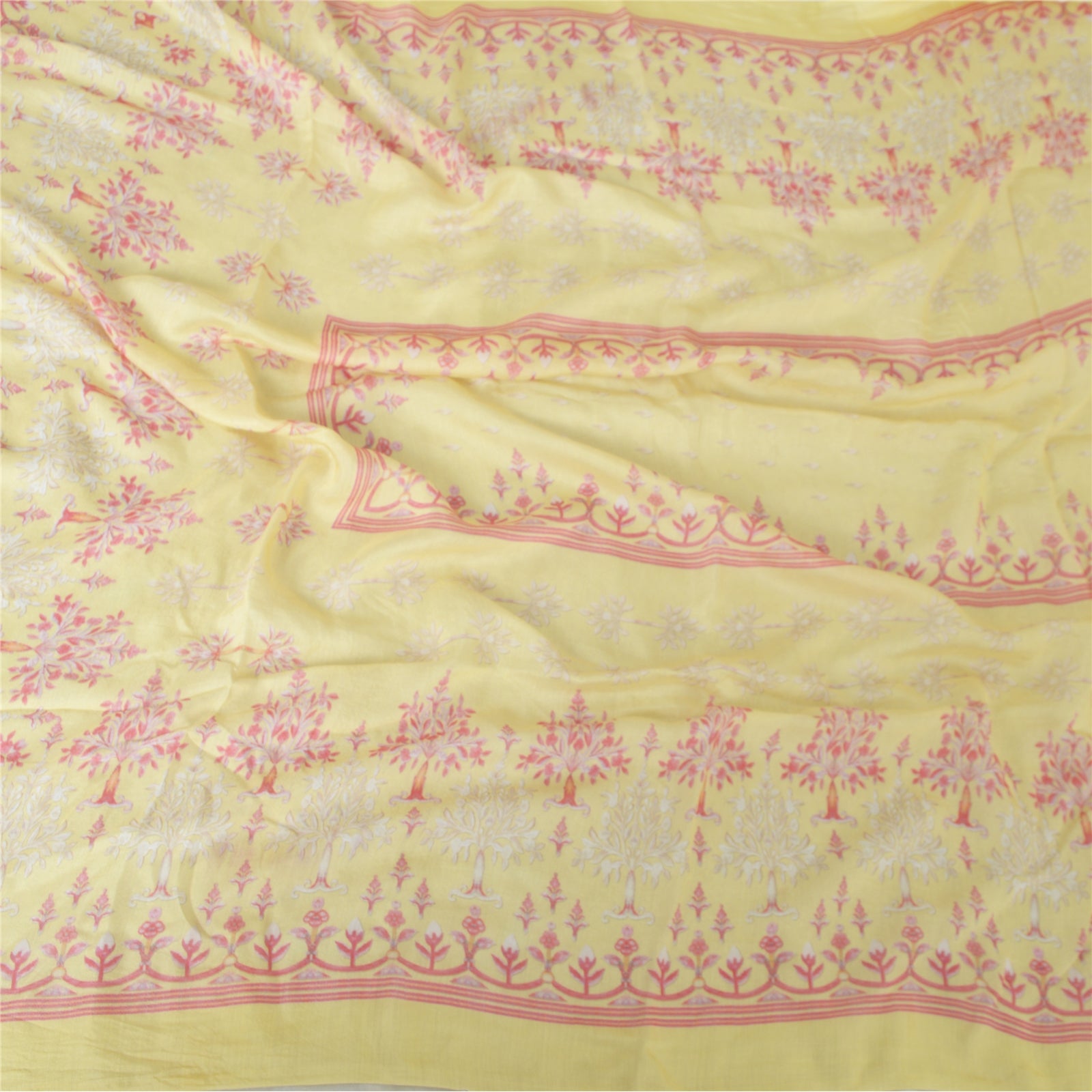 Санскрити Винтаж Длинный Дупатта Чистый Хлопок Лимонно-Желтый Печатный Палантин Шарф Вуаль