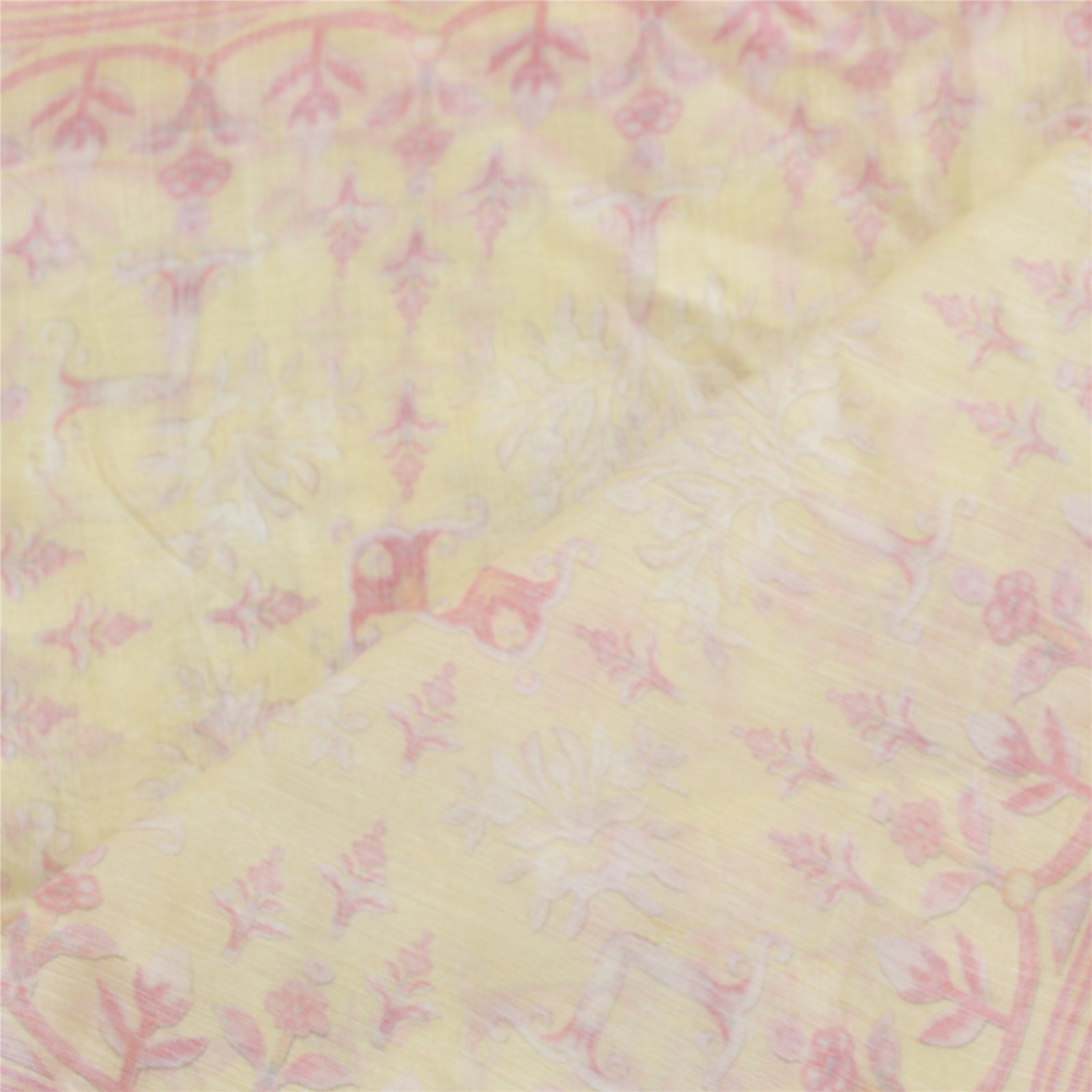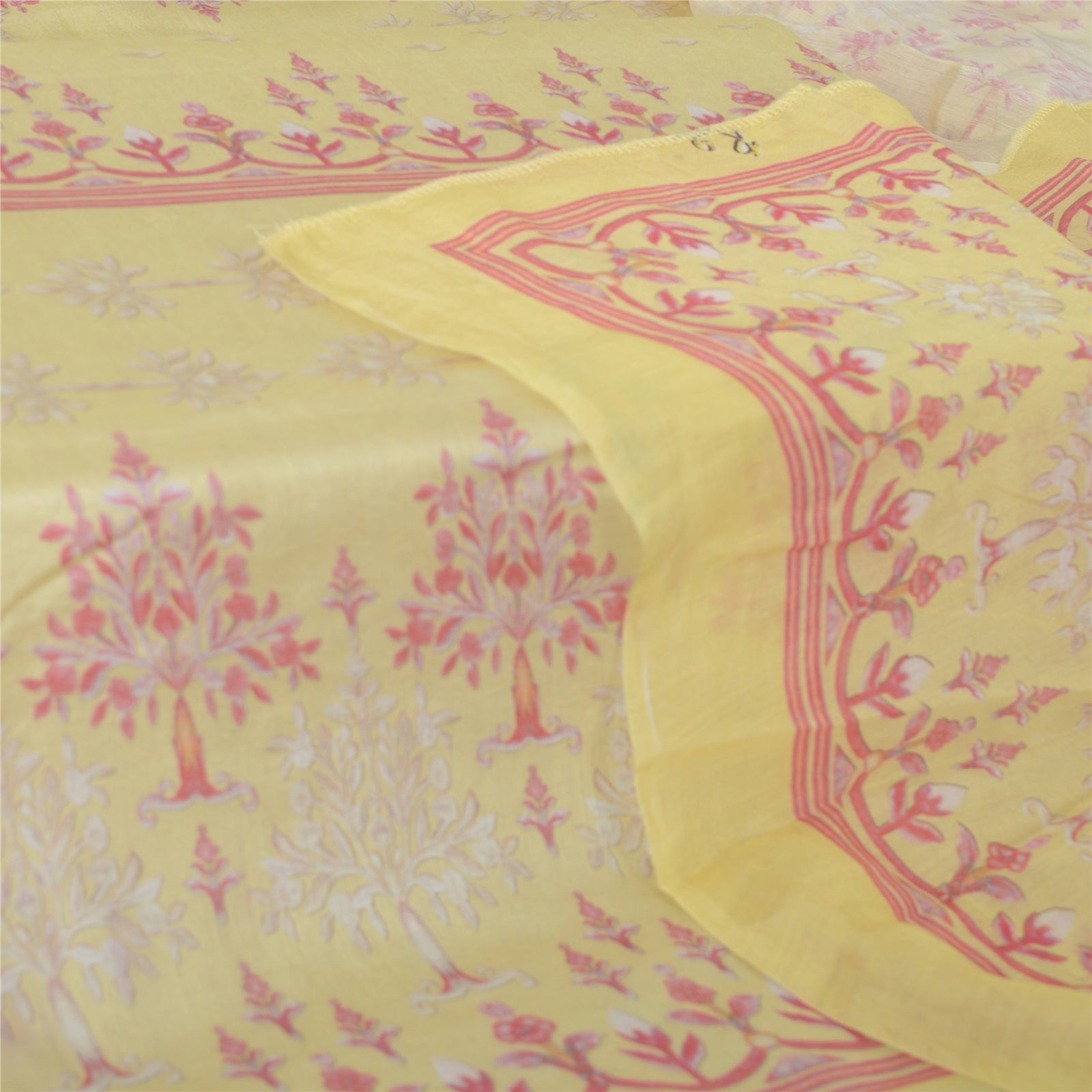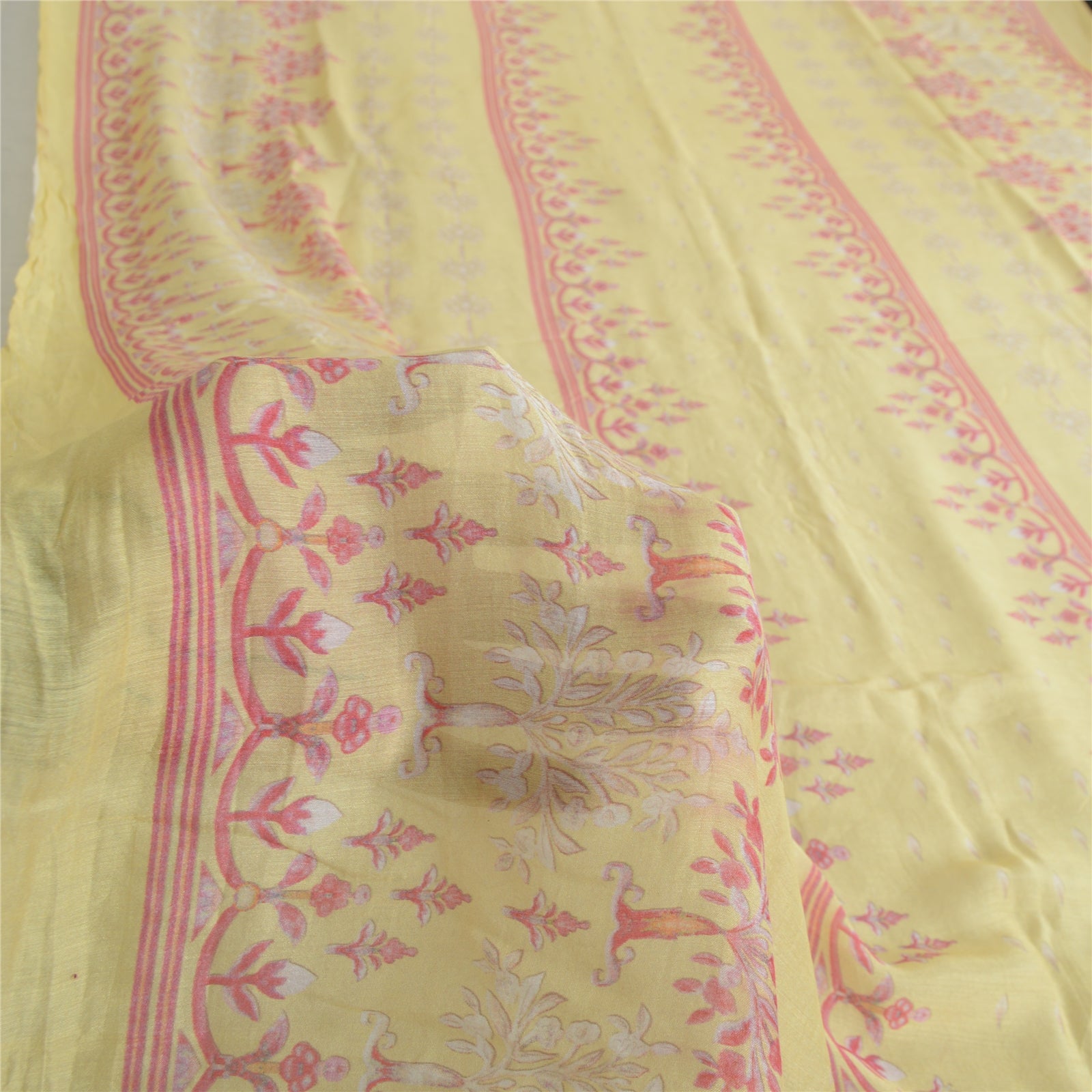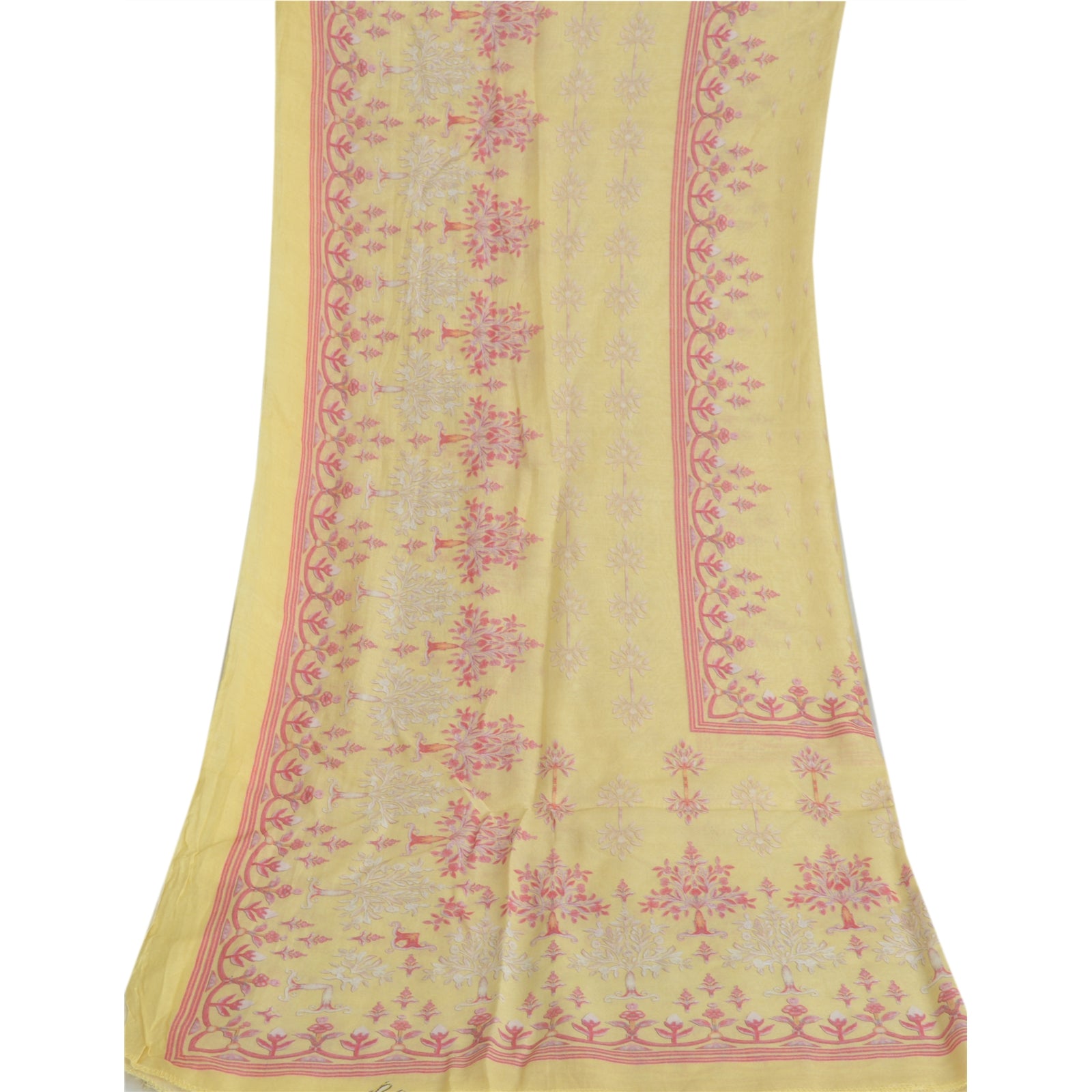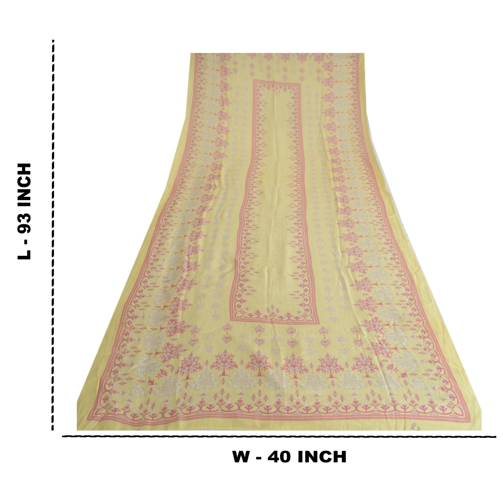 Санскрити Винтаж Длинный Дупатта Чистый Хлопок Лимонно-Желтый Печатный Палантин Шарф Вуаль