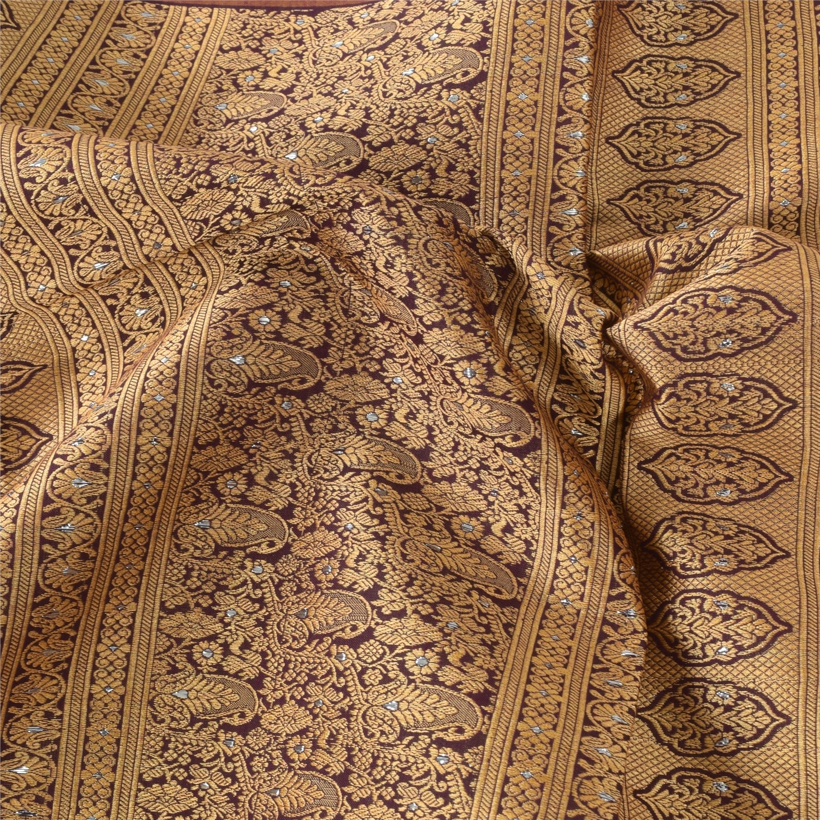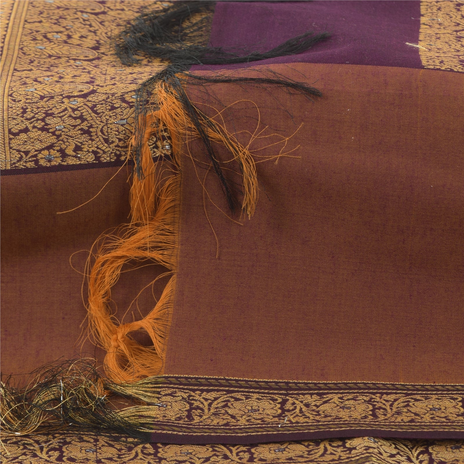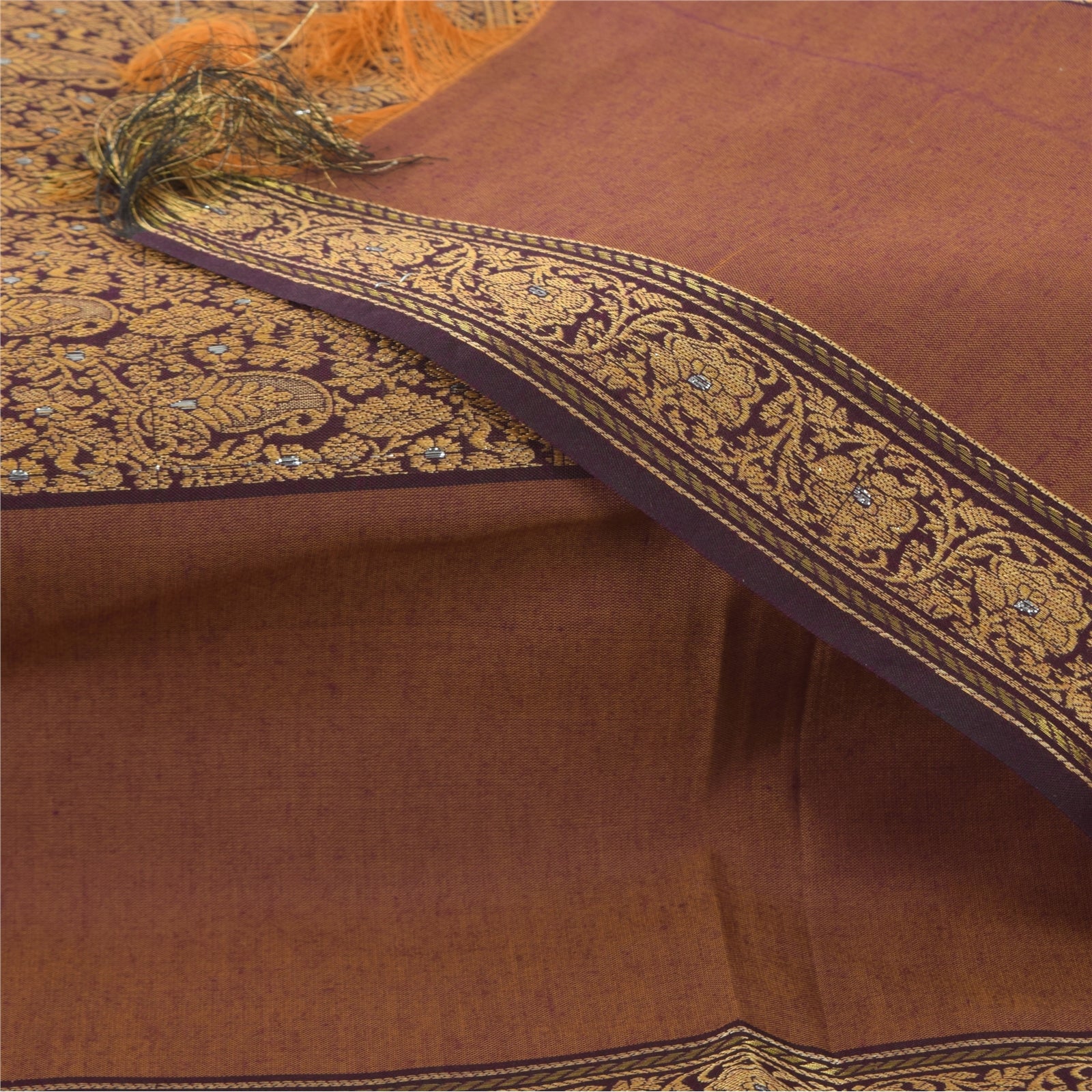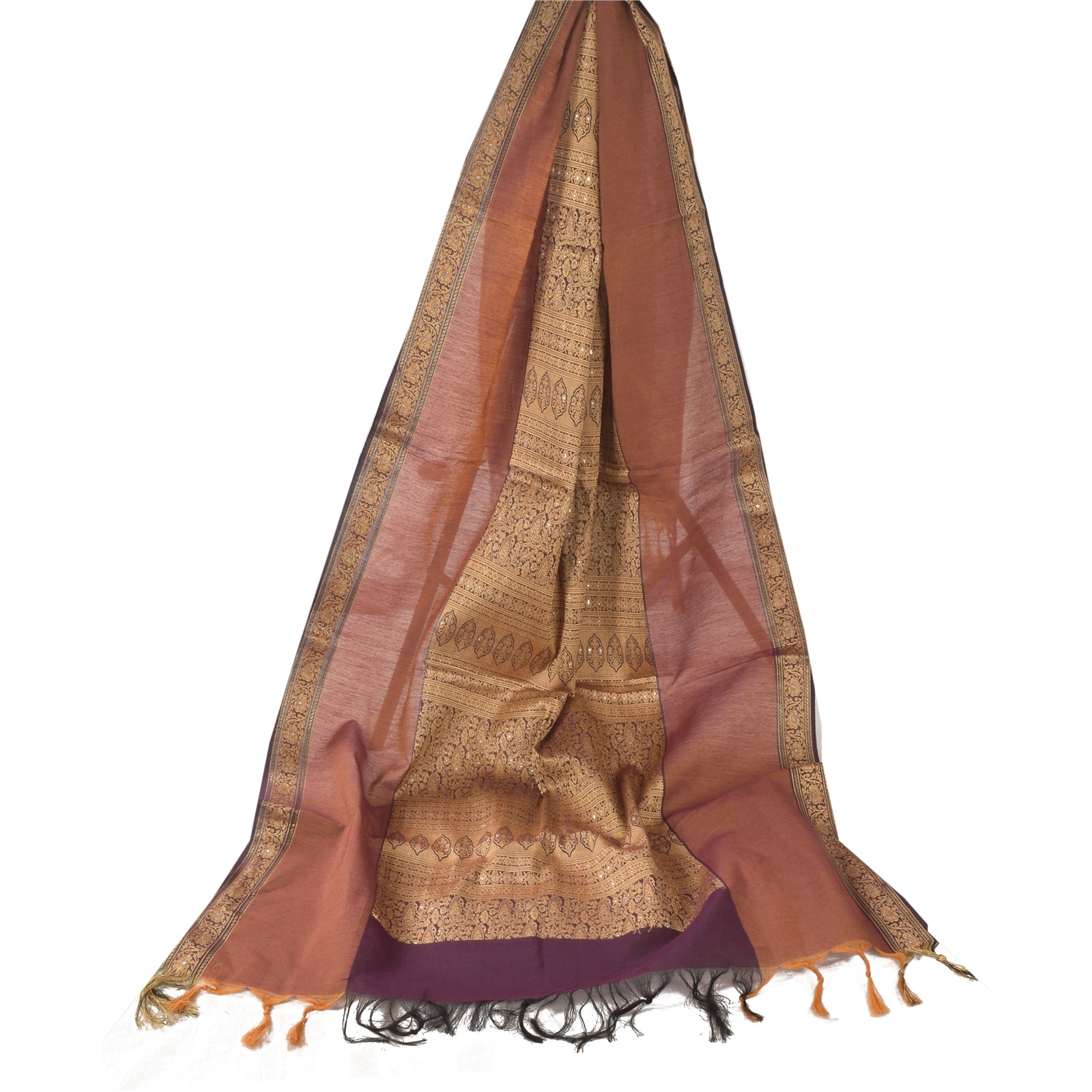 Санскрити Винтаж Длинный Дупатта/Палантат Искусственный Шелк Коричневый Тканый Шарф Вуаль