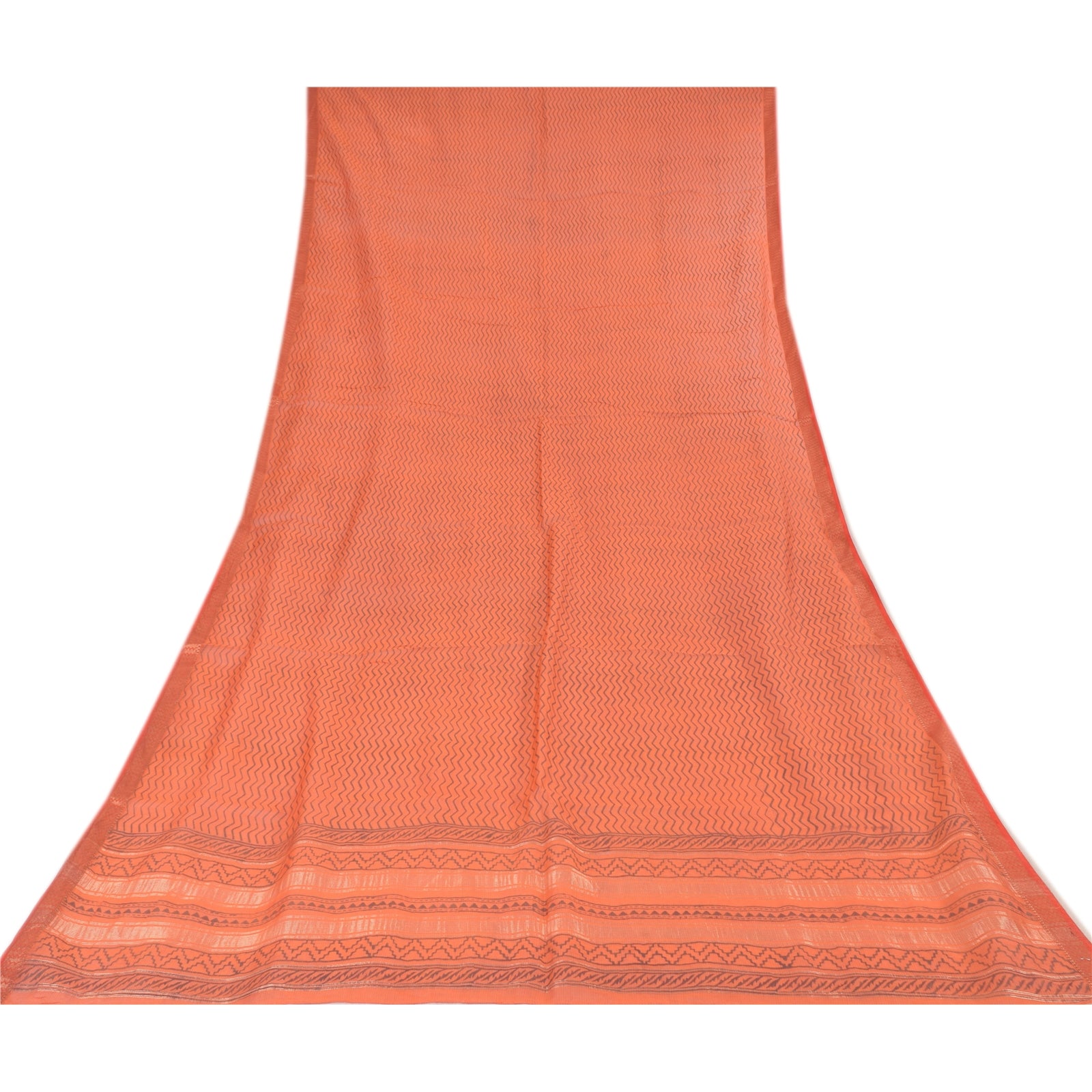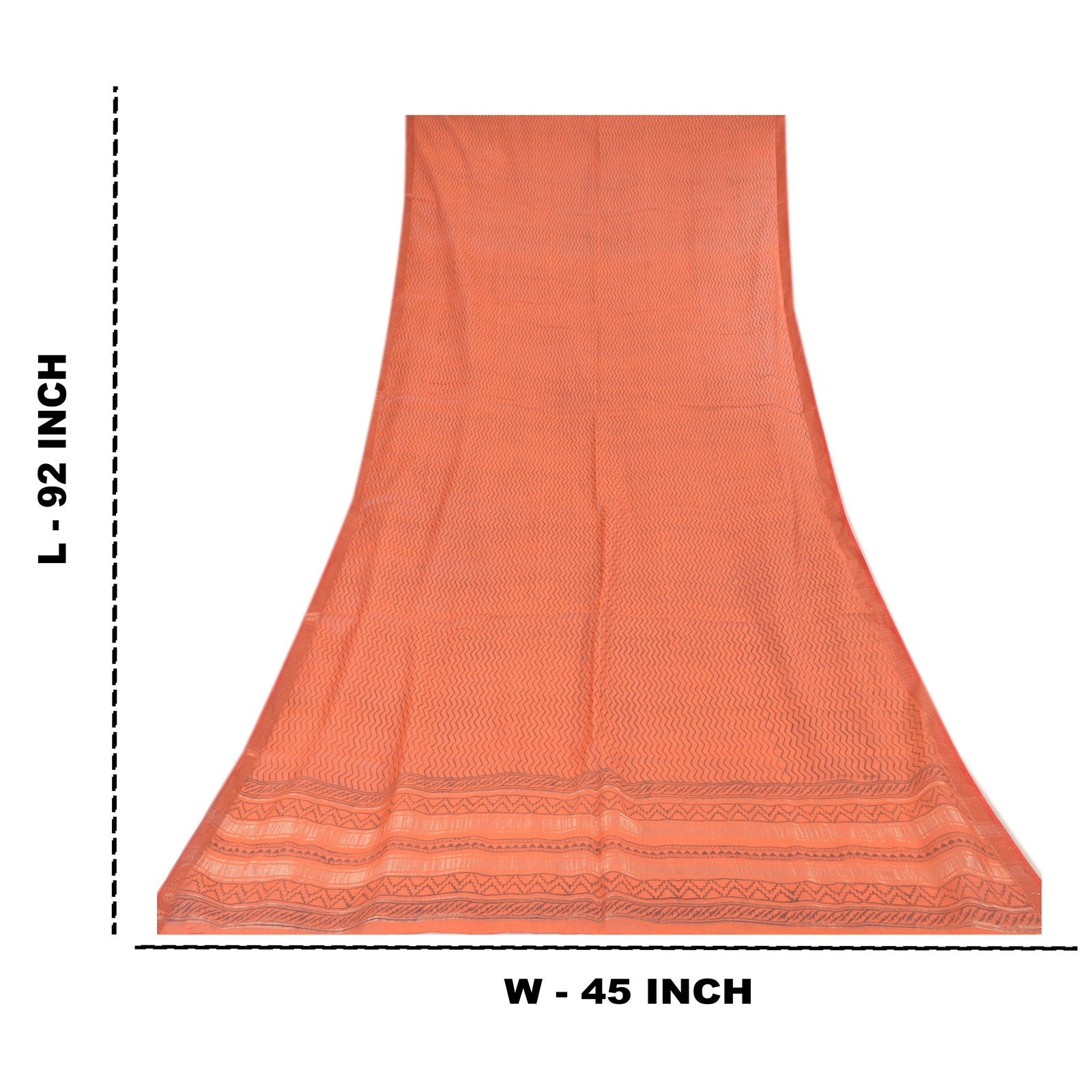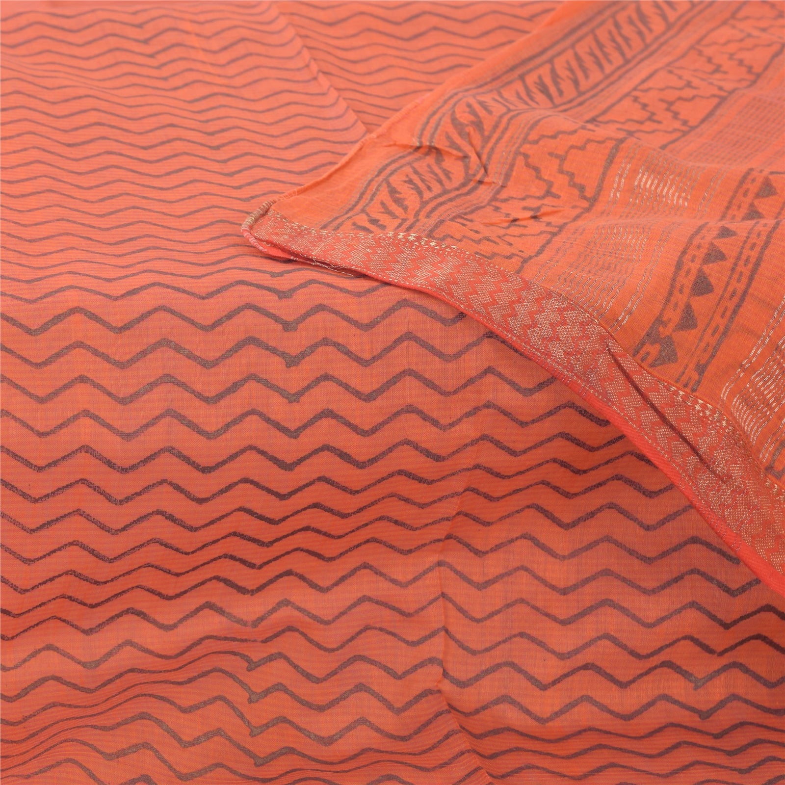 Санскрити Винтаж Длинный Дупатта/Палантин Чистый Хлопок Темно-Персиковый Печатный Шарф Вуаль