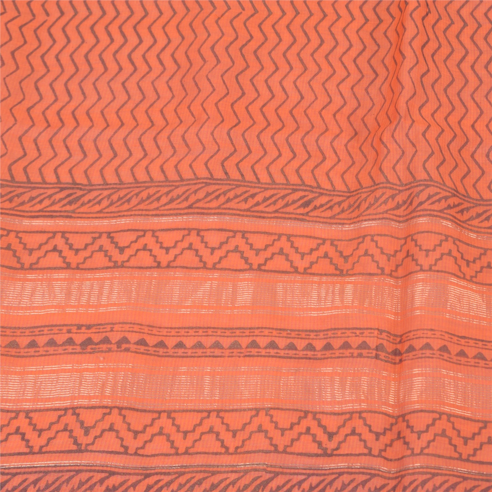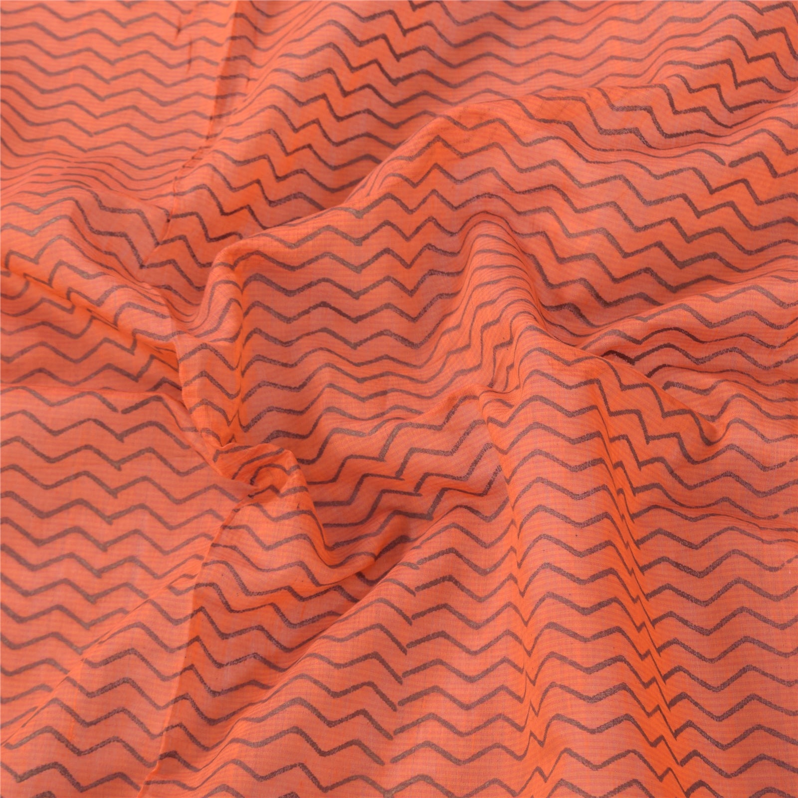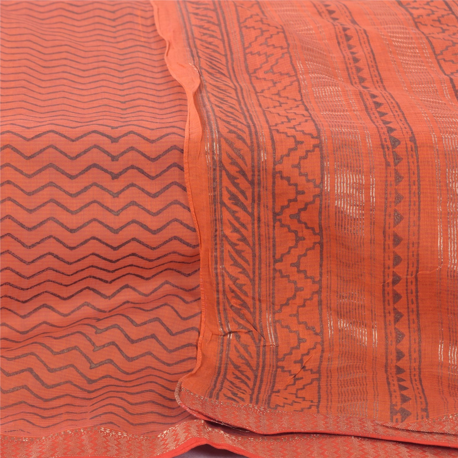 Санскрити Винтаж Длинный Дупатта/Палантин Чистый Хлопок Темно-Персиковый Печатный Шарф Вуаль