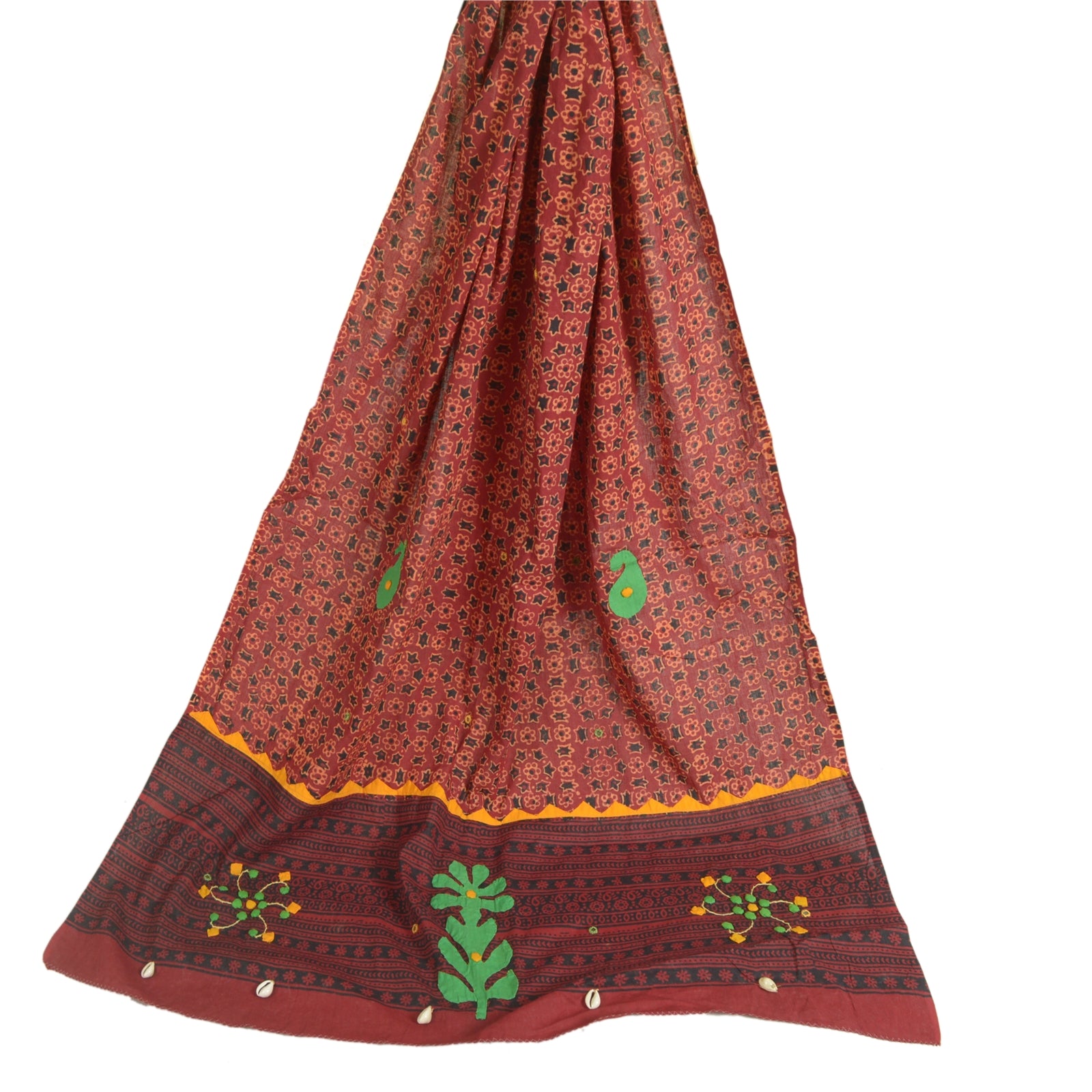 Санскритский винтажный длинный палантин дупатта из чистого хлопка темно-красной вуали Ajrakh Unquie