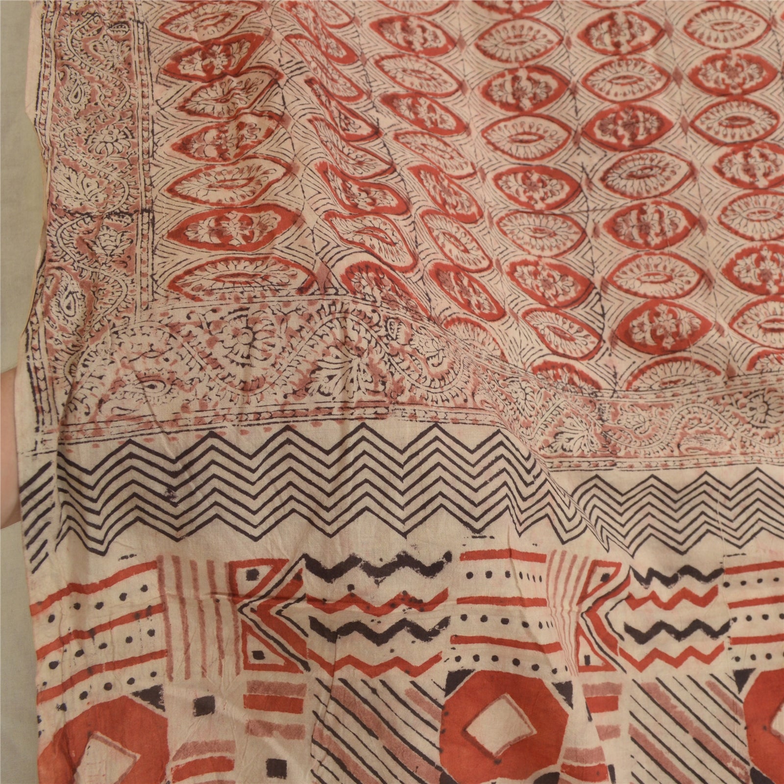 «ЦВЕТ ИЛИ ОТТЕНОК ИЗДЕЛИЯ МОЖЕТ БЫТЬ ТЕМНЕЕ ИЛИ СВЕТЛЕЕ, ЧЕМ НА ИЗОБРАЖЕНИИ». Красивый длинный шарф/дупатта из чистого хлопка цвета слоновой кости и красного цвета с принтом в стиле каламкари. Центральная часть дупатты с напечатанным цветочным узором. Край украшен блочной печатью и узором каламкари с цветочным и зигзагообразным узором, что действительно подчеркивает красоту дупатты/палантина. Эту дупатту/палантин можно использовать для различных идей по рукоделию. Используйте ее для дизайна платьев, в качестве пледа, для оформления окон, обивки, столового белья и многого другого. Дайте волю своим творческим сокам. Обратите внимание, что зарубежные покупатели: Импортные пошлины, налоги и сборы не включены в цену товара или стоимость почтовых расходов. Эти сборы оплачивает покупатель. Пожалуйста, свяжитесь с таможней вашей страны, чтобы определить, какими будут эти дополнительные расходы, до торгов или покупки. Покупатель оплачивает таможенную пошлину/налог. Она рассчитывается и взимается по-разному в каждой стране. Как продавец, я не имею никакого контроля над ней. НДС или налог с продаж рассчитывается платформой во время оформления заказа. Таможенный сбор оплачивается во время доставки.