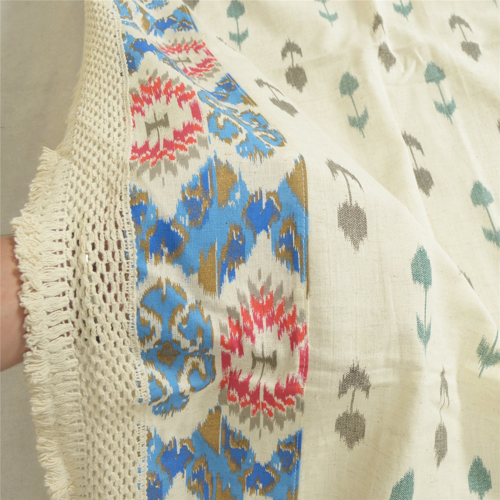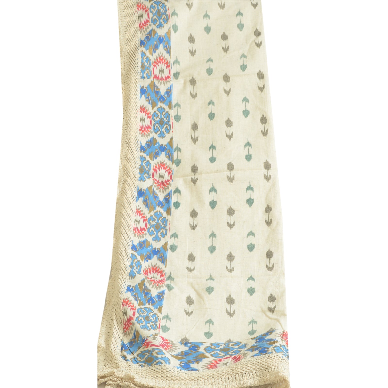 «ЦВЕТ ИЛИ ОТТЕНОК ИЗДЕЛИЯ МОЖЕТ БЫТЬ ТЕМНЕЕ ИЛИ СВЕТЛЕЕ, ЧЕМ НА ИЗОБРАЖЕНИИ». Красивый длинный шарф/дупатта цвета слоновой кости из 100% чистого хлопка в технике икат. Центральная часть многоцветного цветочного узора дупатта в технике икат. Край выполнен из экологически чистой ткани в технике икат, а белое кружево крючком действительно подчеркивает красоту дупатты/палантина. Эту дупатту/палантин можно использовать для различных идей по рукоделию. Используйте ее для дизайна платьев, в качестве пледа, для оформления окон, обивки, столового белья и многого другого. Дайте волю своим творческим сокам. Обратите внимание, что зарубежные покупатели: Импортные пошлины, налоги и сборы не включены в цену товара или стоимость почтовых расходов. Эти сборы оплачивает покупатель. Пожалуйста, свяжитесь с таможней вашей страны, чтобы определить, какими будут эти дополнительные расходы, до торгов или покупки. Покупатель оплачивает таможенную пошлину/налог. Она рассчитывается и взимается по-разному в каждой стране. Как продавец, я не имею никакого контроля над ней. НДС или налог с продаж рассчитывается платформой во время оформления заказа. Таможенный сбор оплачивается во время доставки.