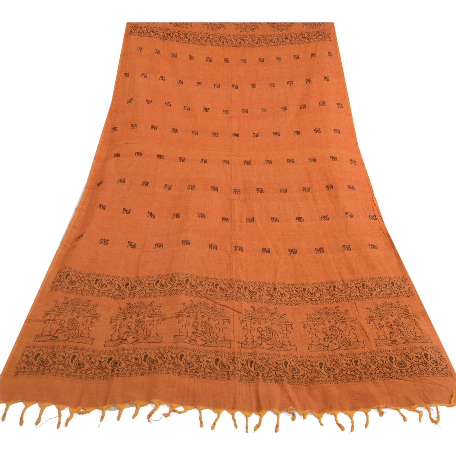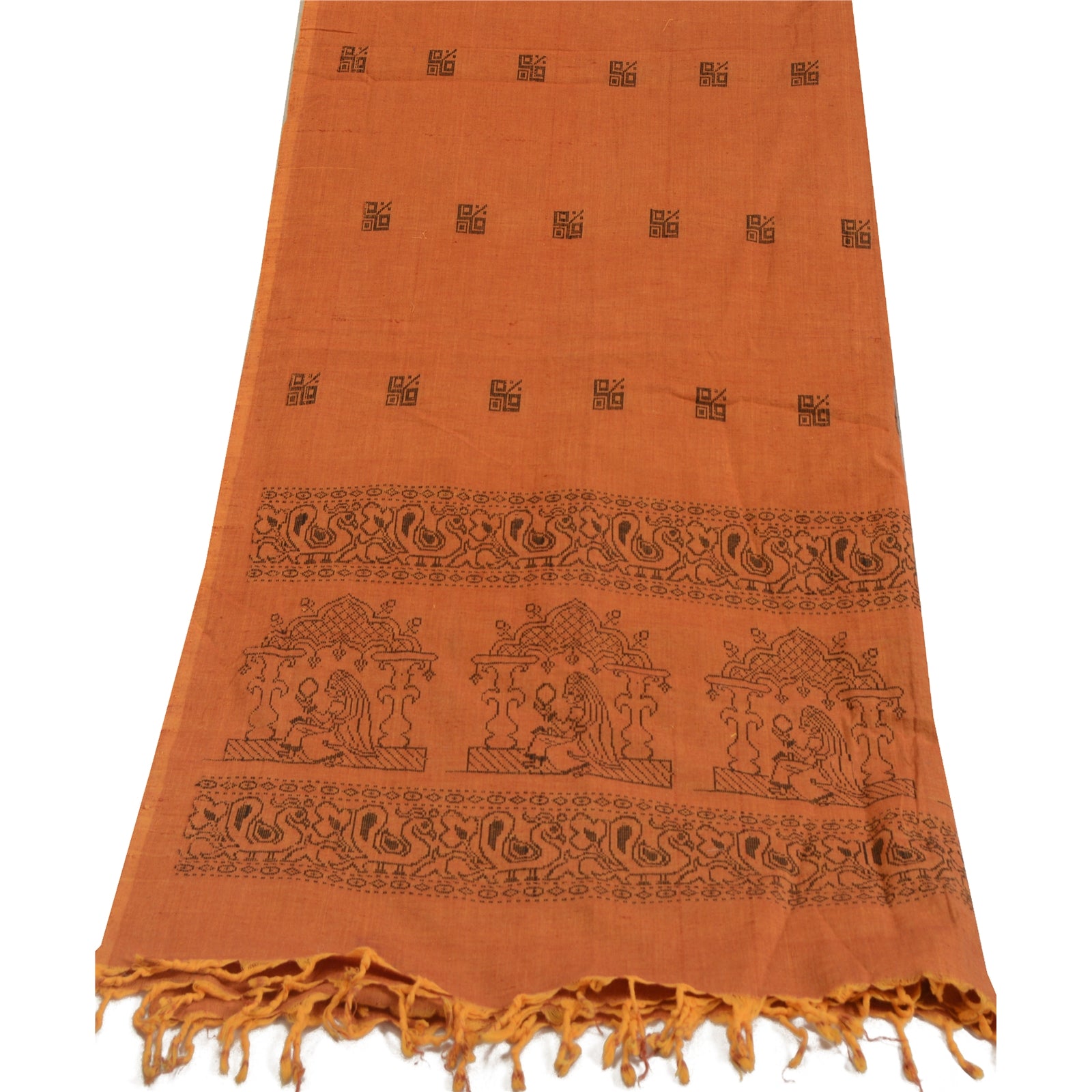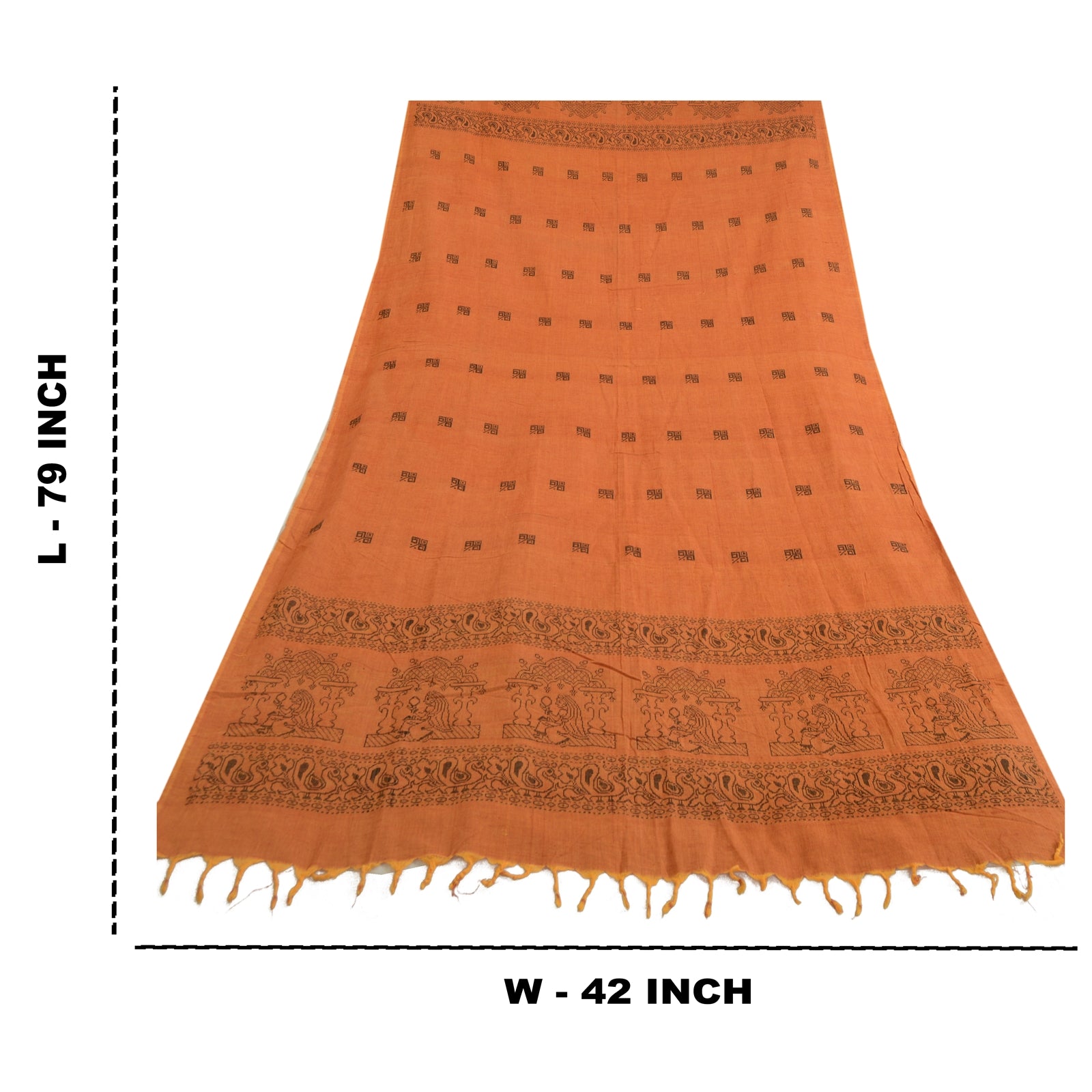 Длинные палантины-дупатта из чистого хлопка цвета шафрана в стиле санскрити, сотканные вручную