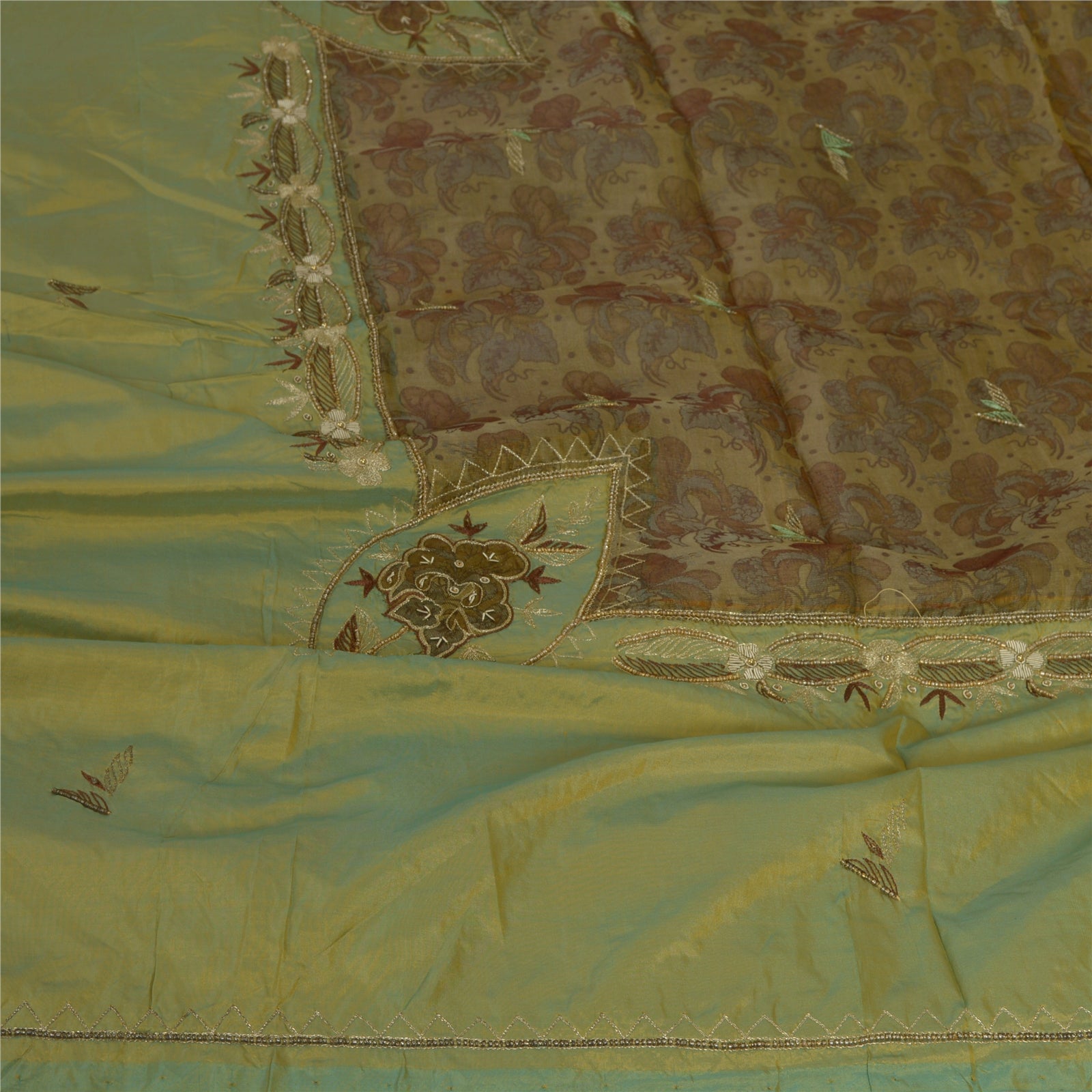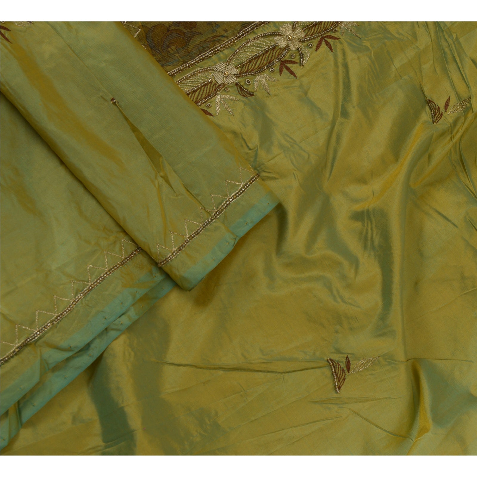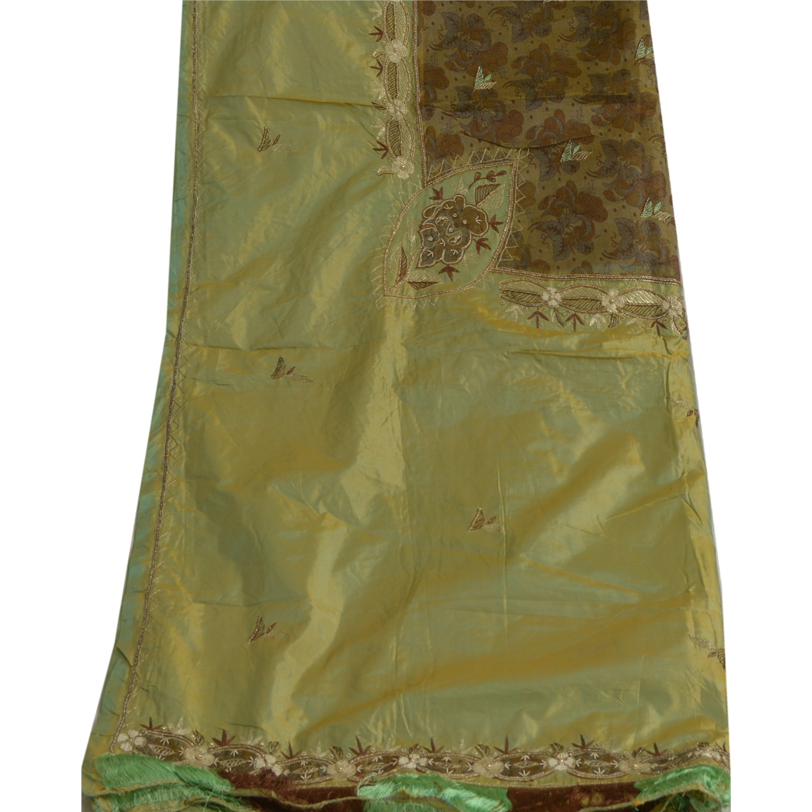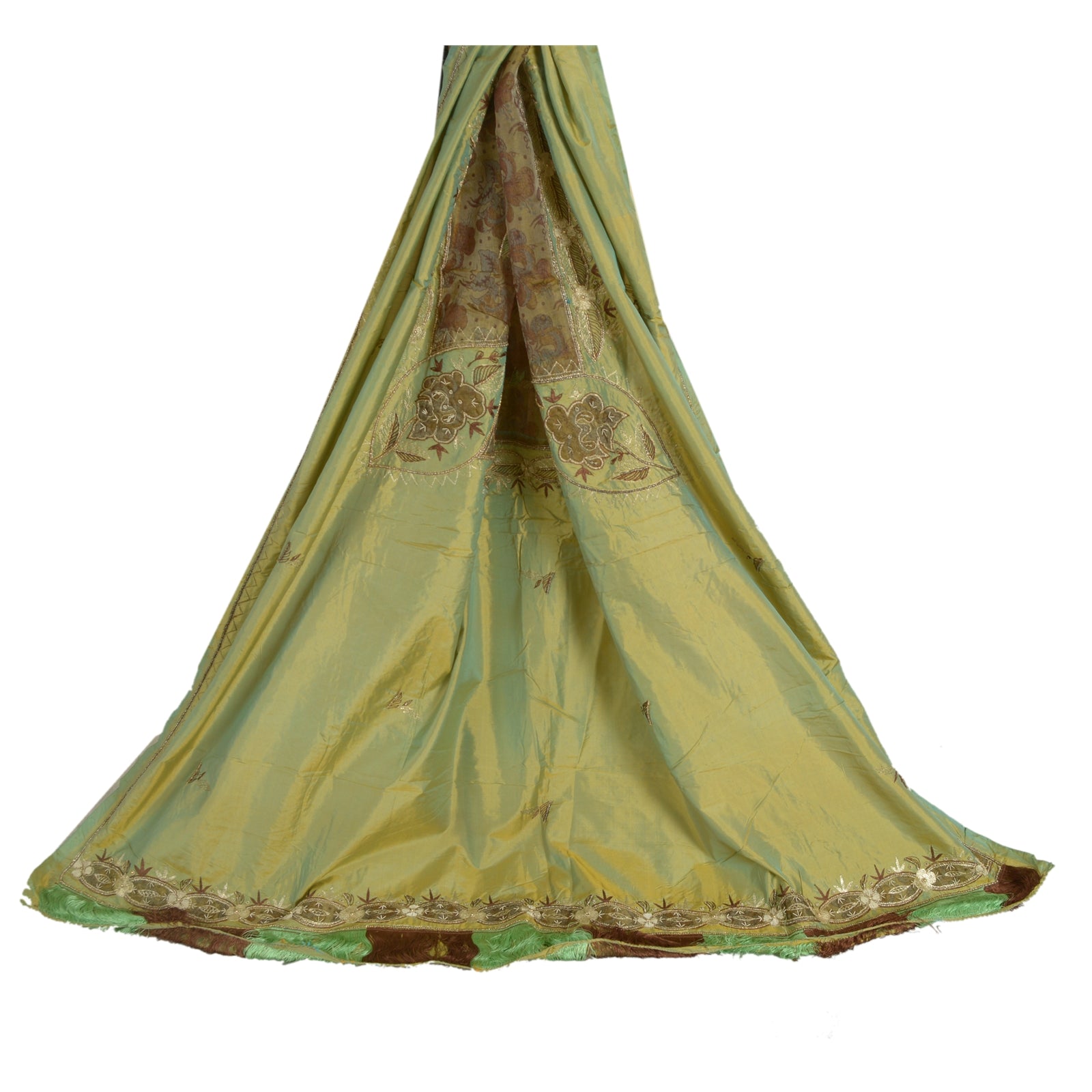 Санскритский винтажный длинный палантин дупатта из чистого шелка, зеленый хиджаб, расшитый вручную бисером