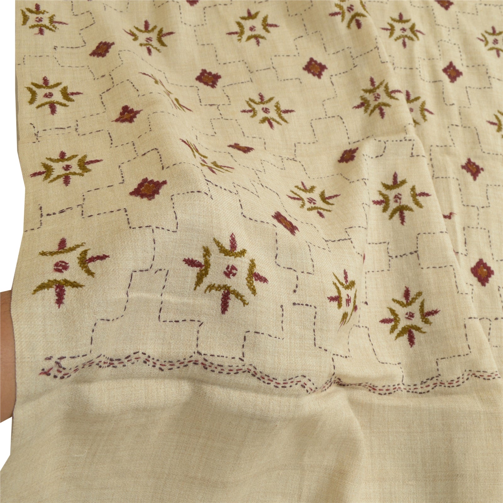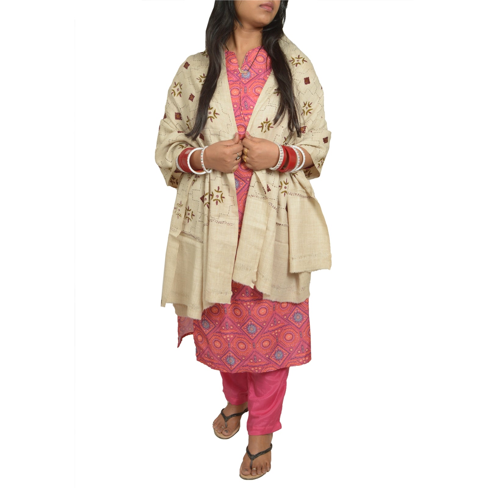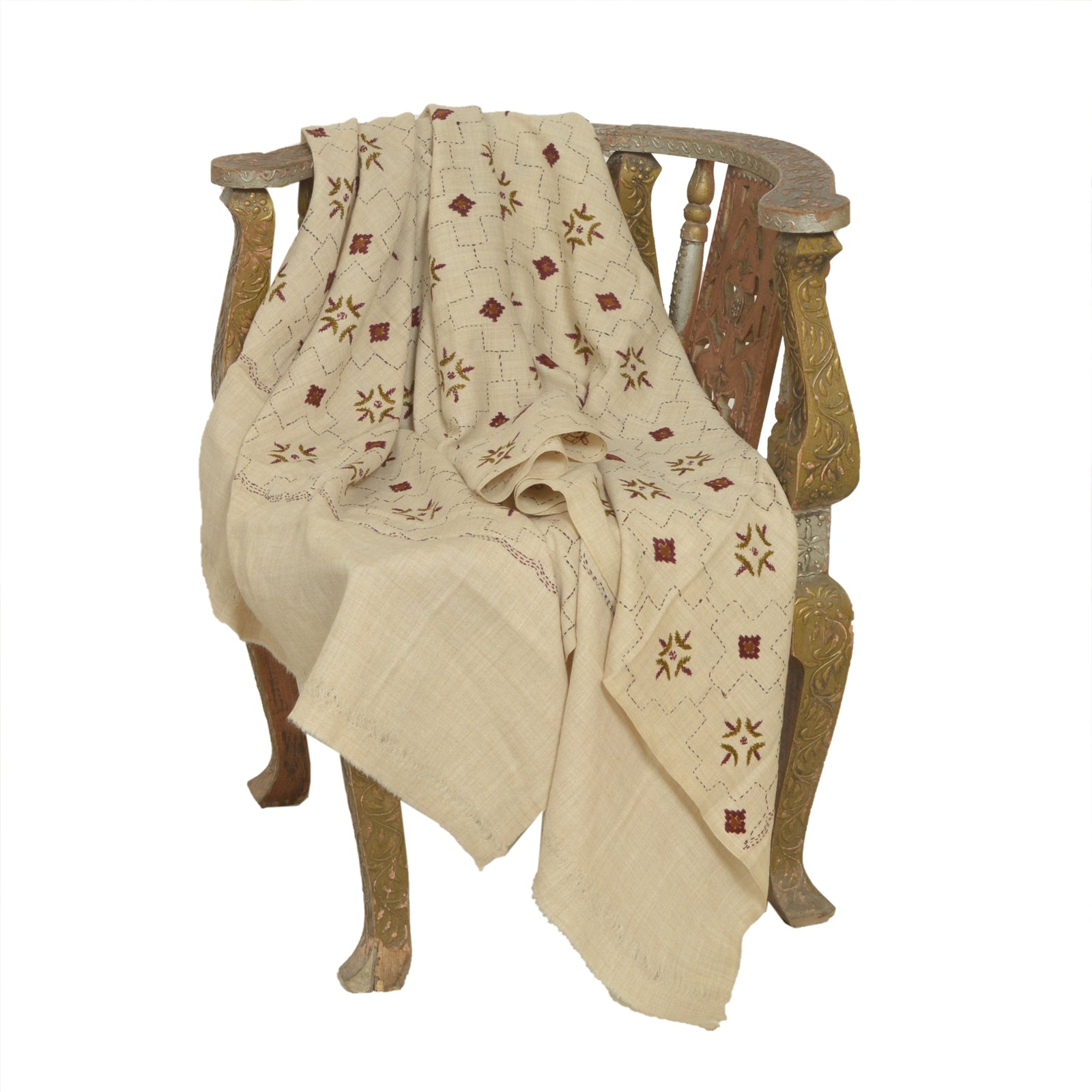 Длинная шаль цвета слоновой кости из чистой шерсти в стиле Санскрити с ручной вышивкой