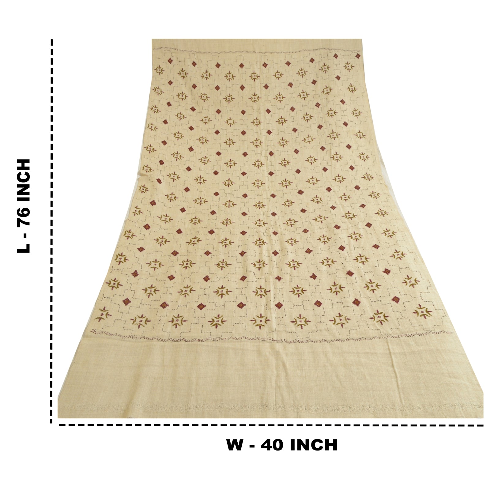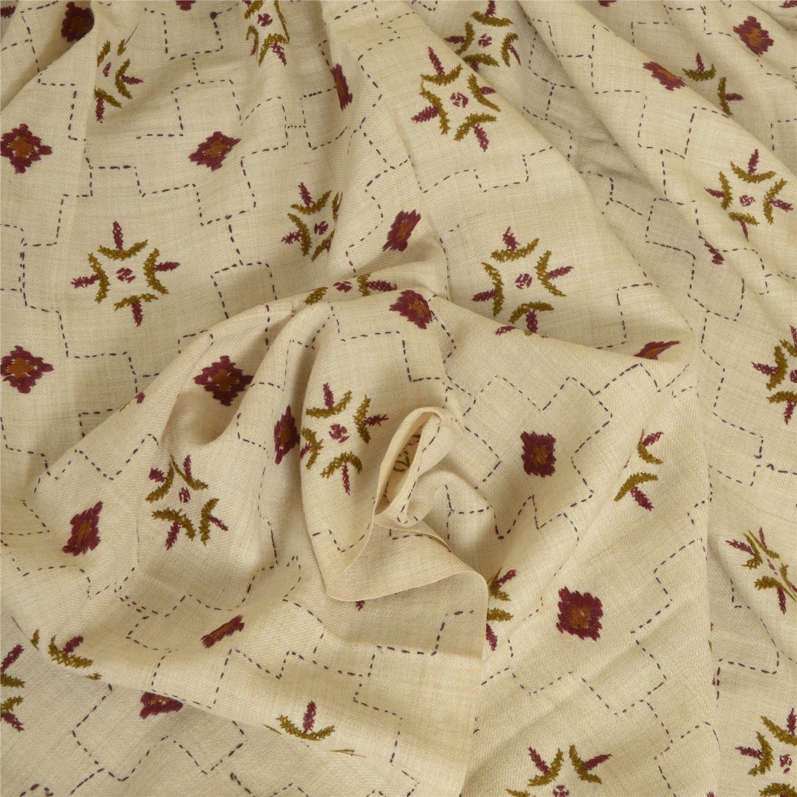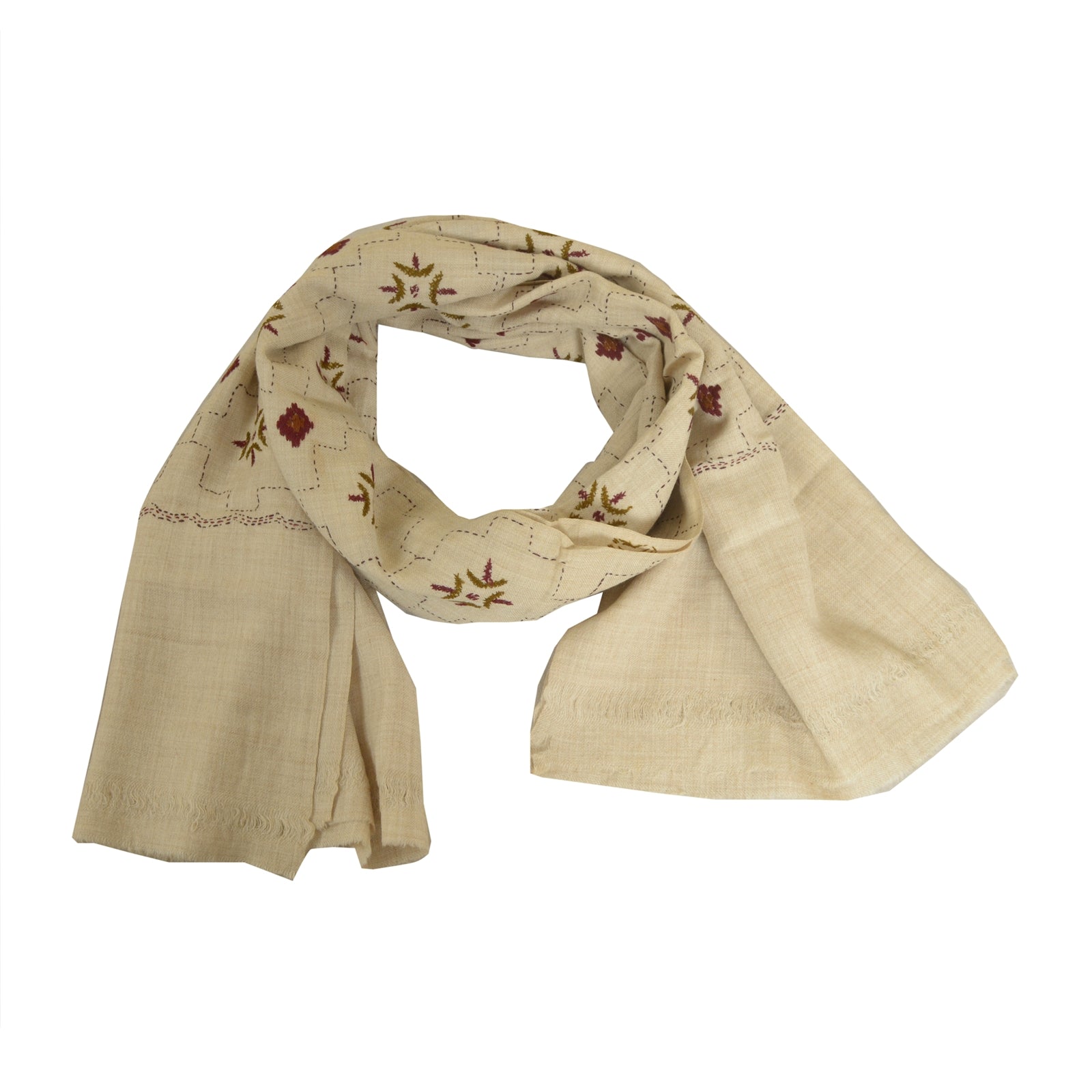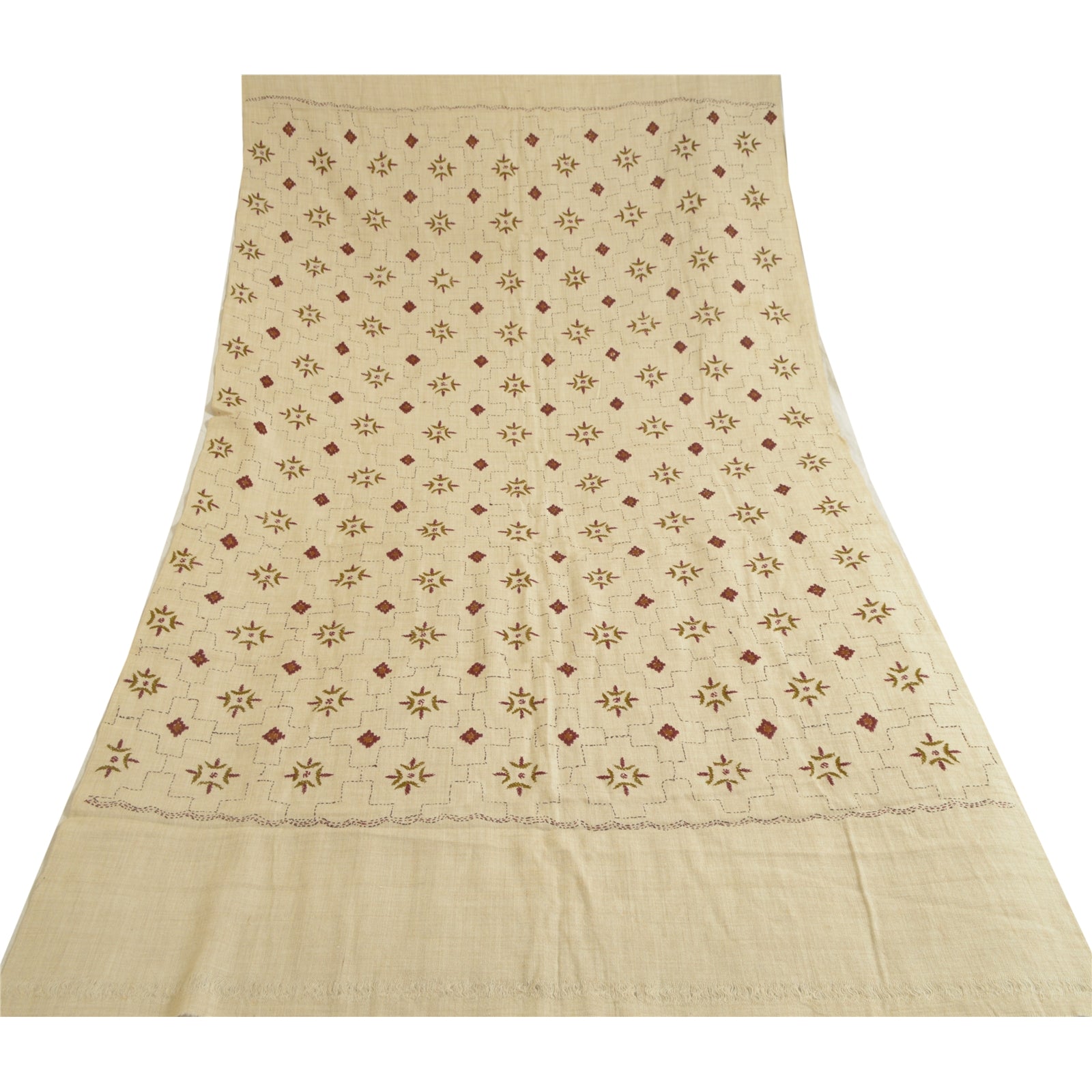 Длинная шаль цвета слоновой кости из чистой шерсти в стиле Санскрити с ручной вышивкой