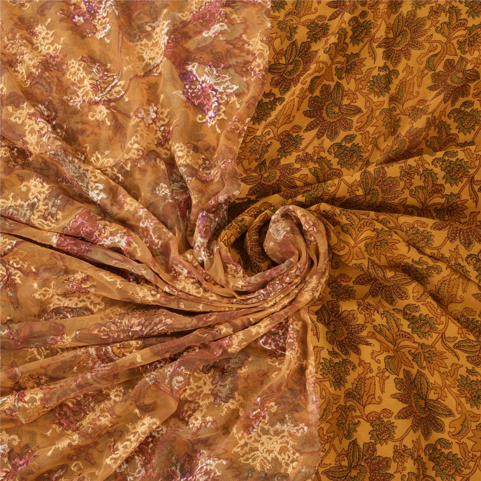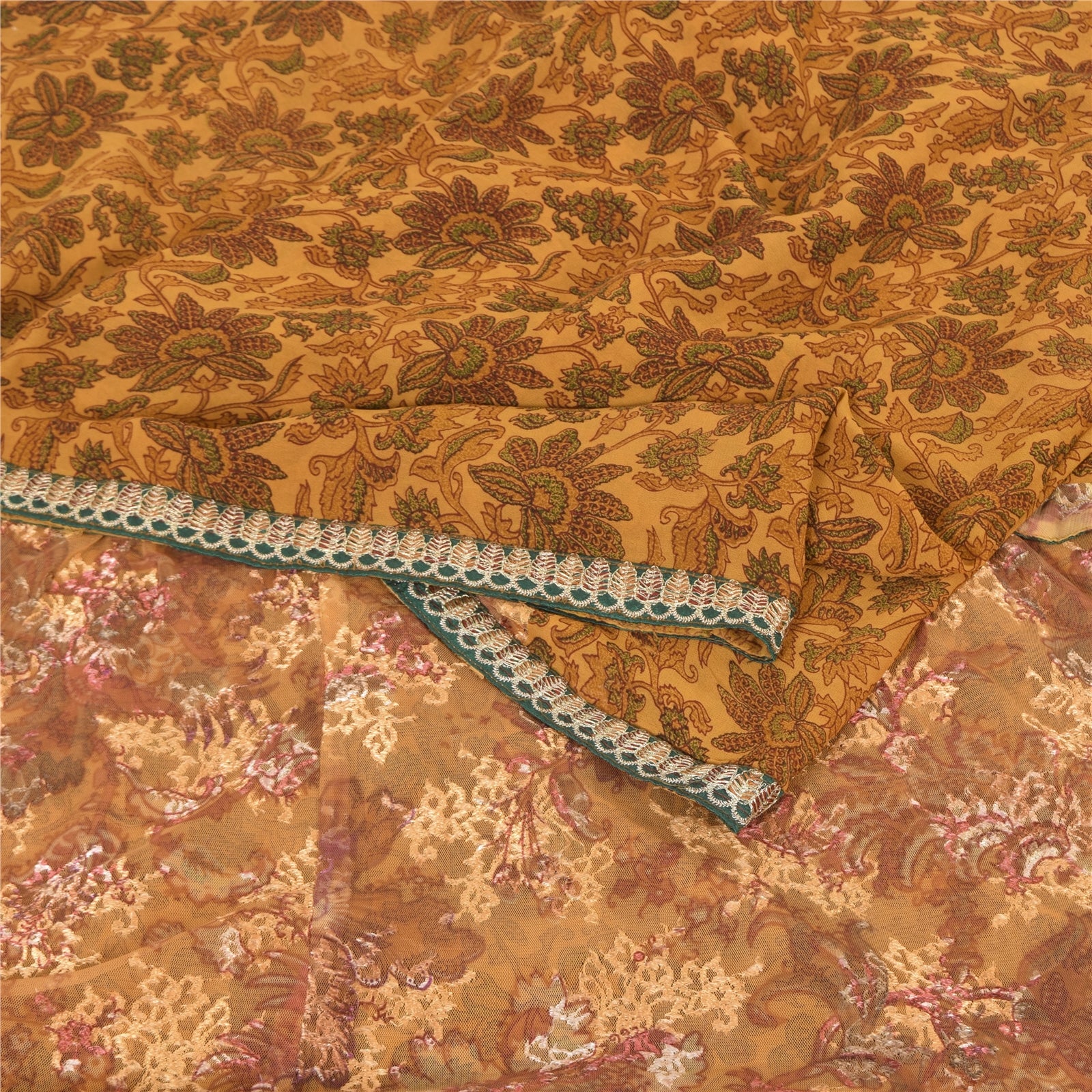Sanskriti Vintage Mustard Sarees Pure Georgette Embroidered Premium Sari Fabric
