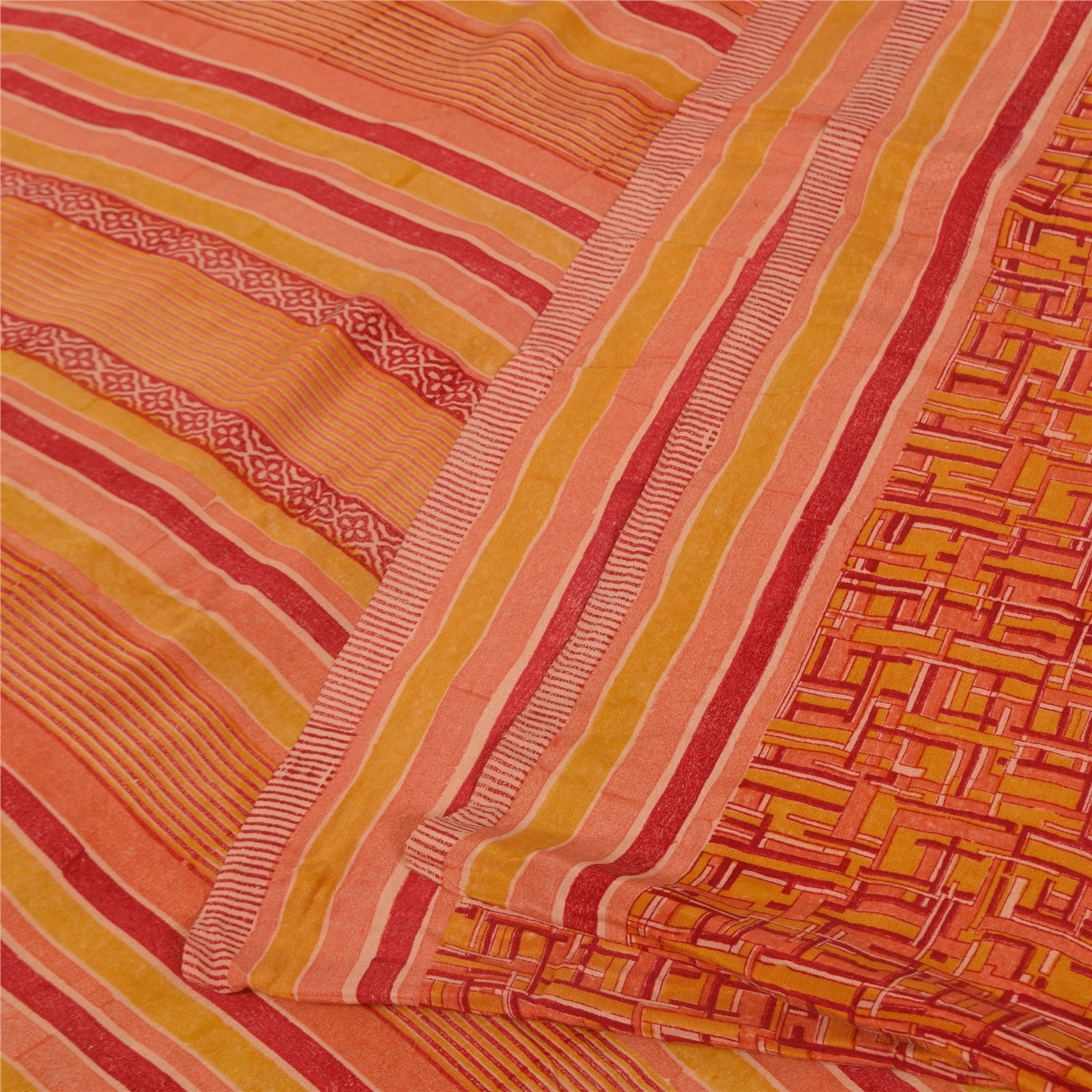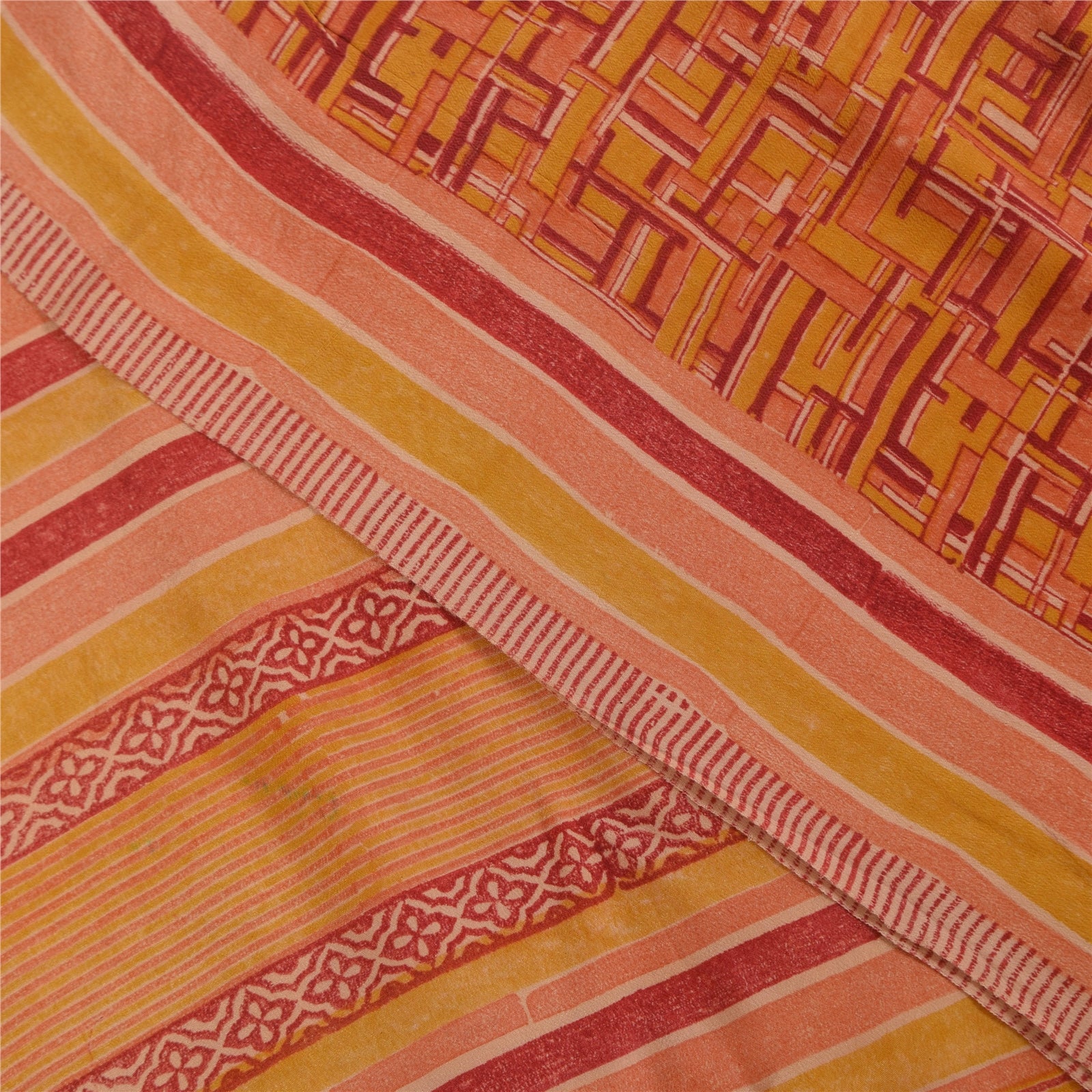 THE ITEM COLOR OR SHADE MAY BE DARKER OR LIGHTER THAN THE PICTURE.' • Beautiful orange colored printed pure crepe silk saree . • Pallu & Border has printed abstract design . • Abstract design in center part of sari . This unique vintage saree can be used for various crafting ideas even if you don't want to use it as a sari. Design a dress, use it as a throw, as window dressing, beachwear, sarongs, table linen and much more. Let your creative juices flow and use this decorated fabric in multiple fashion. International buyers please note: Import duties, taxes, and charges are not included in the item price or postage cost. These charges are the buyer's responsibility. Please check with your country's customs office to determine what these additional costs will be prior to bidding or buying.Buyer will pay custom duty/tax. It is calculated and charged differently by every country. As a seller I do not have any control over it. VAT or sales tax is calculated by the platform at the time of checkout. Customs charge is payable at the time of delivery. PRC-5993