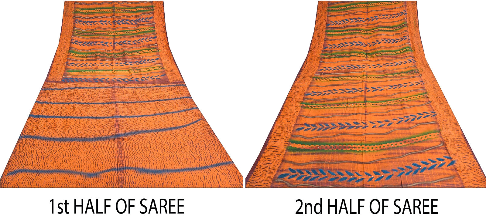 • Beautiful orange colored printed pure crepe silk leheria saree . • Pallu & Border has leherai work with abstract design. • Printed floral design with some silver muikesh work in center part of sari . Versatile Uses-Crafting, Repurpose, Creative Sewing Project, Dressmaking, Kaftans, Use It As A Sari, Window Dressing, Upcycling, Sarongs, Throw,Table Linen,Decorative Fabric, Sustainable Indian Fabric. THE ITEM COLOR OR SHADE MAY BE DARKER OR LIGHTER THAN THE PICTURE.' International buyers please note: Import duties, taxes, and charges are not included in the item price or postage cost. Buyer will pay custom duty/tax,VAT, and any applicable charges at the time of delivery. prc-1276