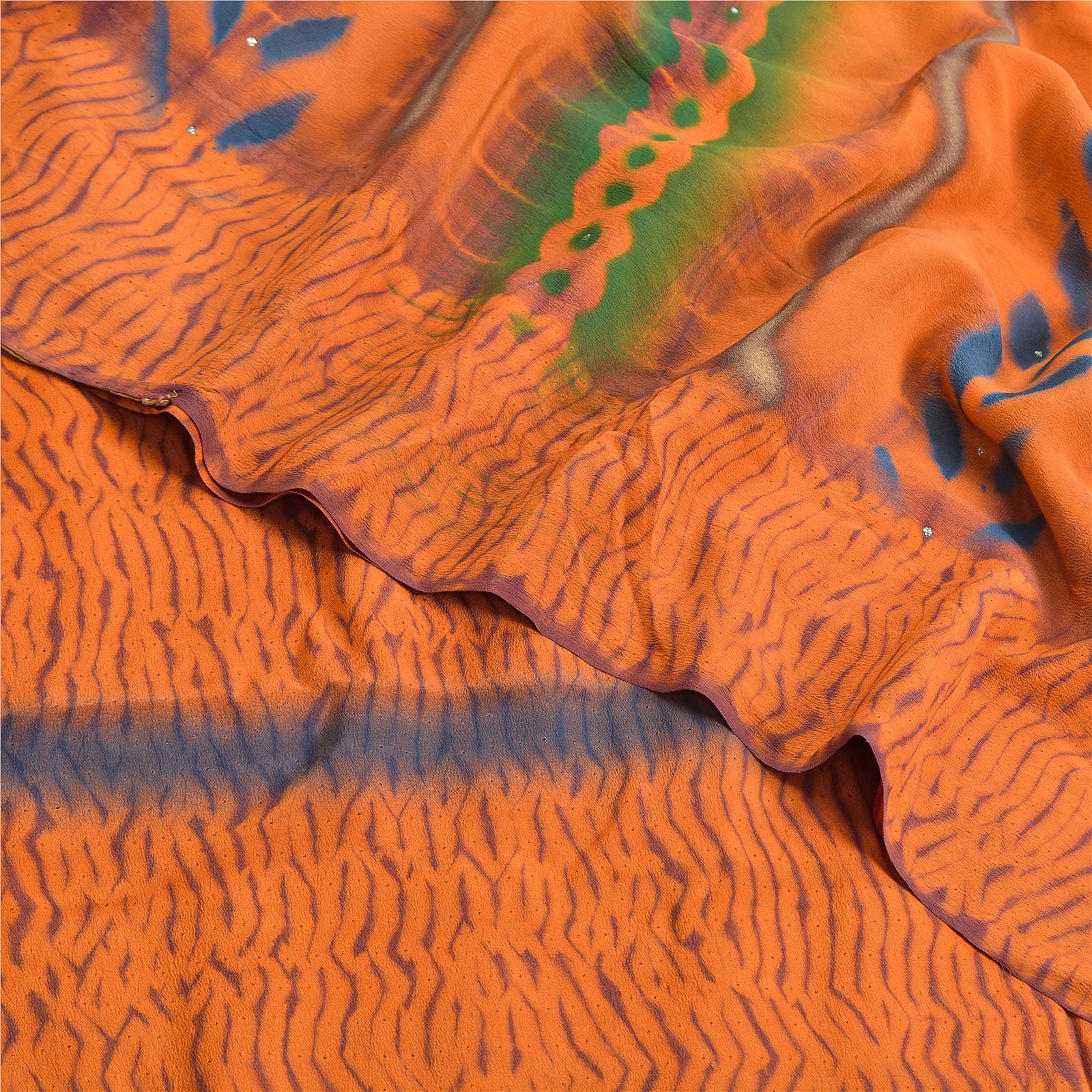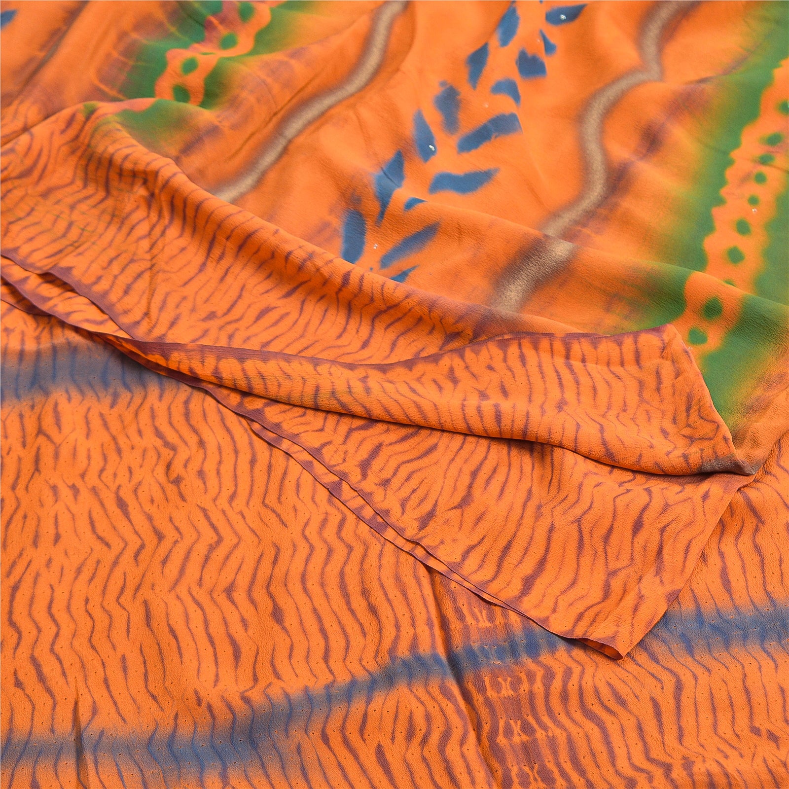 Sanskriti Vintage Orange Leheria Saree Pure Crepe Abstract Print Mukesh5 Yd Sari