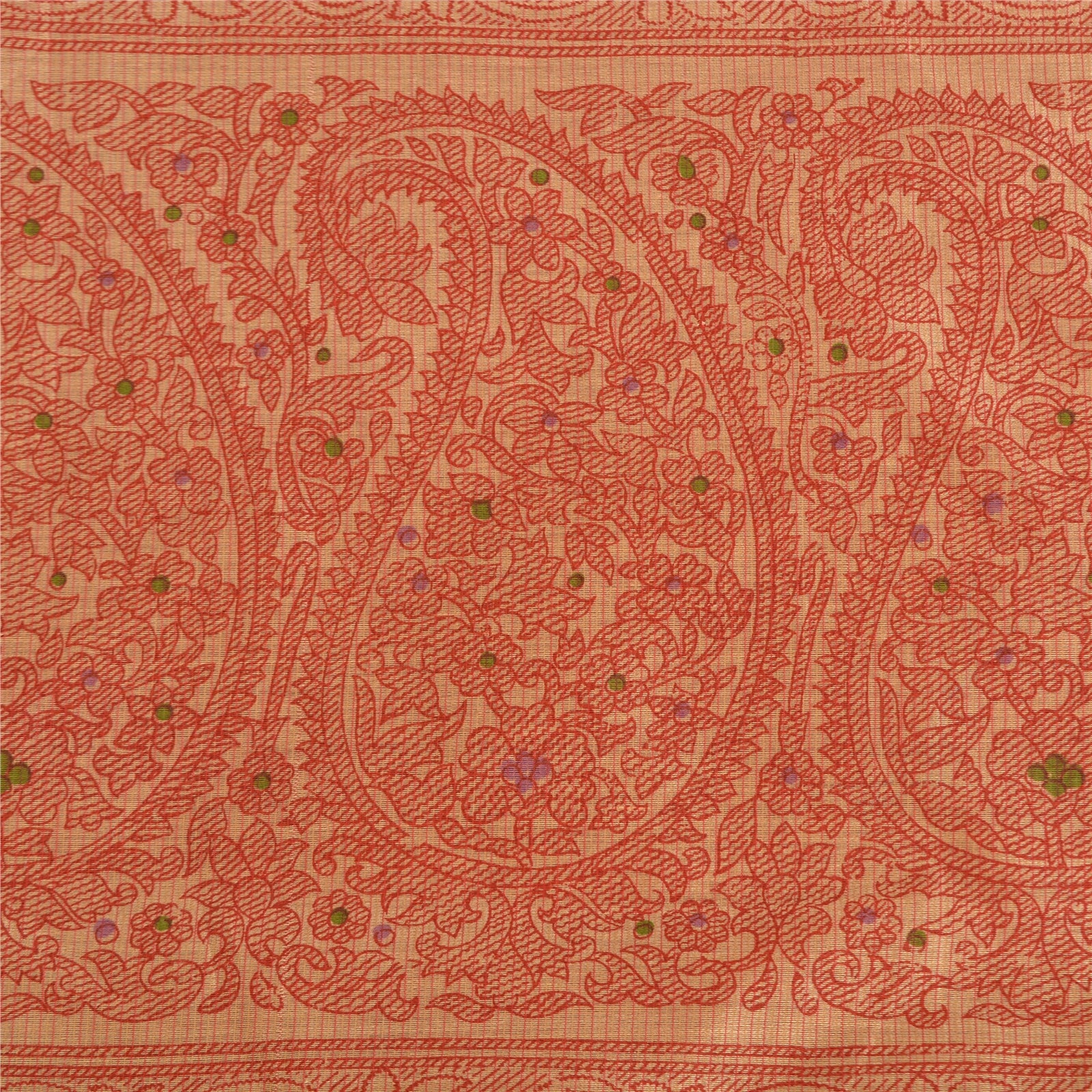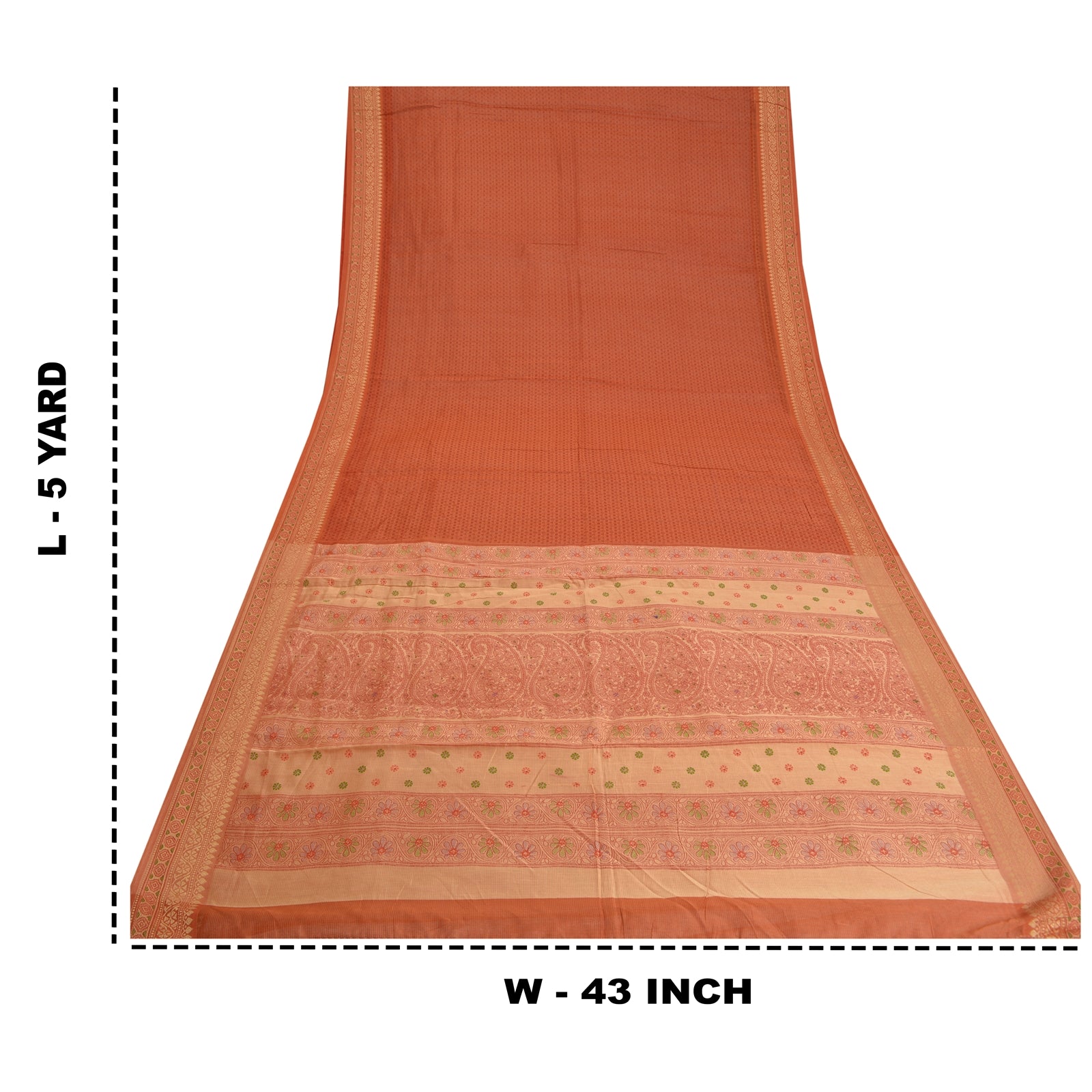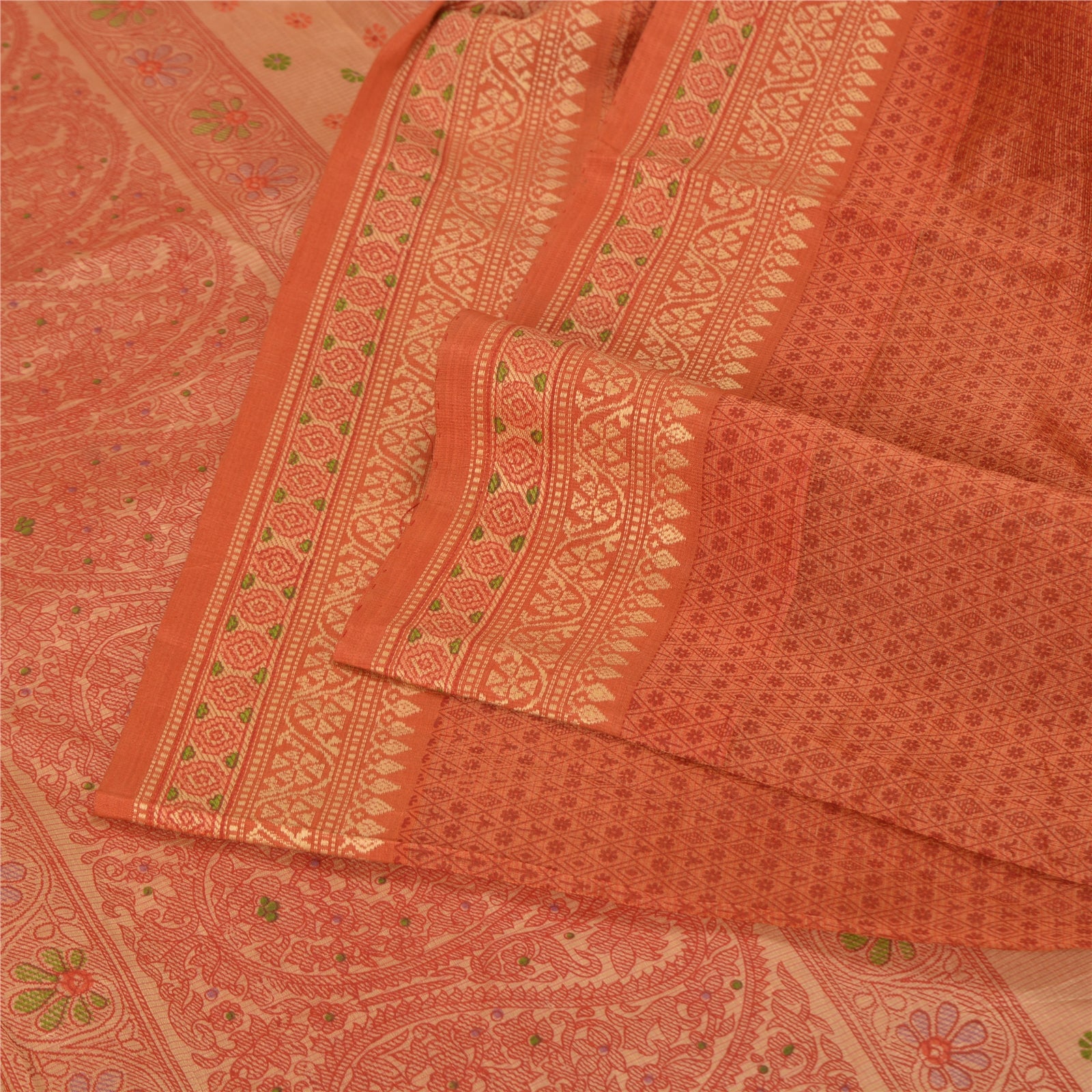 Сари Санскрити Винтаж Оранжевый Хлопок Шелк Напечатанный Тканый Сари Ремесло Экологичная Ткань