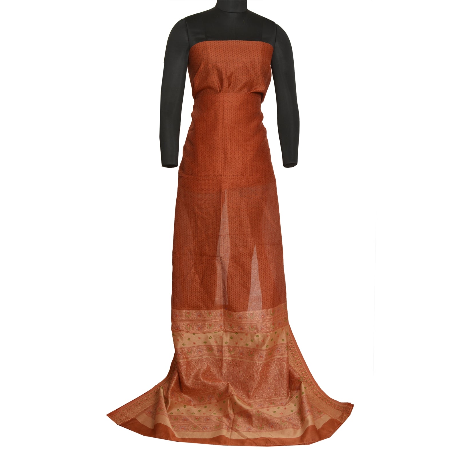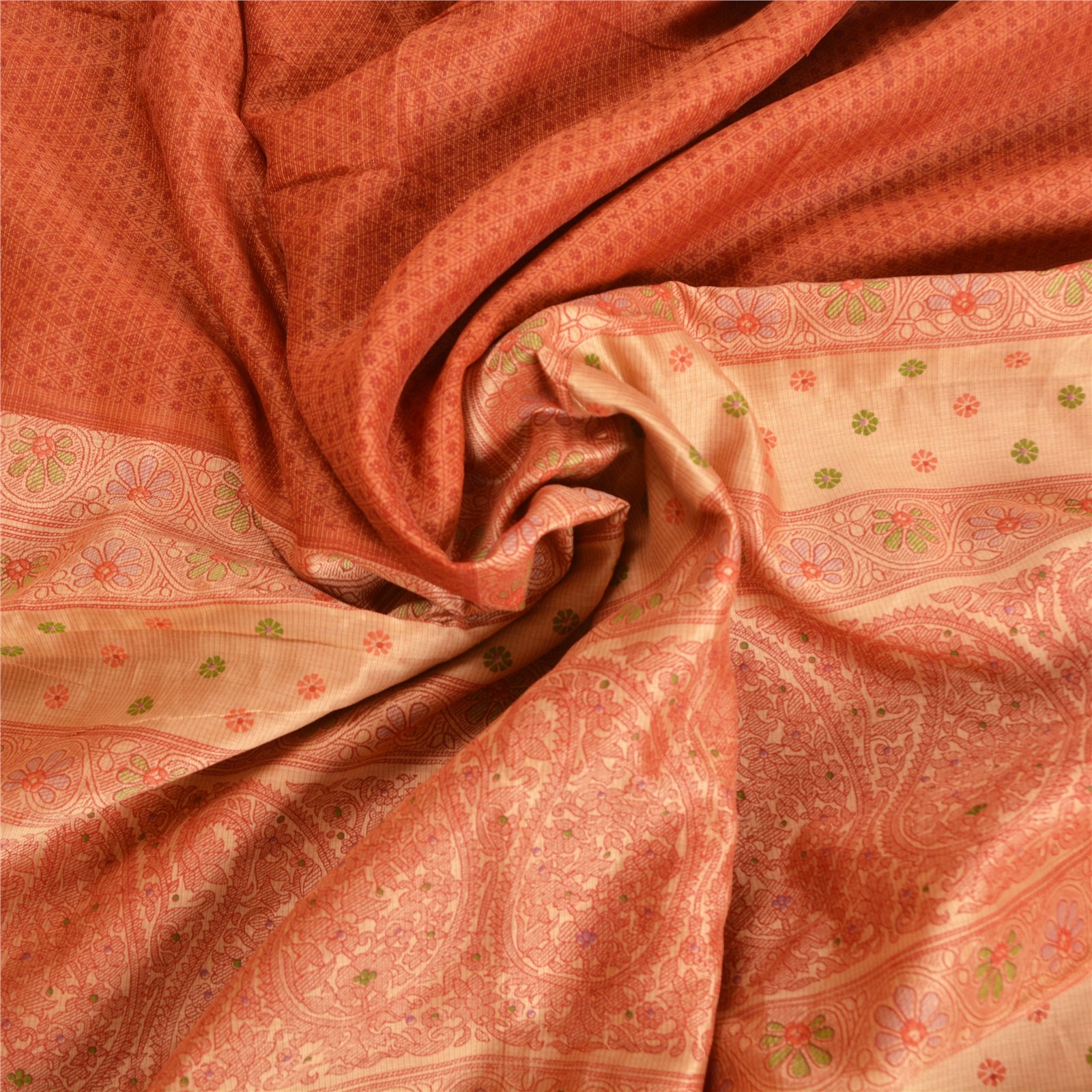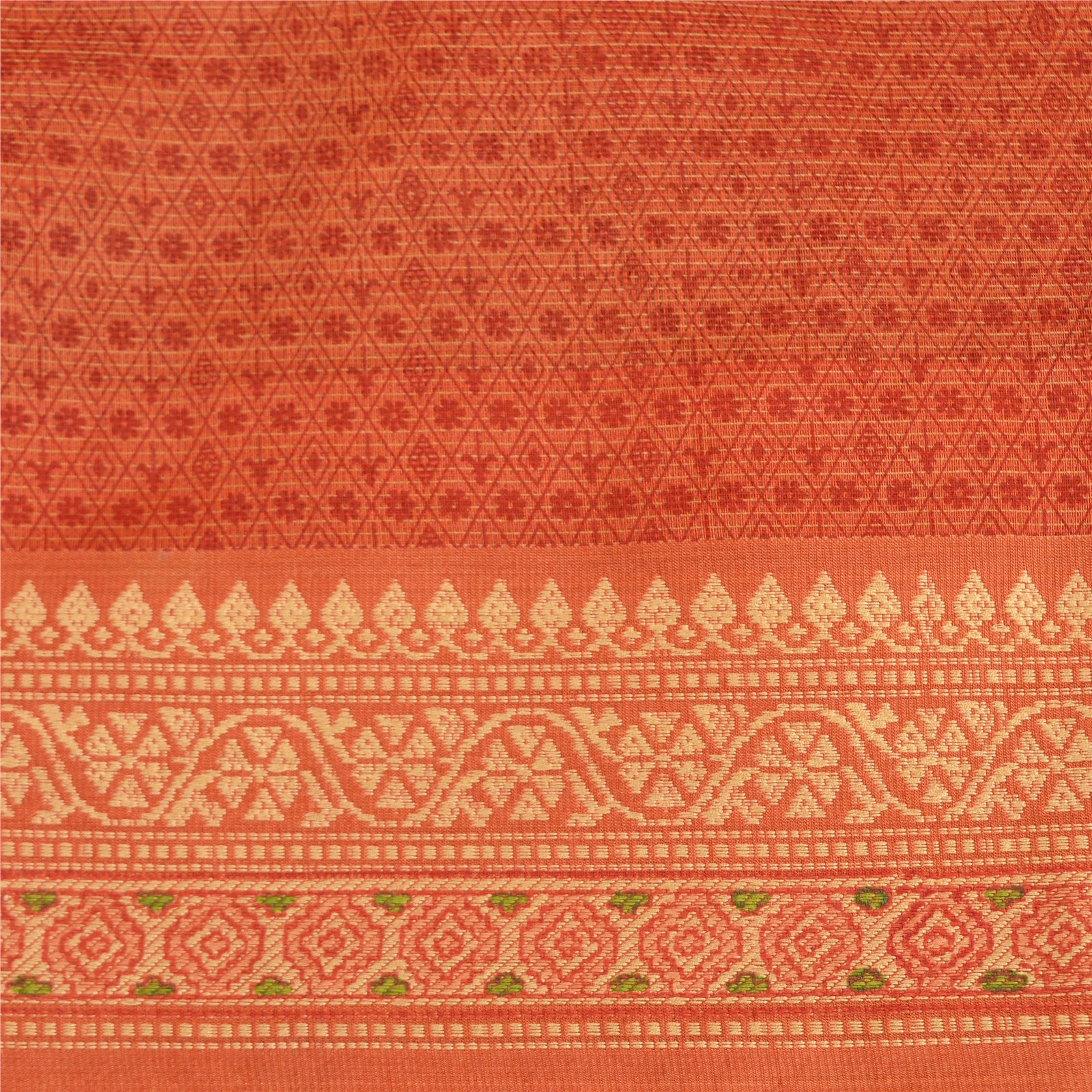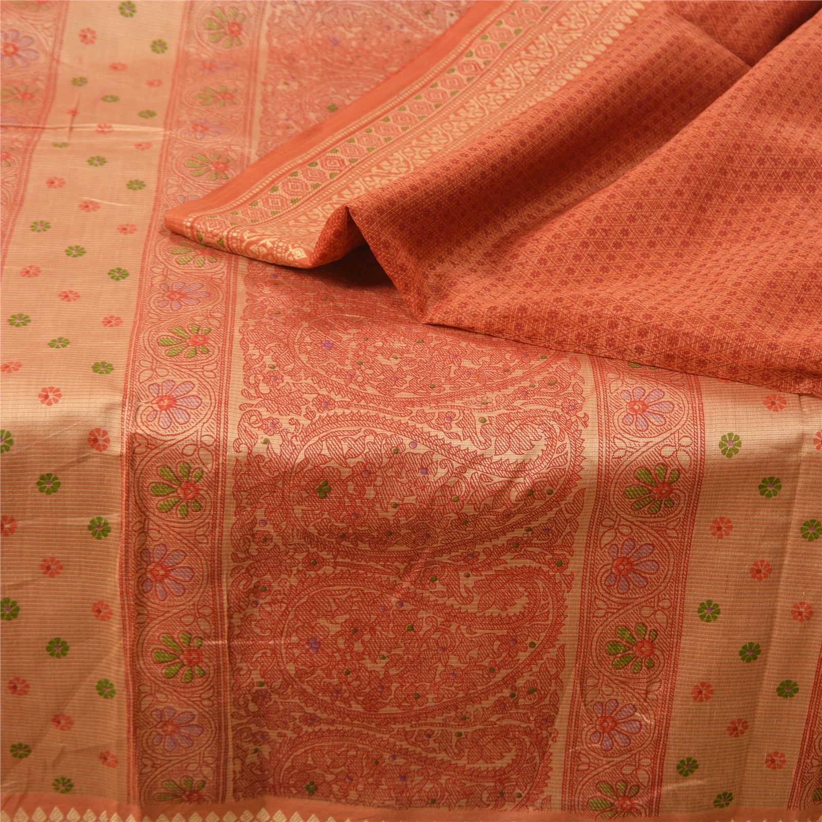 Сари Санскрити Винтаж Оранжевый Хлопок Шелк Напечатанный Тканый Сари Ремесло Экологичная Ткань