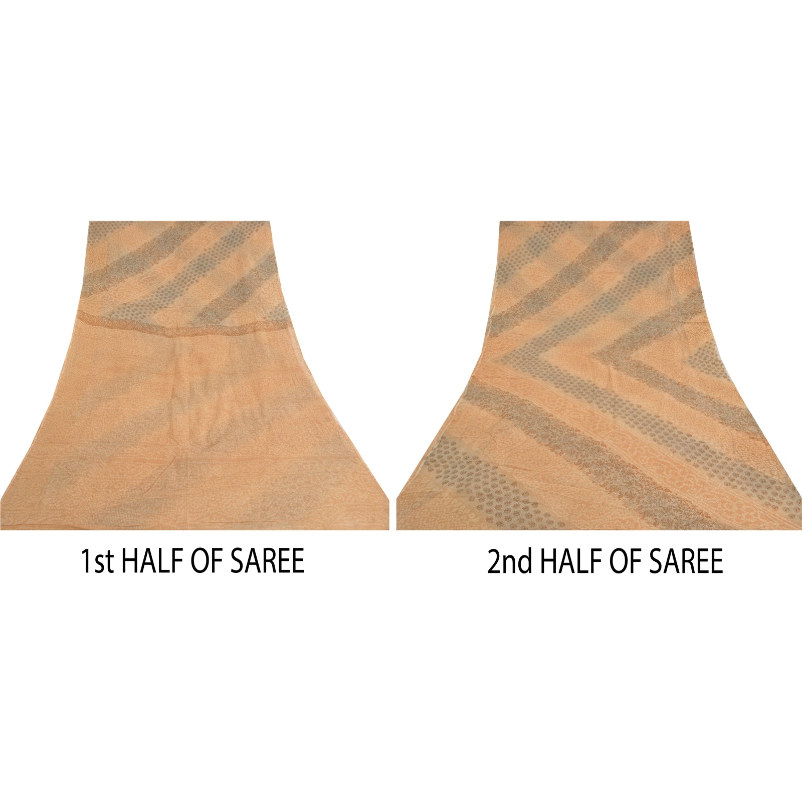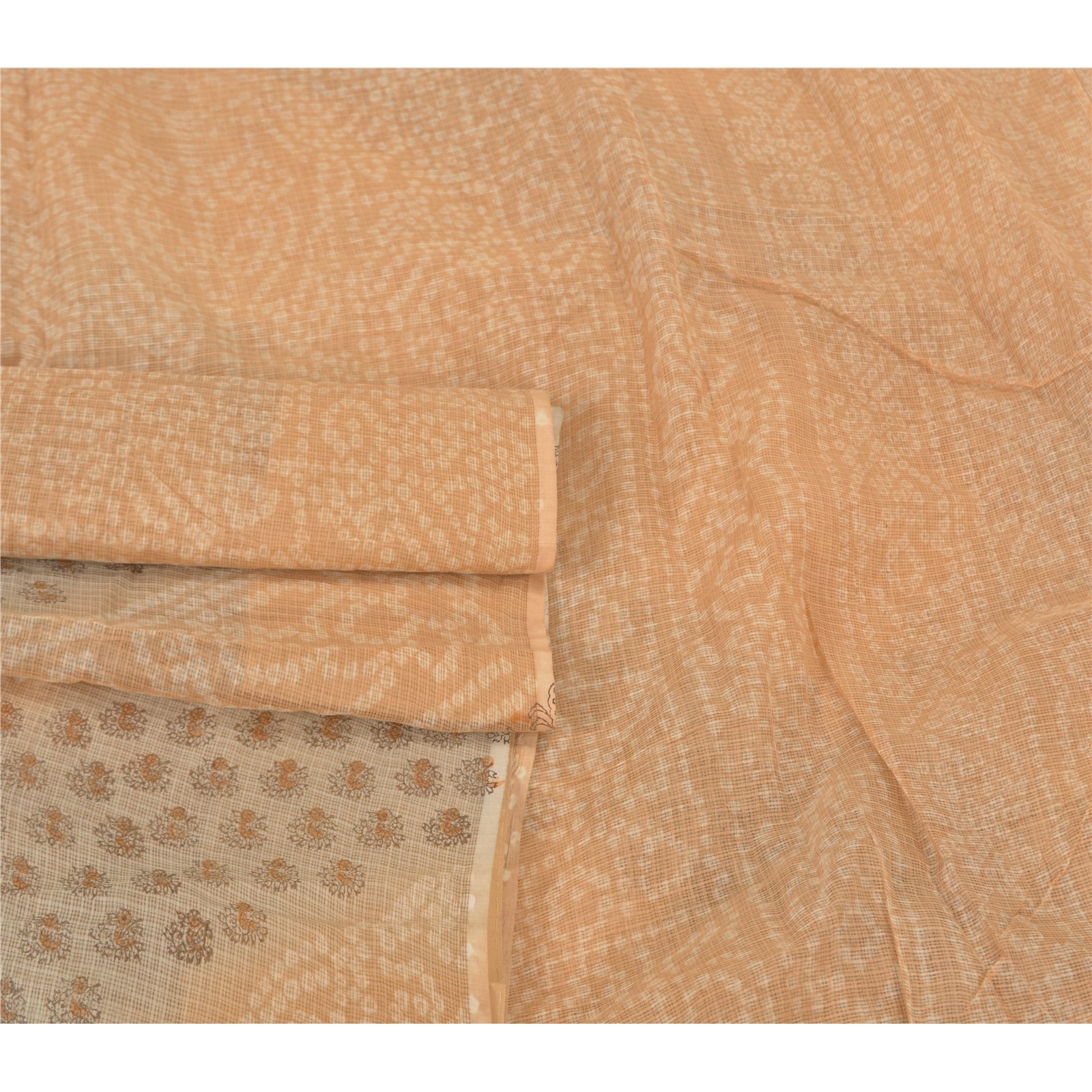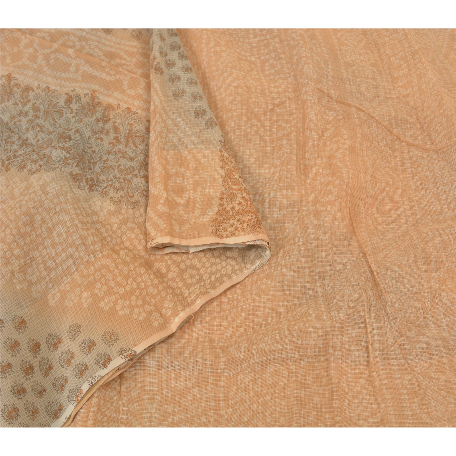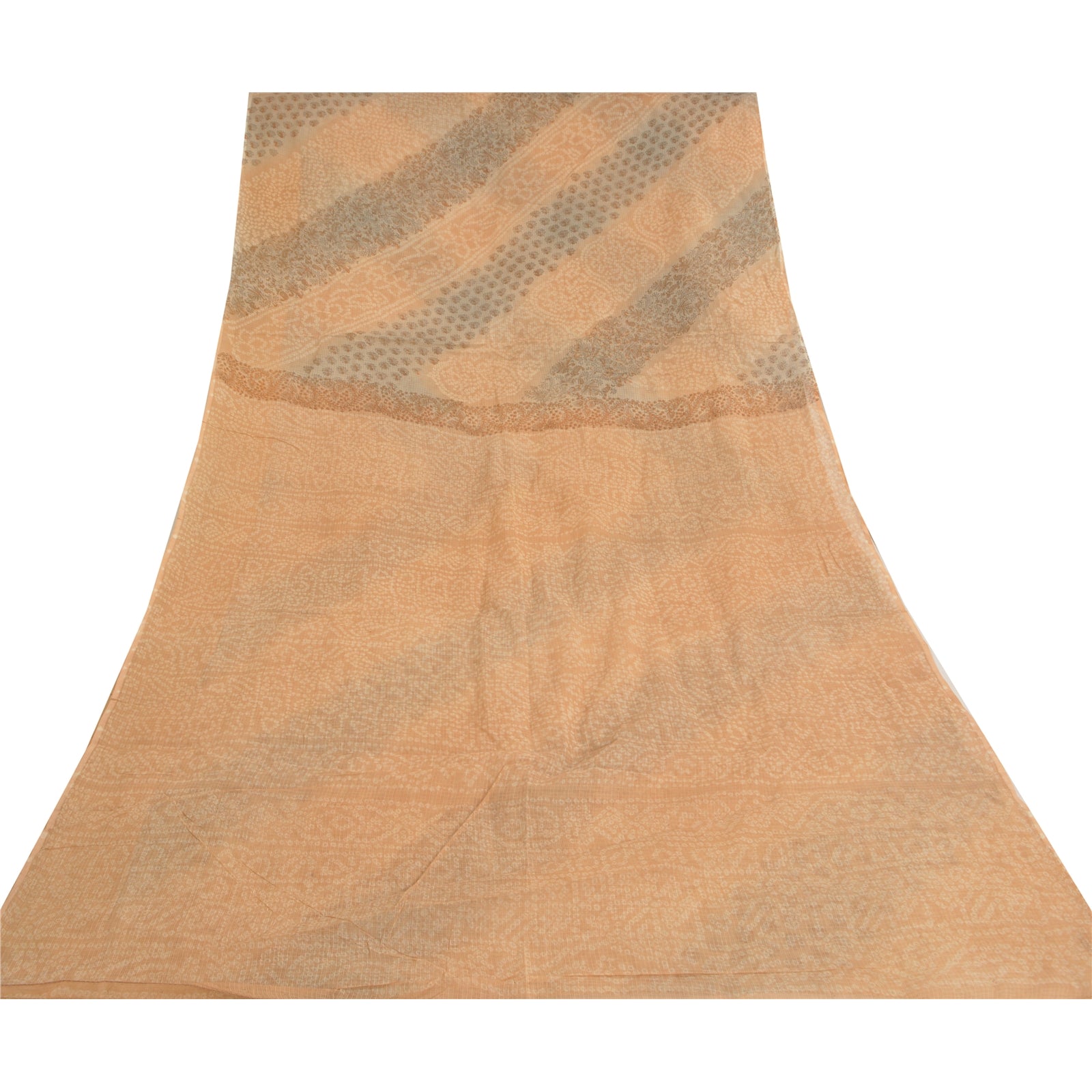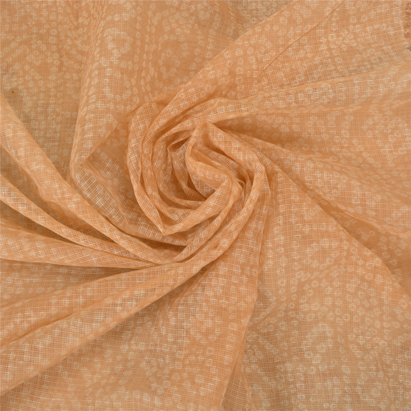Санскритское винтажное персиковое индийское сари из чистого шелка Бандхани с принтом Кота Сари Экологичная ткань