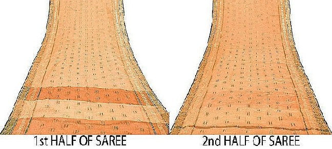 Санскритские винтажные персиковые сари 100% чистый хлопок тканое сари ремесло 5 ярдов устойчивая ткань