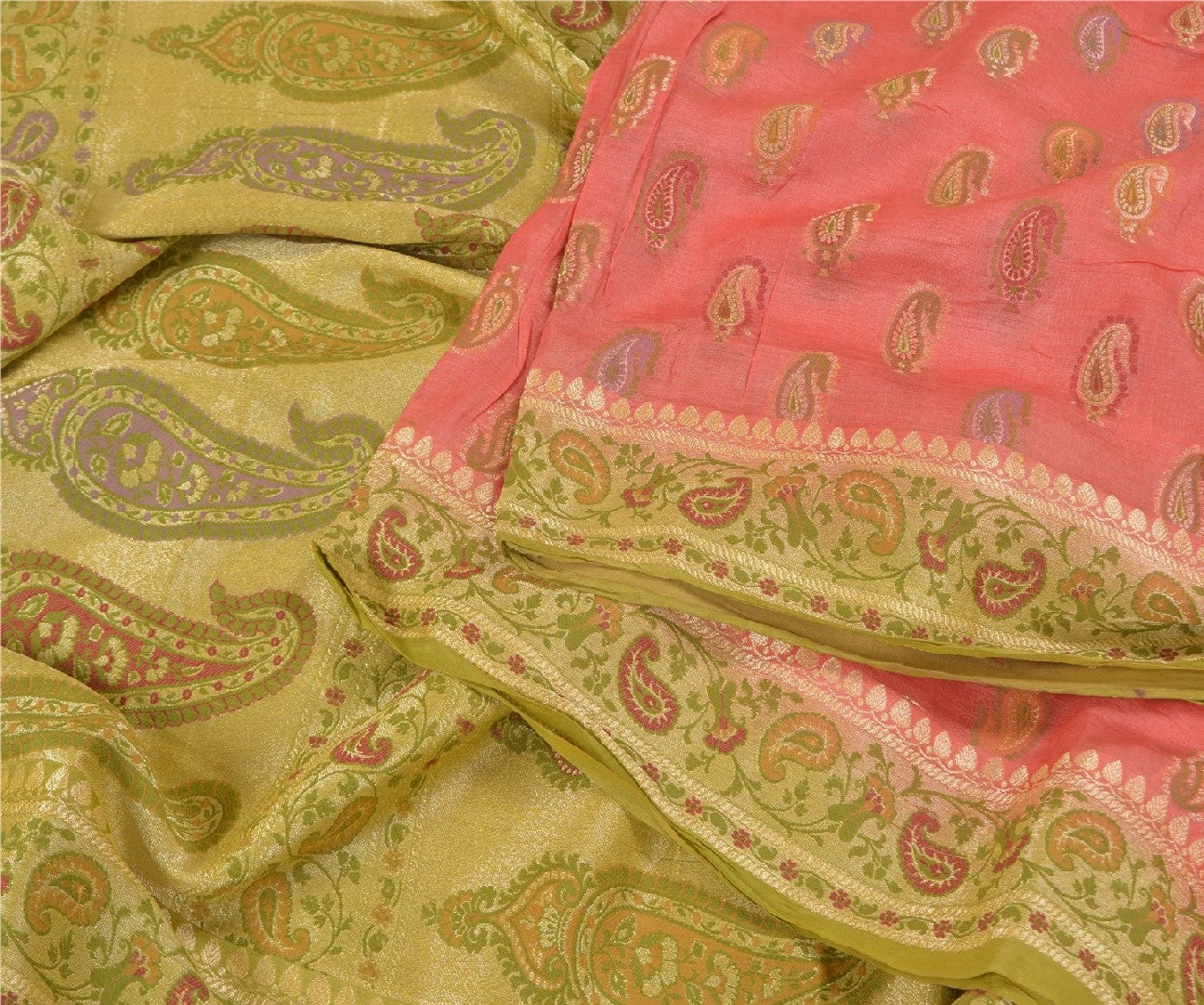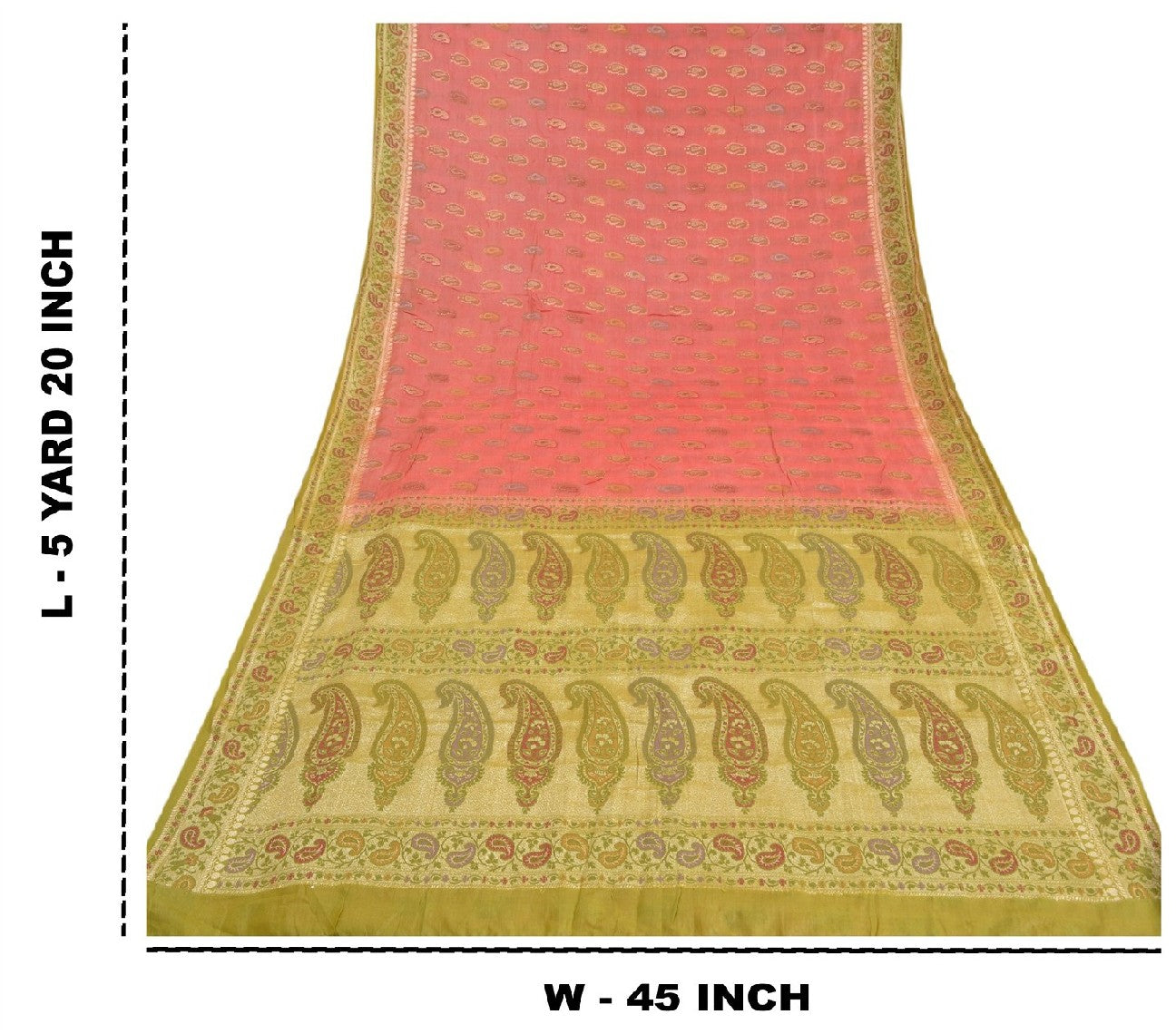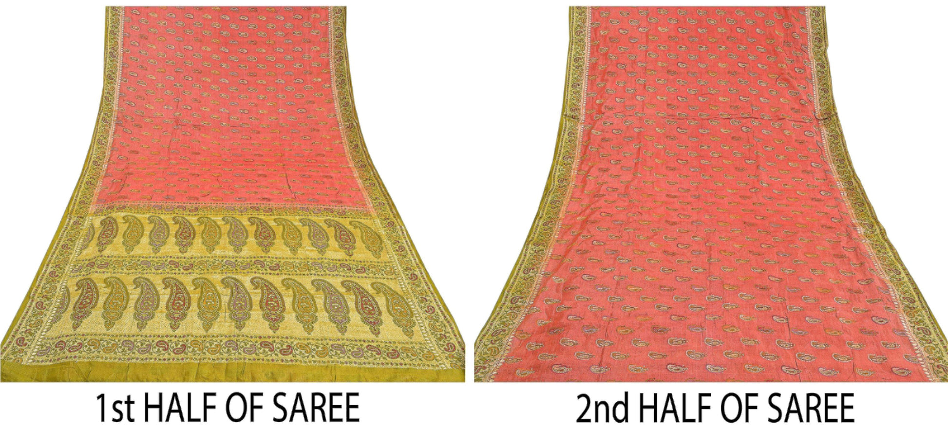 Санскритские винтажные персиковые сари 100% чистый шелк ручной работы премиальная ткань для сари из экологически чистой ткани