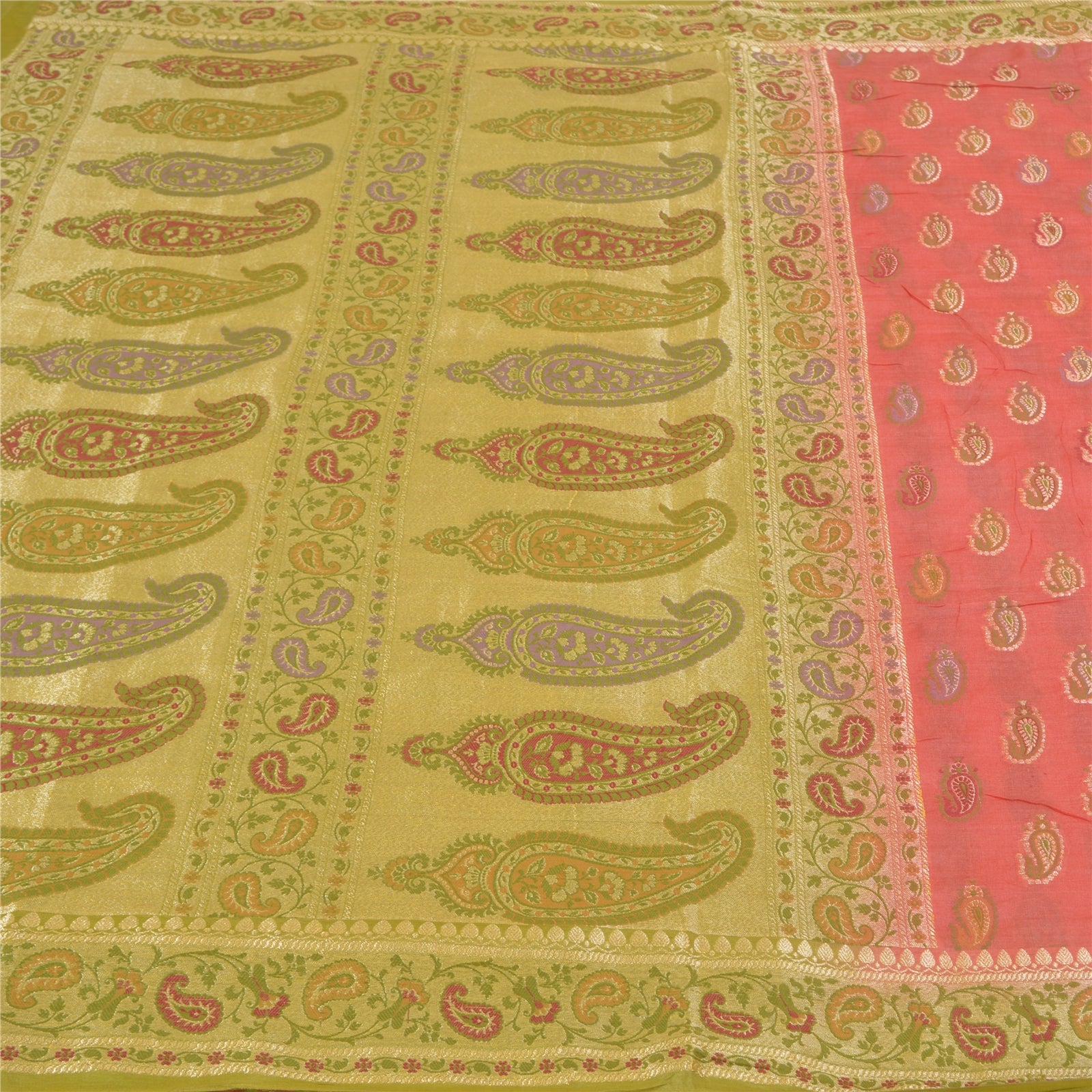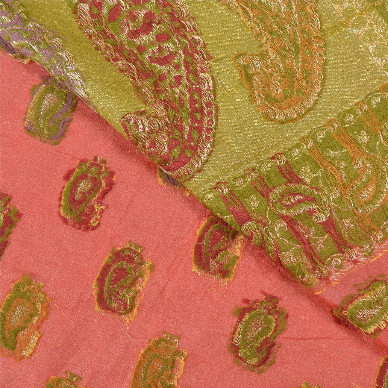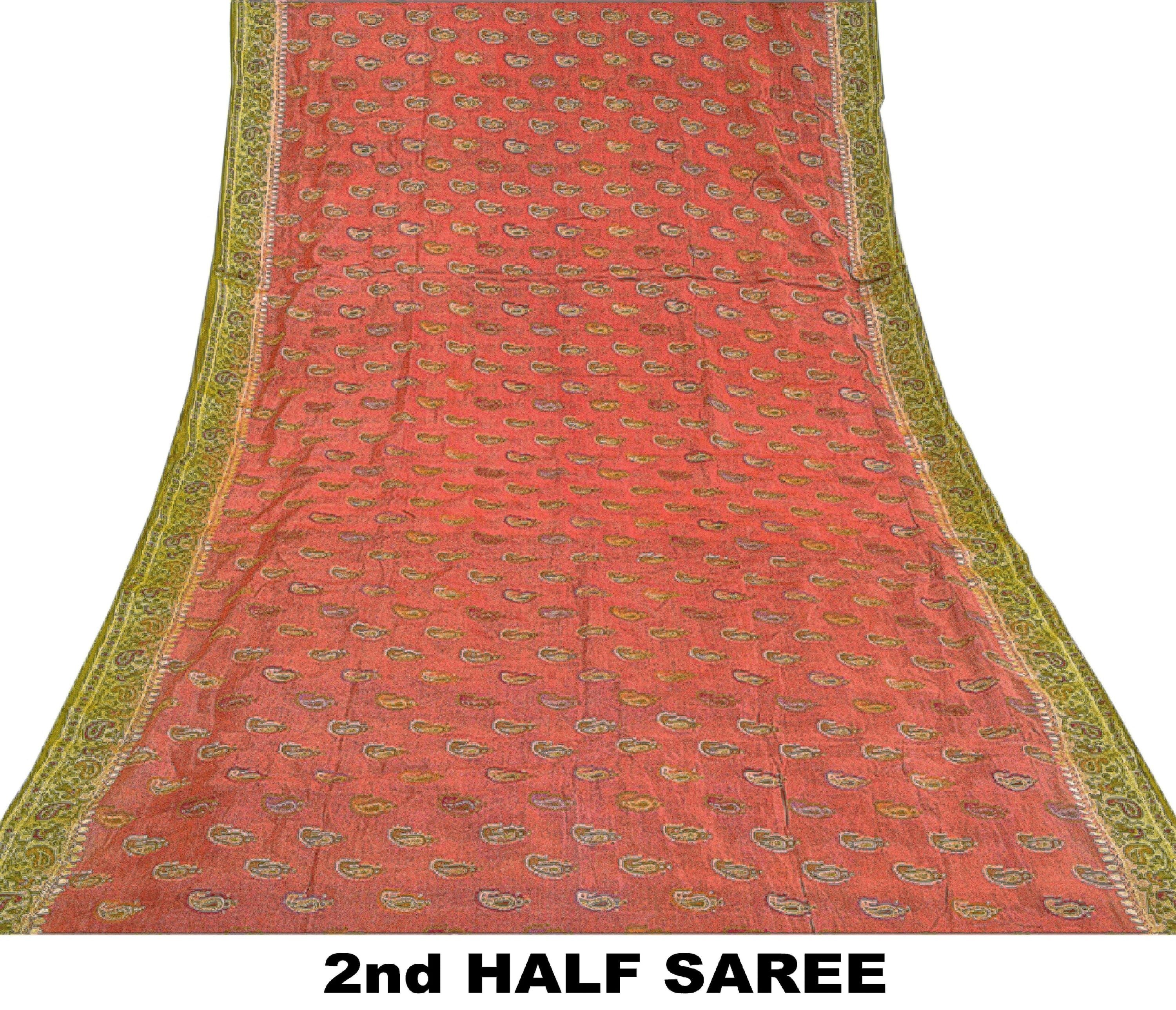 Санскритские винтажные персиковые сари 100% чистый шелк ручной работы премиальная ткань для сари из экологически чистой ткани