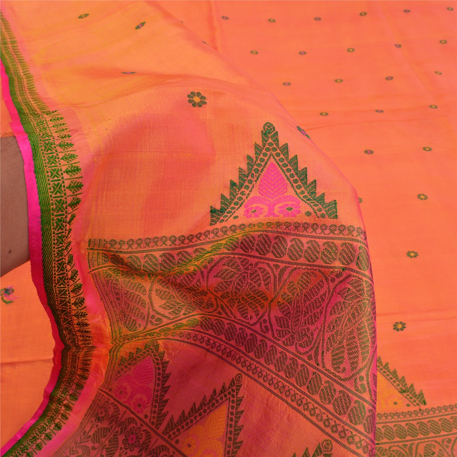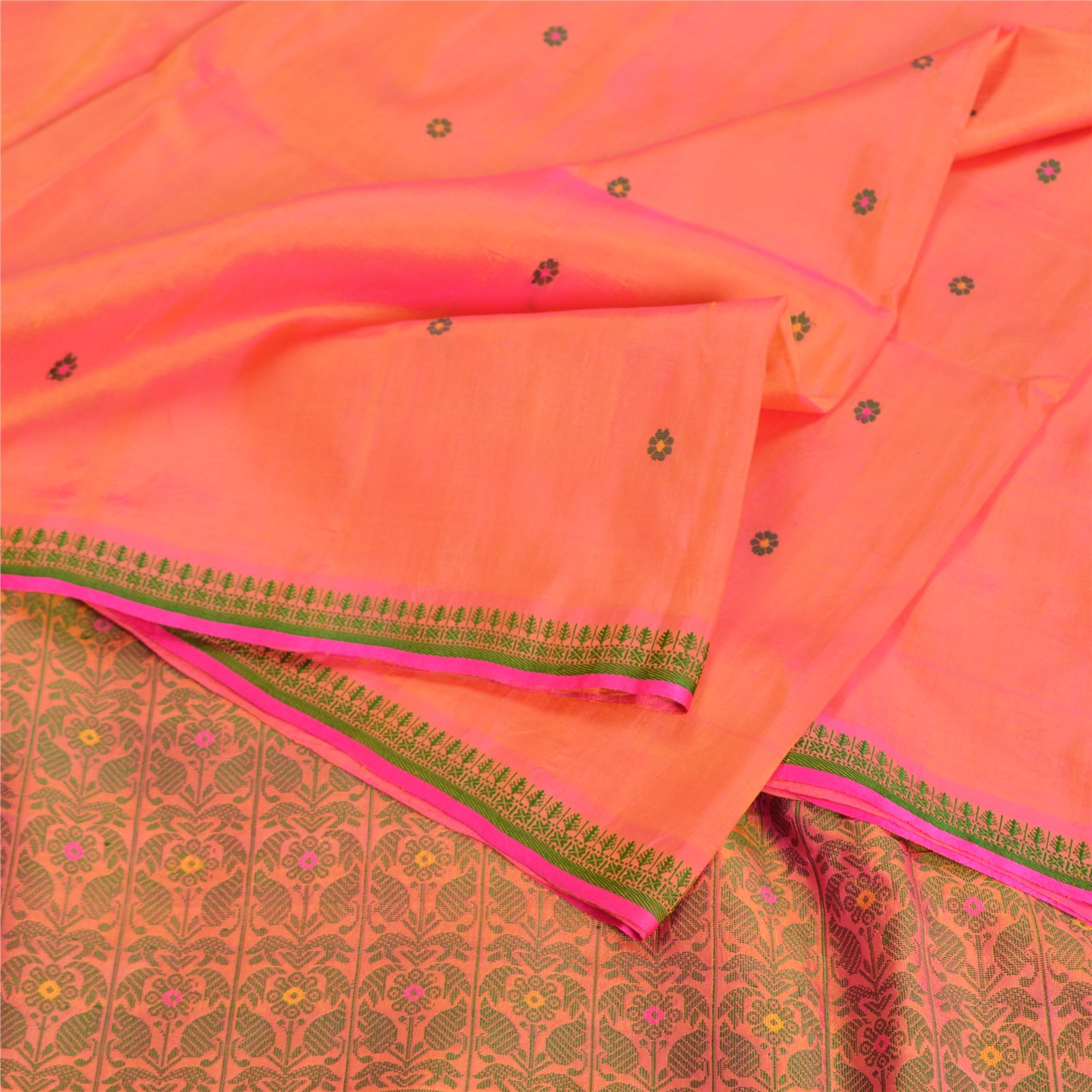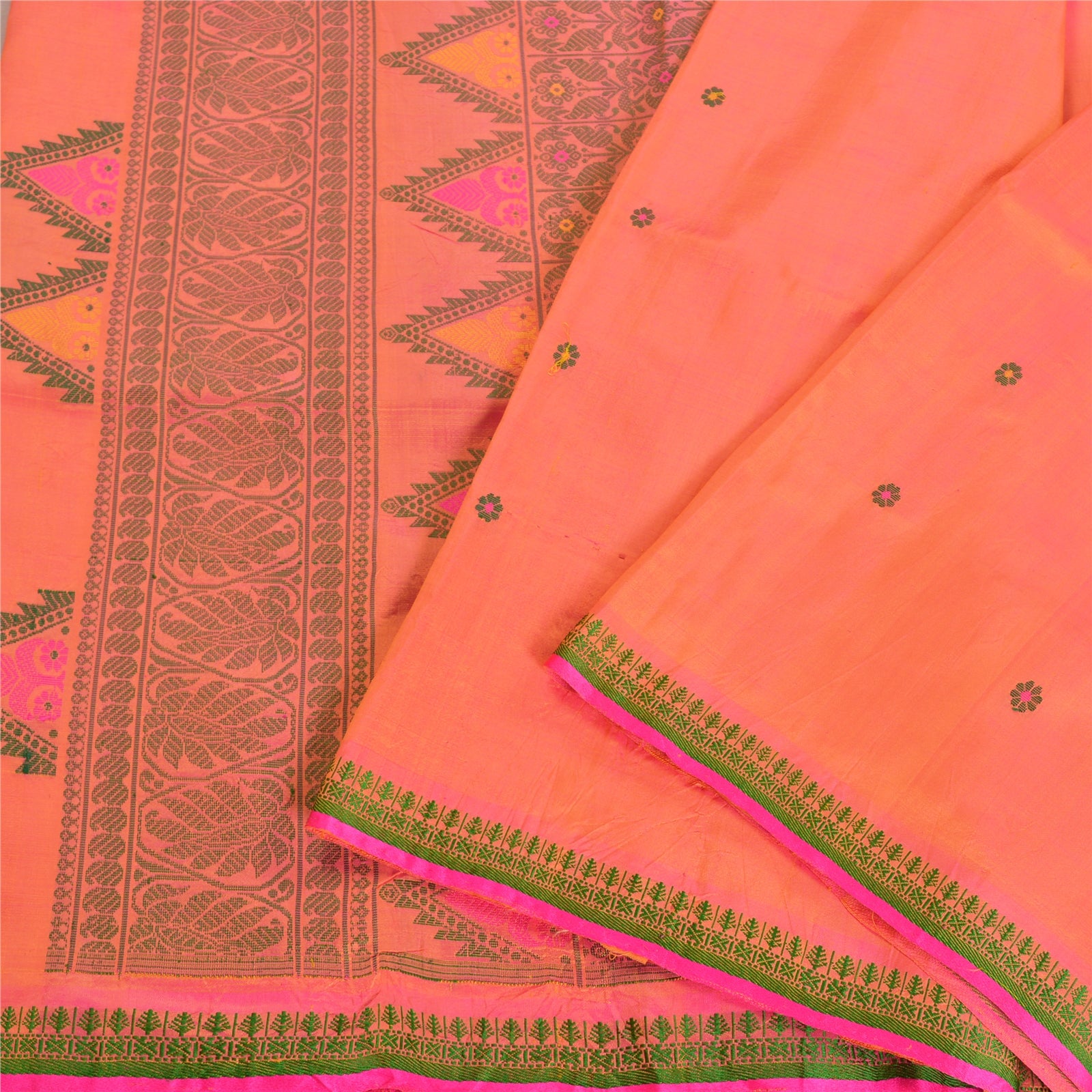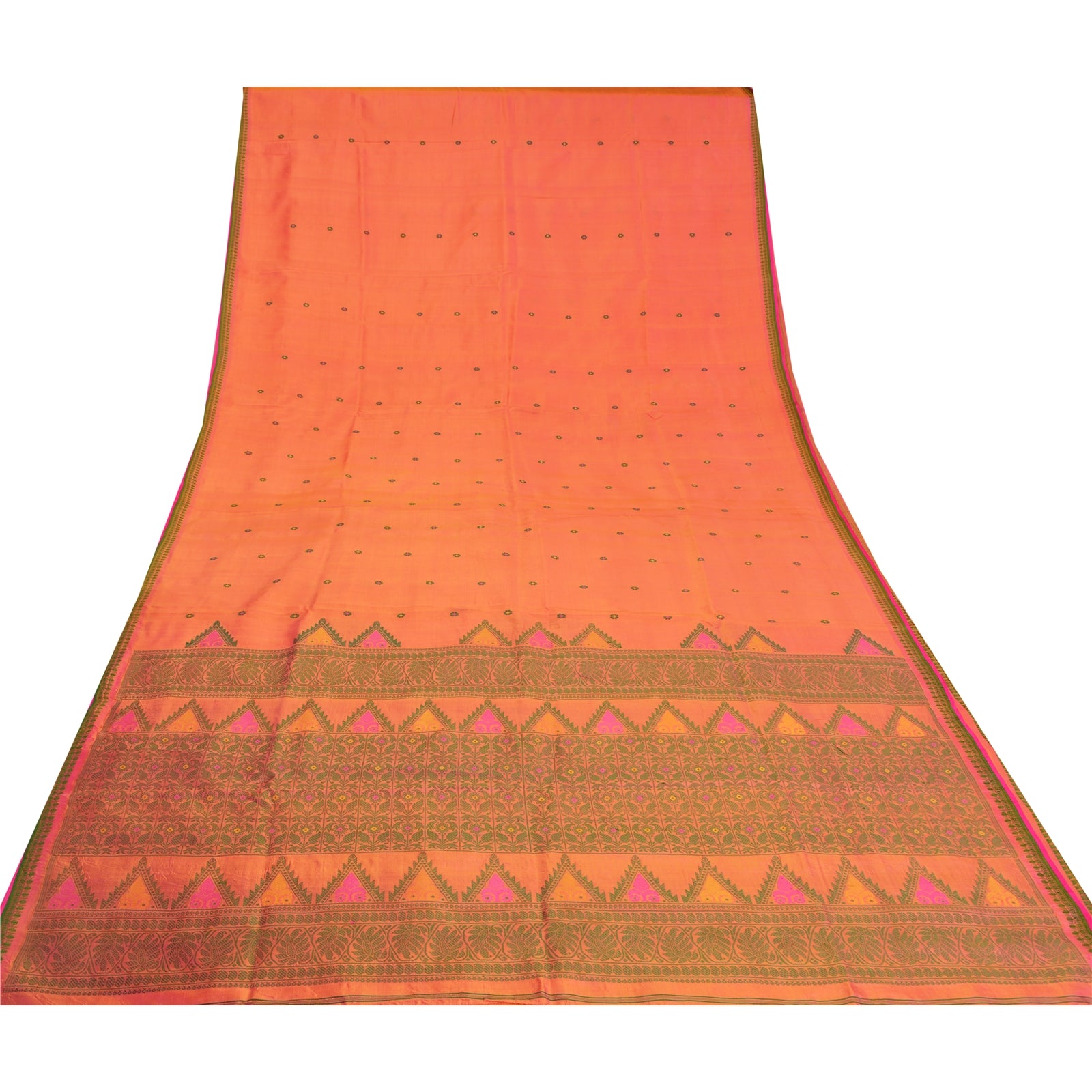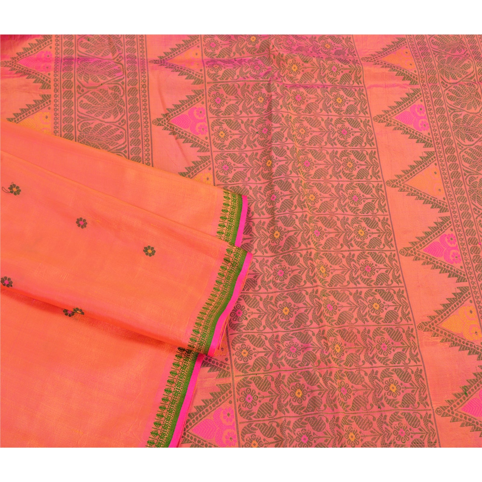 Санскритские винтажные персиковые сари 100% чистый шелк тканый премиальный сари ремесло устойчивая ткань