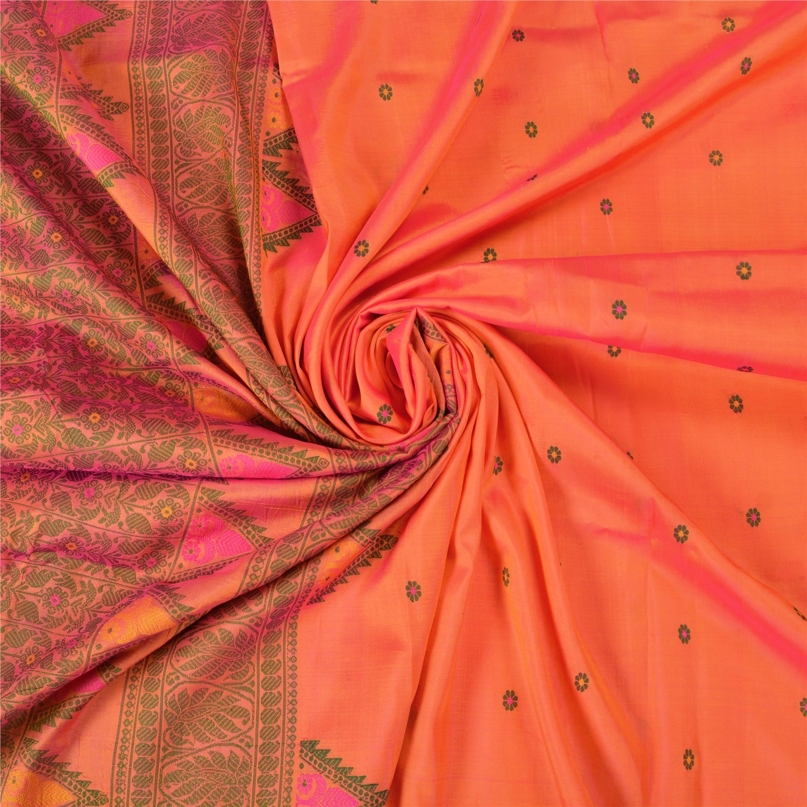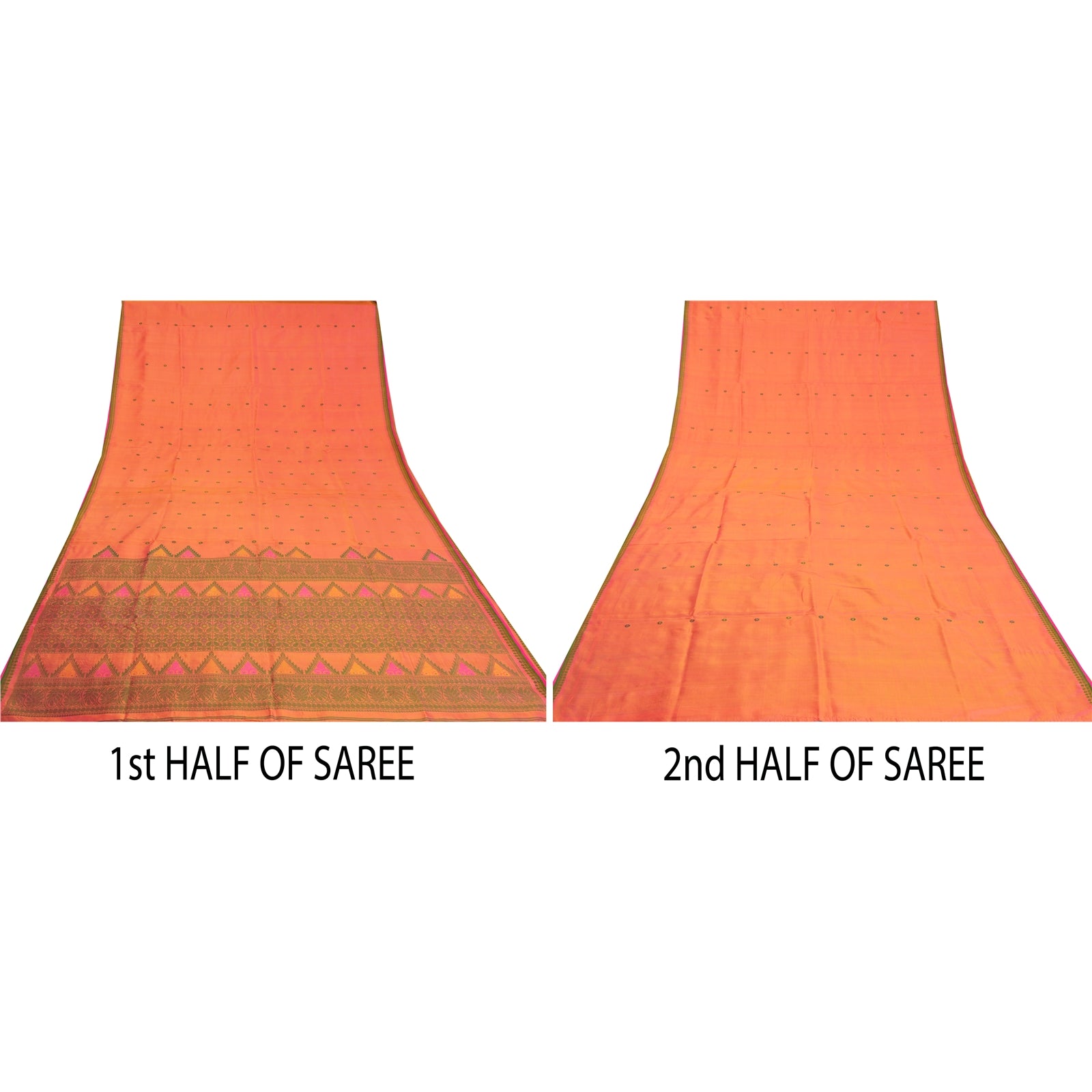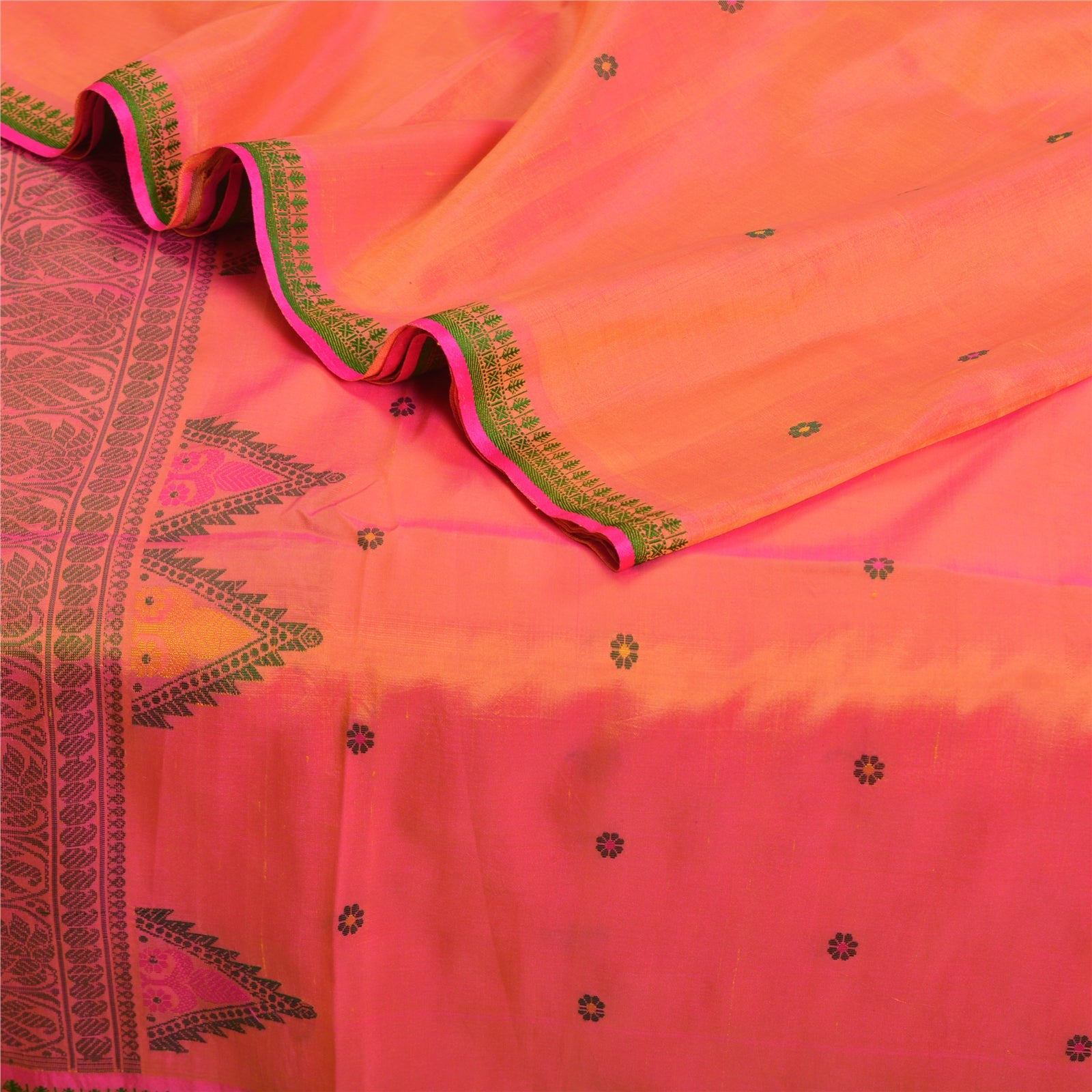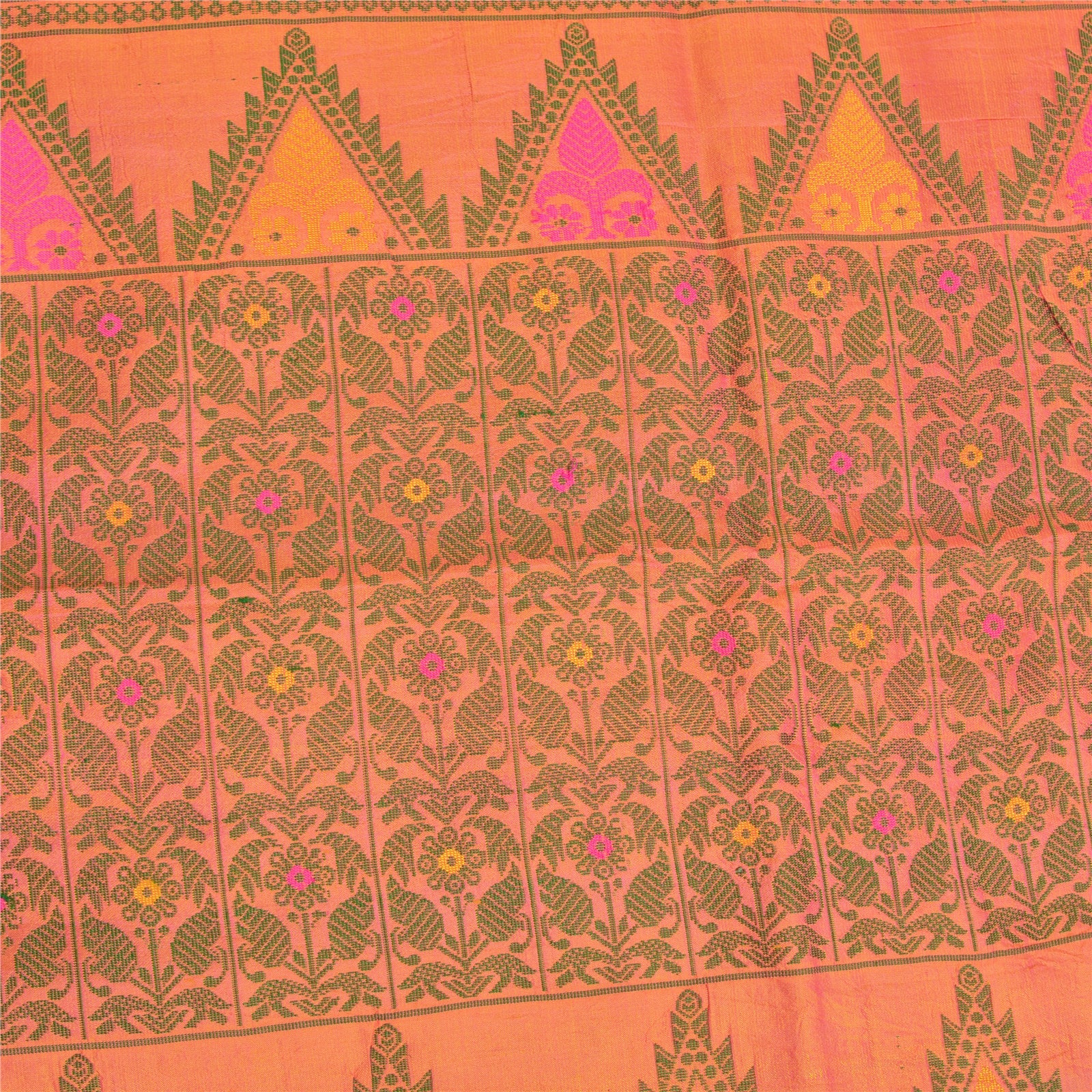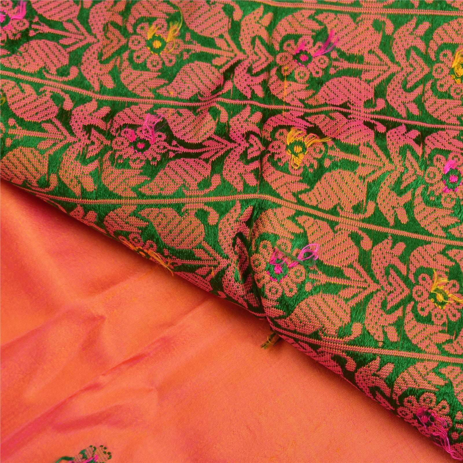 Санскритские винтажные персиковые сари 100% чистый шелк тканый премиальный сари ремесло устойчивая ткань