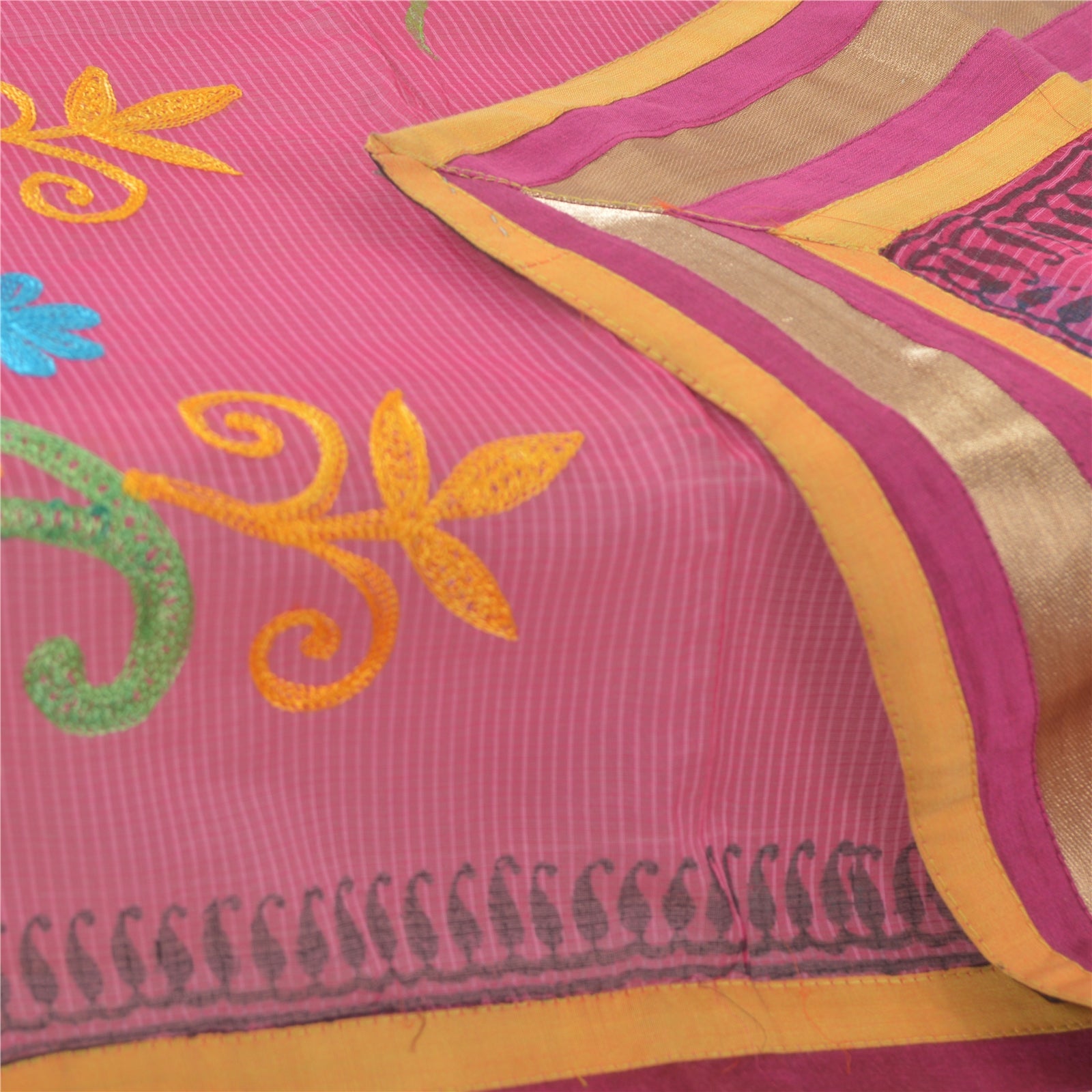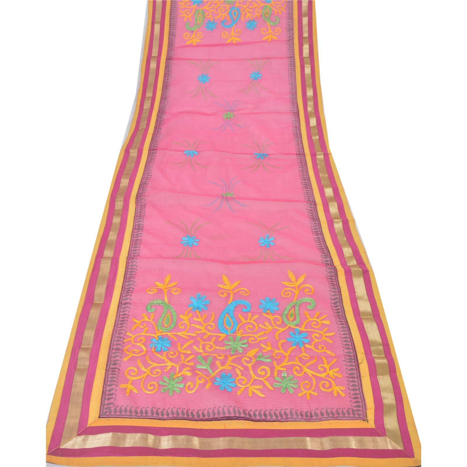Sanskriti Vintage Pink Dupatta Long Stole Art Silk Hand Embroidered Ari Scarves
