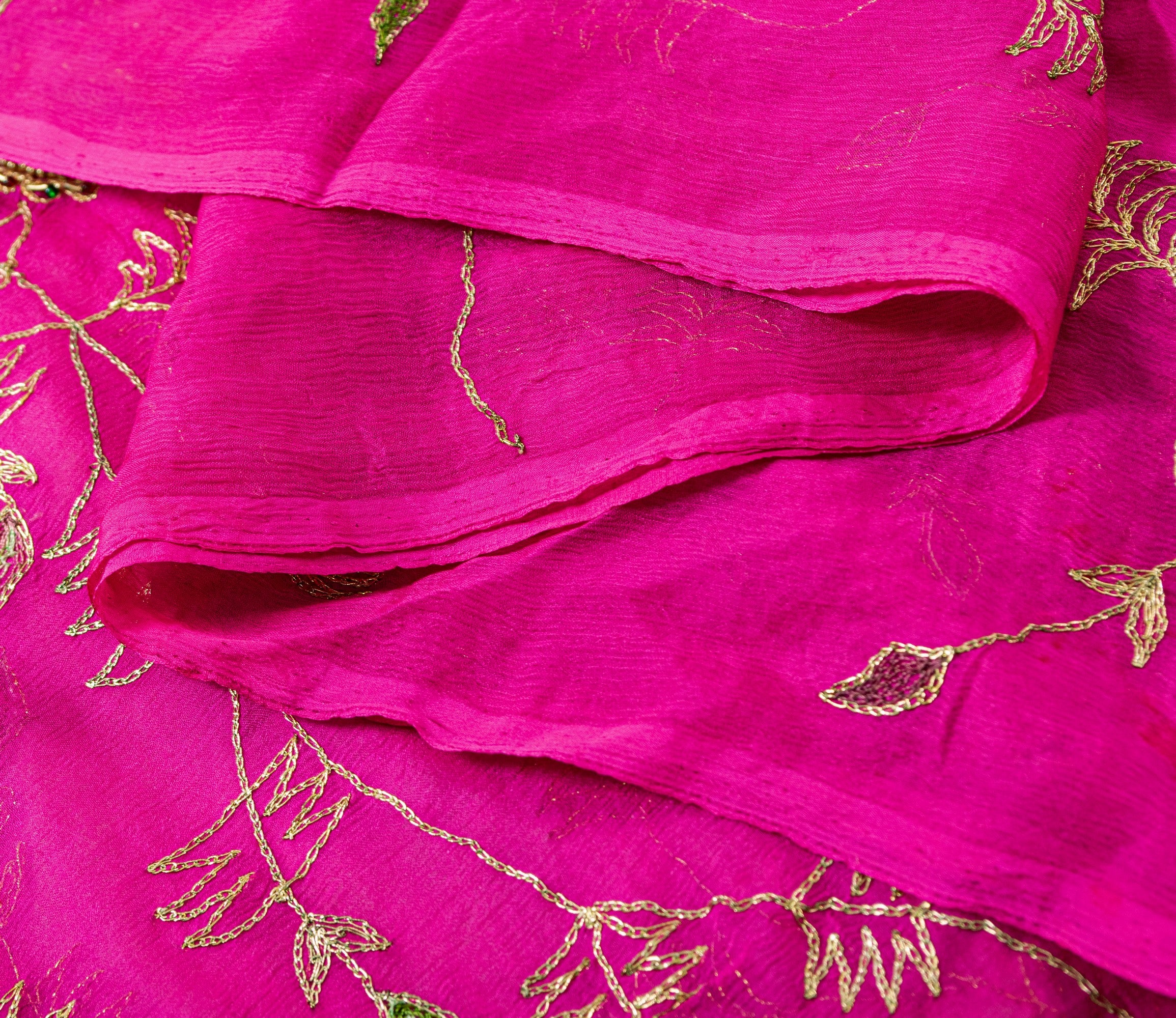 ✅ Material: Pure Chiffon – Lightweight, sheer, and flowy fabric 💖 Color: Pink ✨ Embroidery: Features fine embroidery with Golden Zari, Zardozi, Sequins, golden bead, glass beaded work embellishments with delicate detailing 📏 Size: Approx. 90 length & Width 40 (standard dupatta length) 🧵 Craftsmanship: Traditional Indian hand embroidery using metallic zari and beads 🛋️ Uses: Perfect for ethnic wear, scarf styling, weddings, festive events, or home decor ♻️ Sustainable Vintage: Reclaimed and gently used – eco-friendly and unique 🧼 Condition: Vintage piece in good condition, minor wear possible due to age 🎁 Great for: Dressmaking, fashion design, upcycling, costuming, or boho projects THE ITEM COLOR OR SHADE MAY BE DARKER OR LIGHTER THAN THE PICTURE.' International buyers please note: Import duties, taxes, and charges are not included in the item price or postage cost. Buyer will pay custom duty/tax,VAT, and any applicable charges at the time of delivery. DC-55424