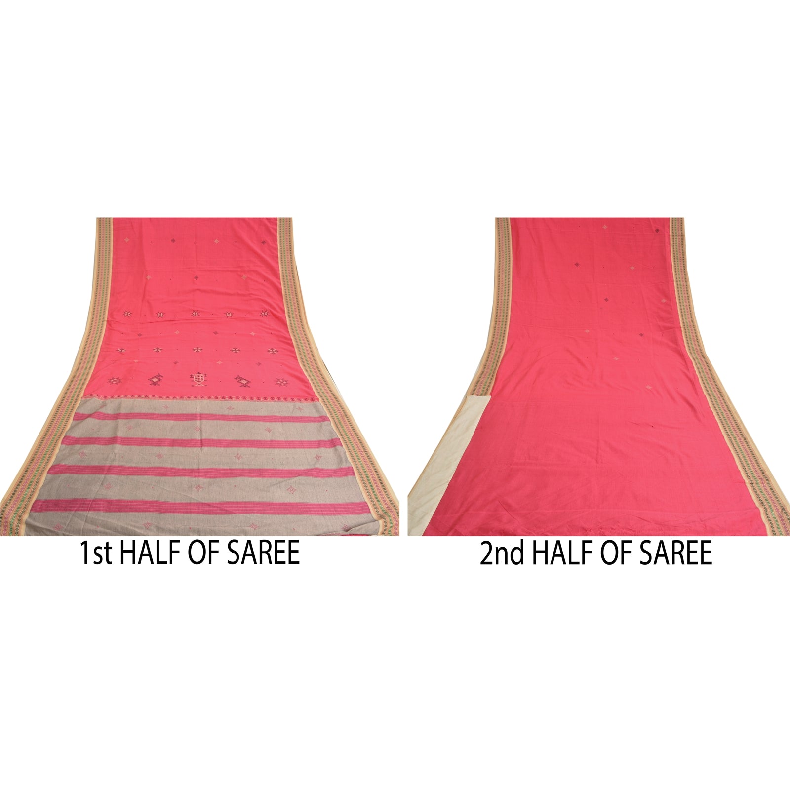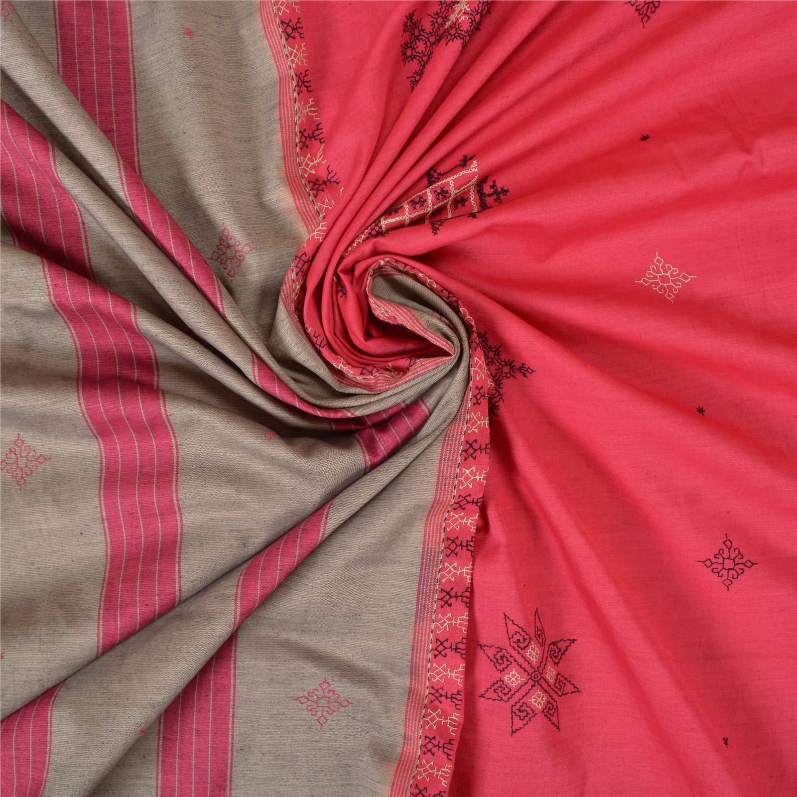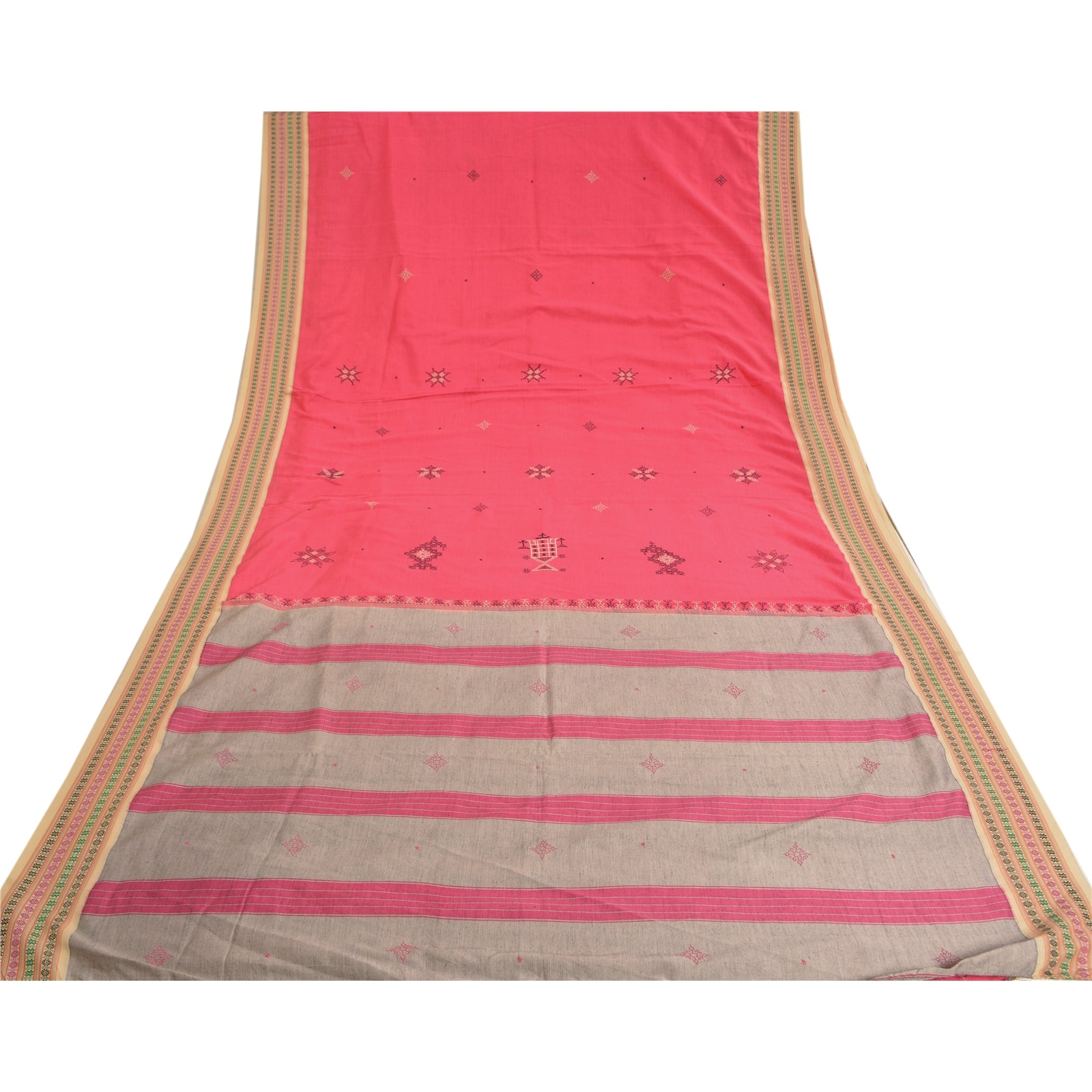 Санскритские винтажные розовые сари из смеси хлопка с ручной вышивкой из синдхи-сари, устойчивая ткань
