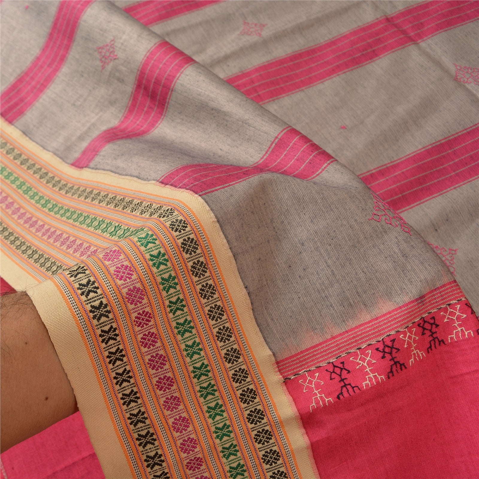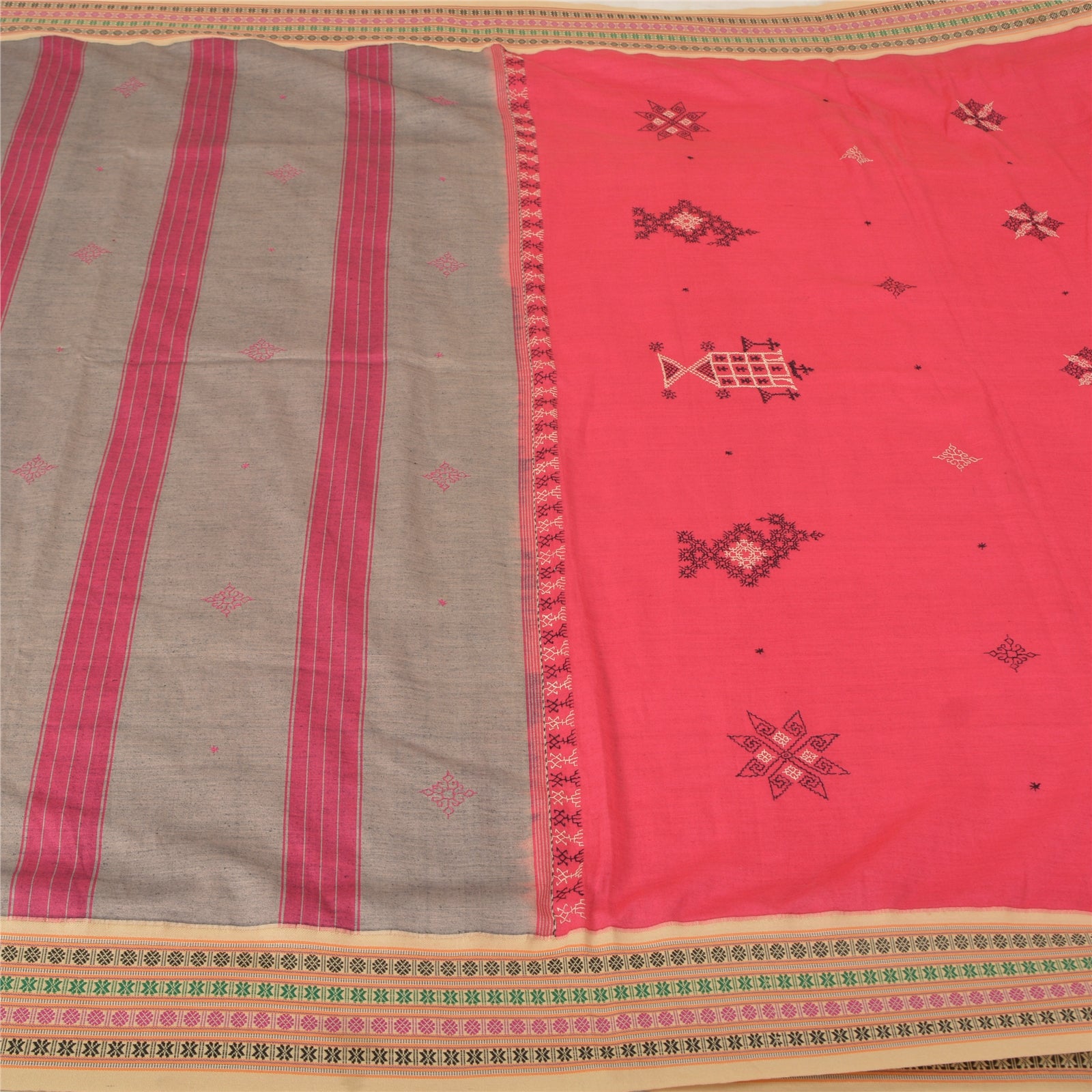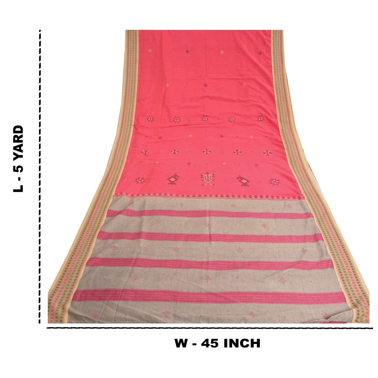Санскритские винтажные розовые сари из смеси хлопка с ручной вышивкой из синдхи-сари, устойчивая ткань