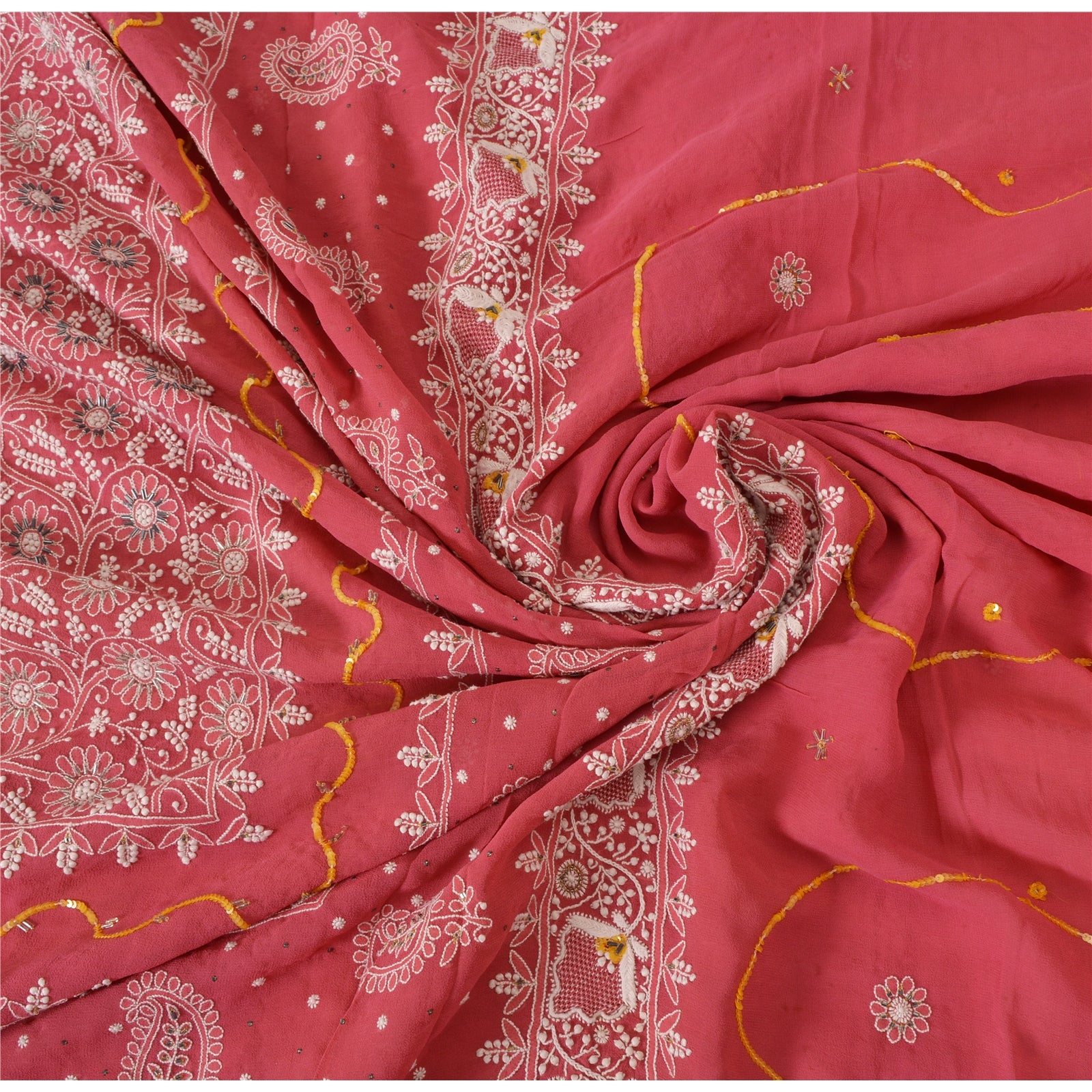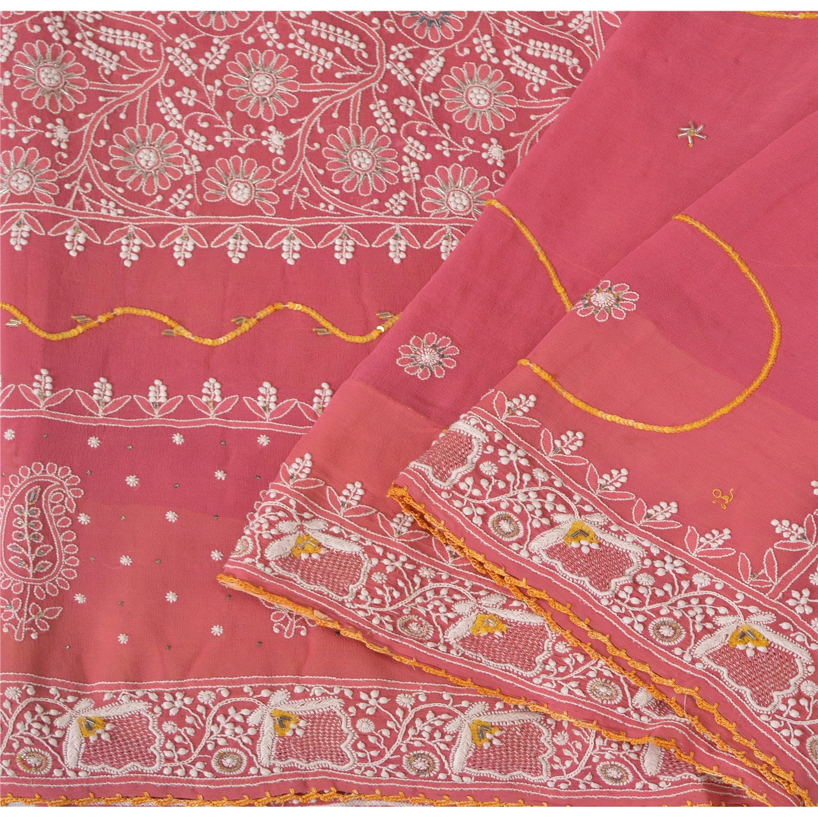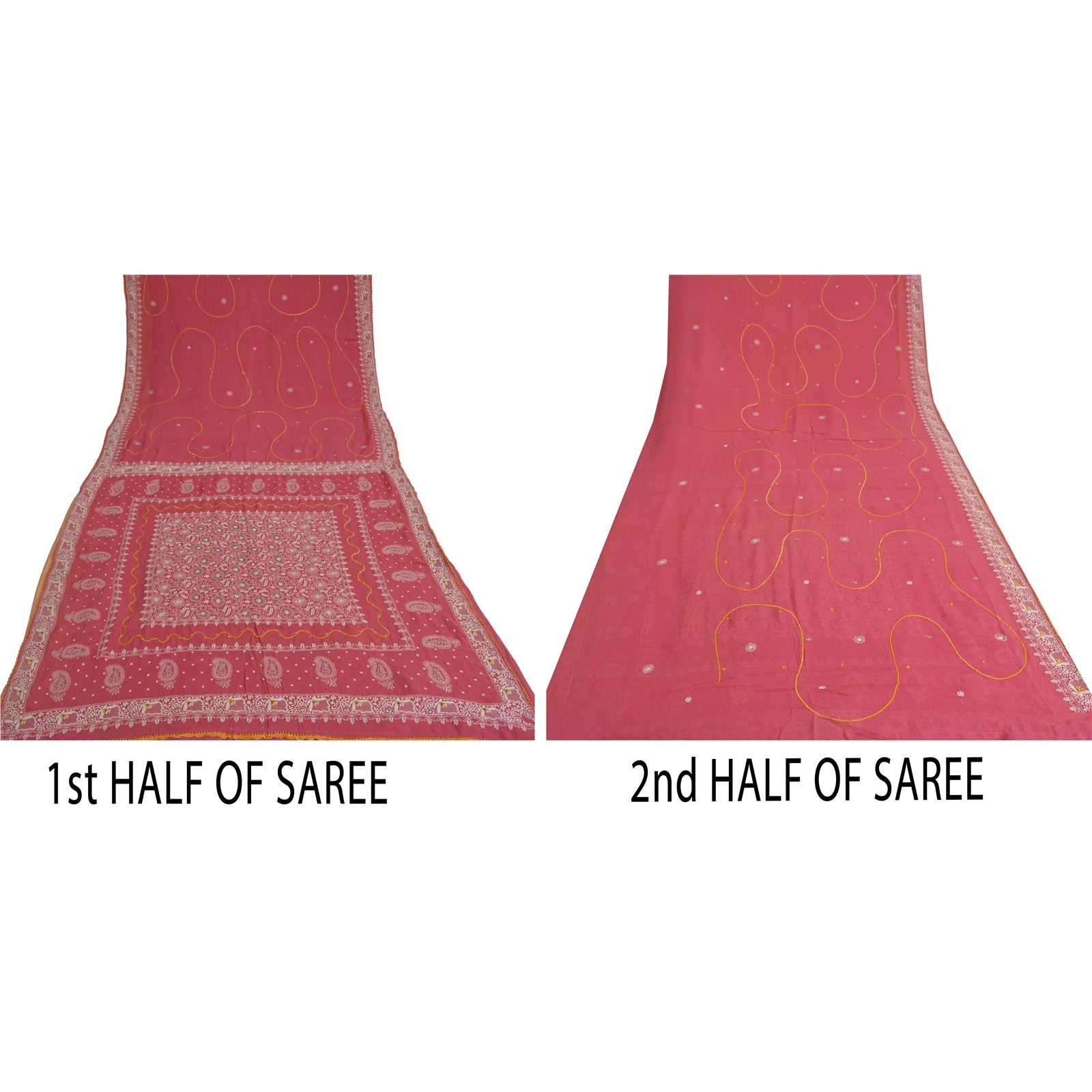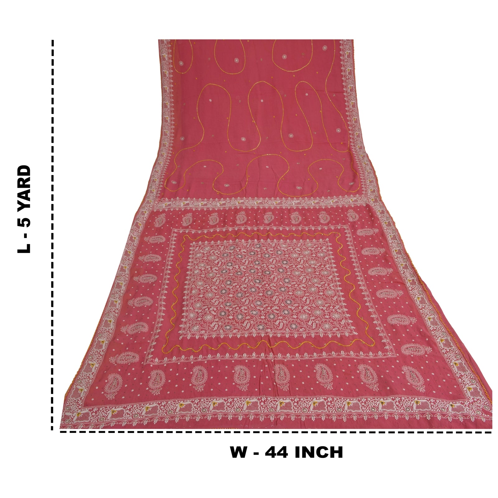 Санскритские винтажные розовые сари из чистого шелка-жоржета с ручной вышивкой из экологически чистой ткани сари