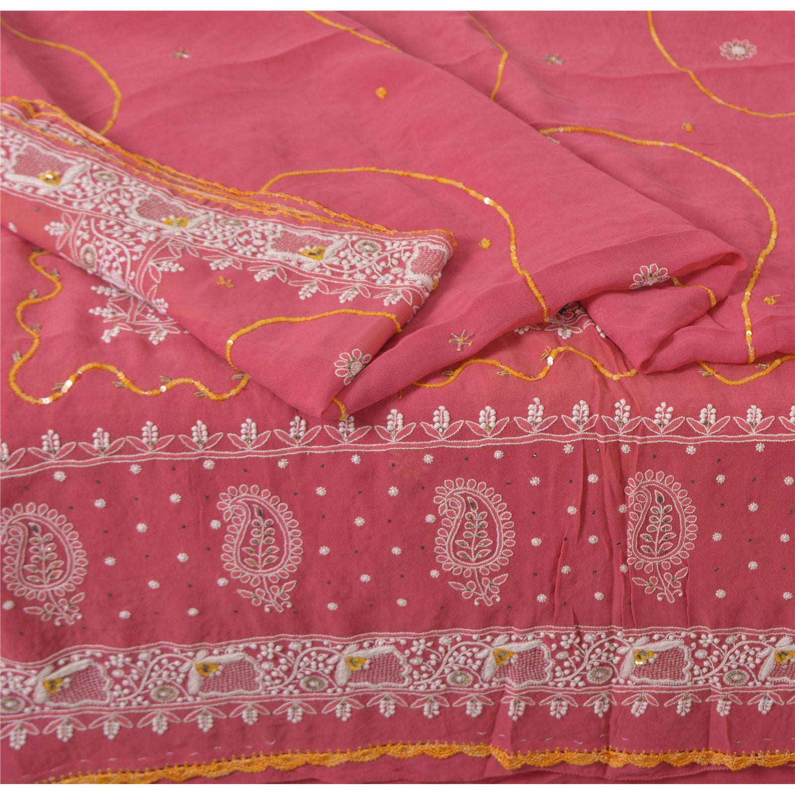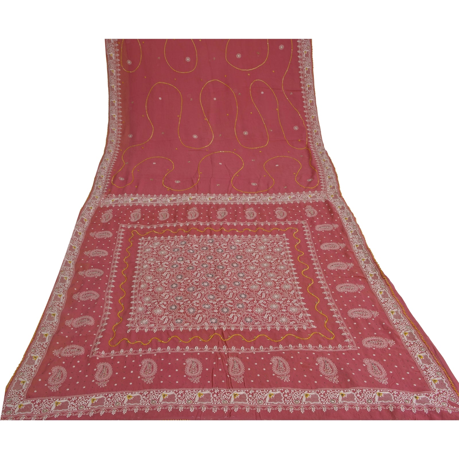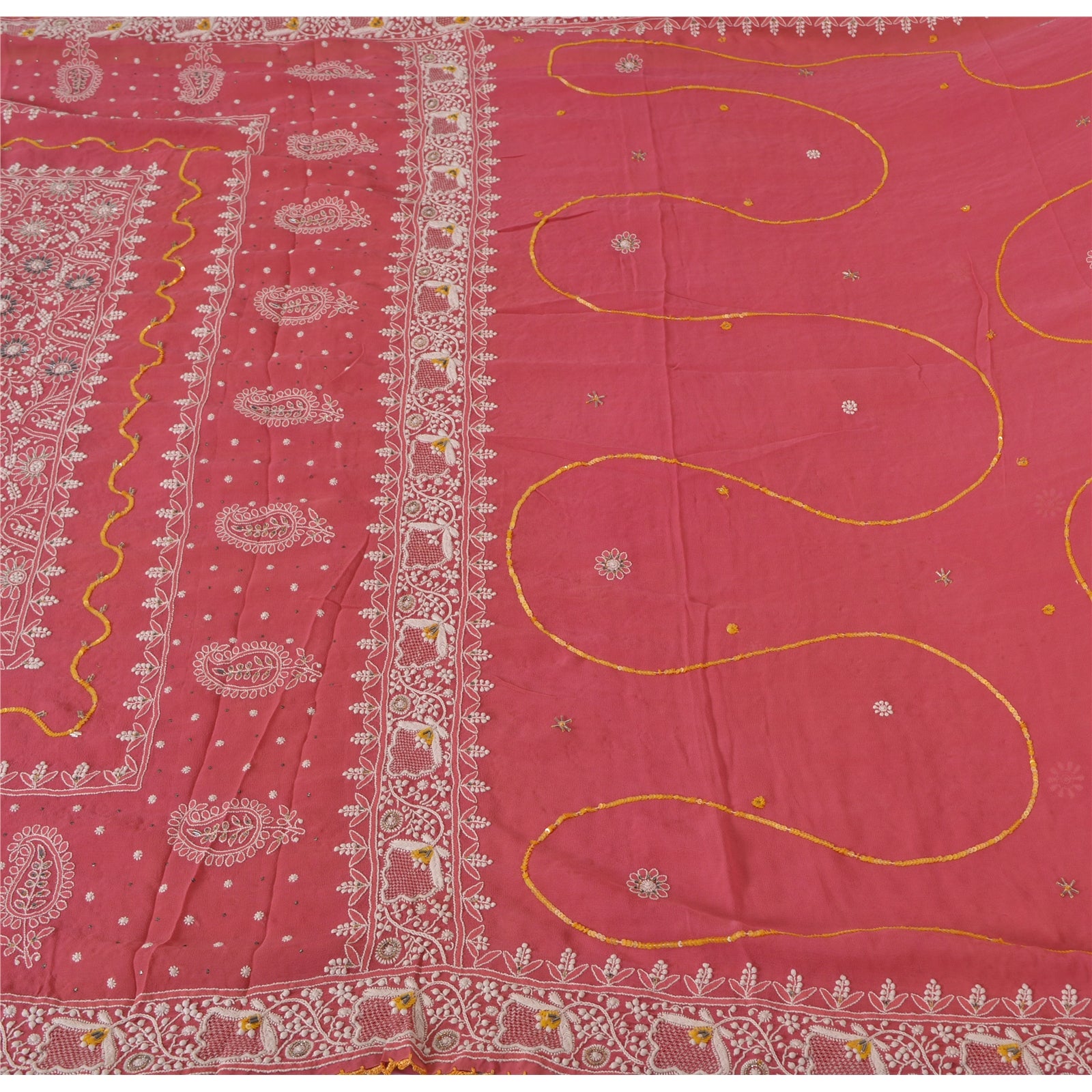 Санскритские винтажные розовые сари из чистого шелка-жоржета с ручной вышивкой из экологически чистой ткани сари
