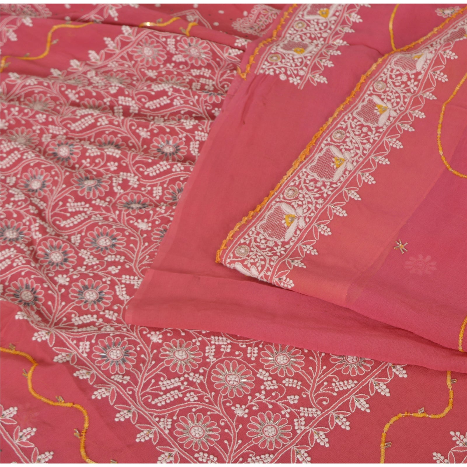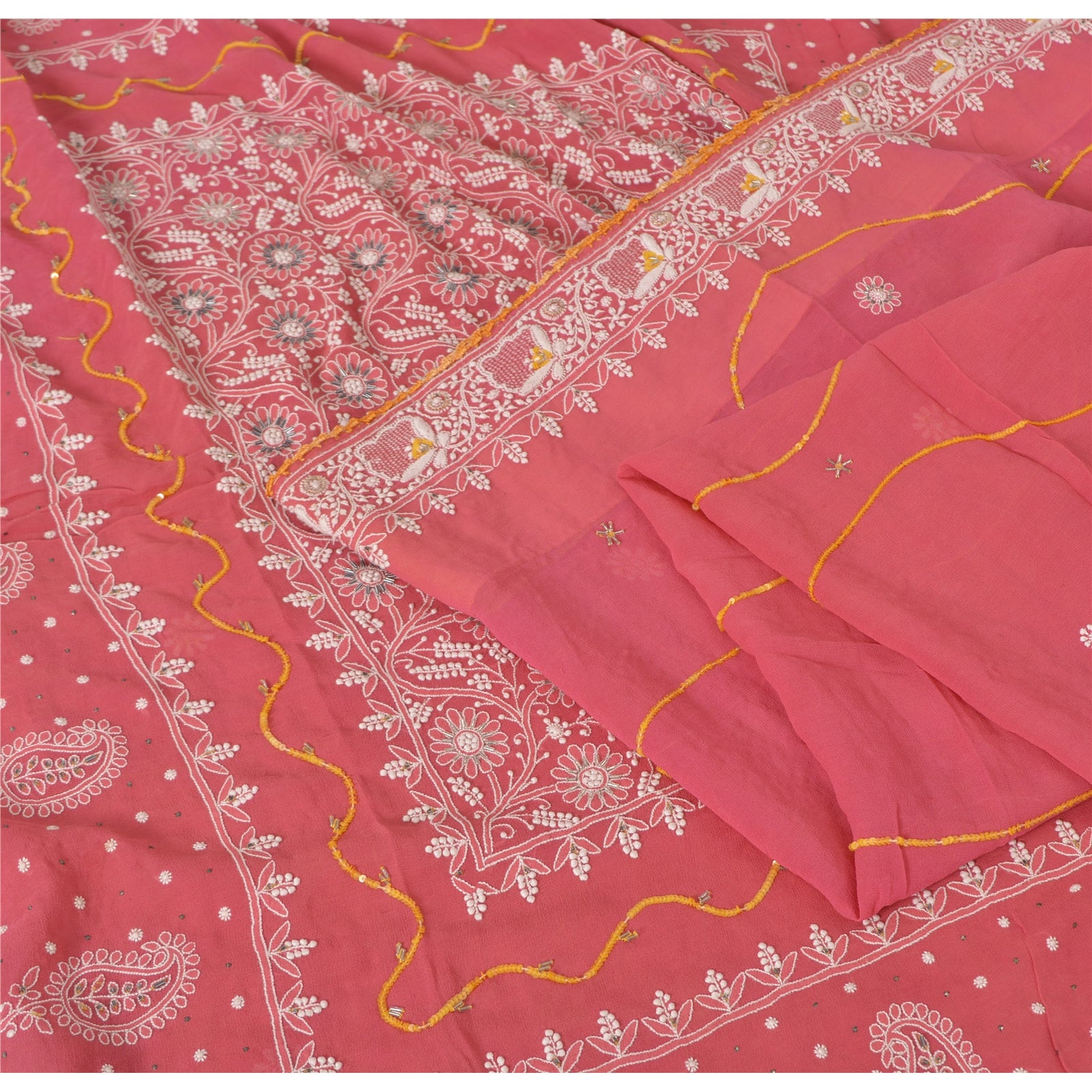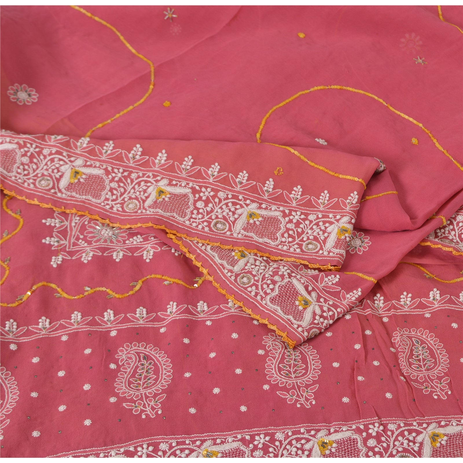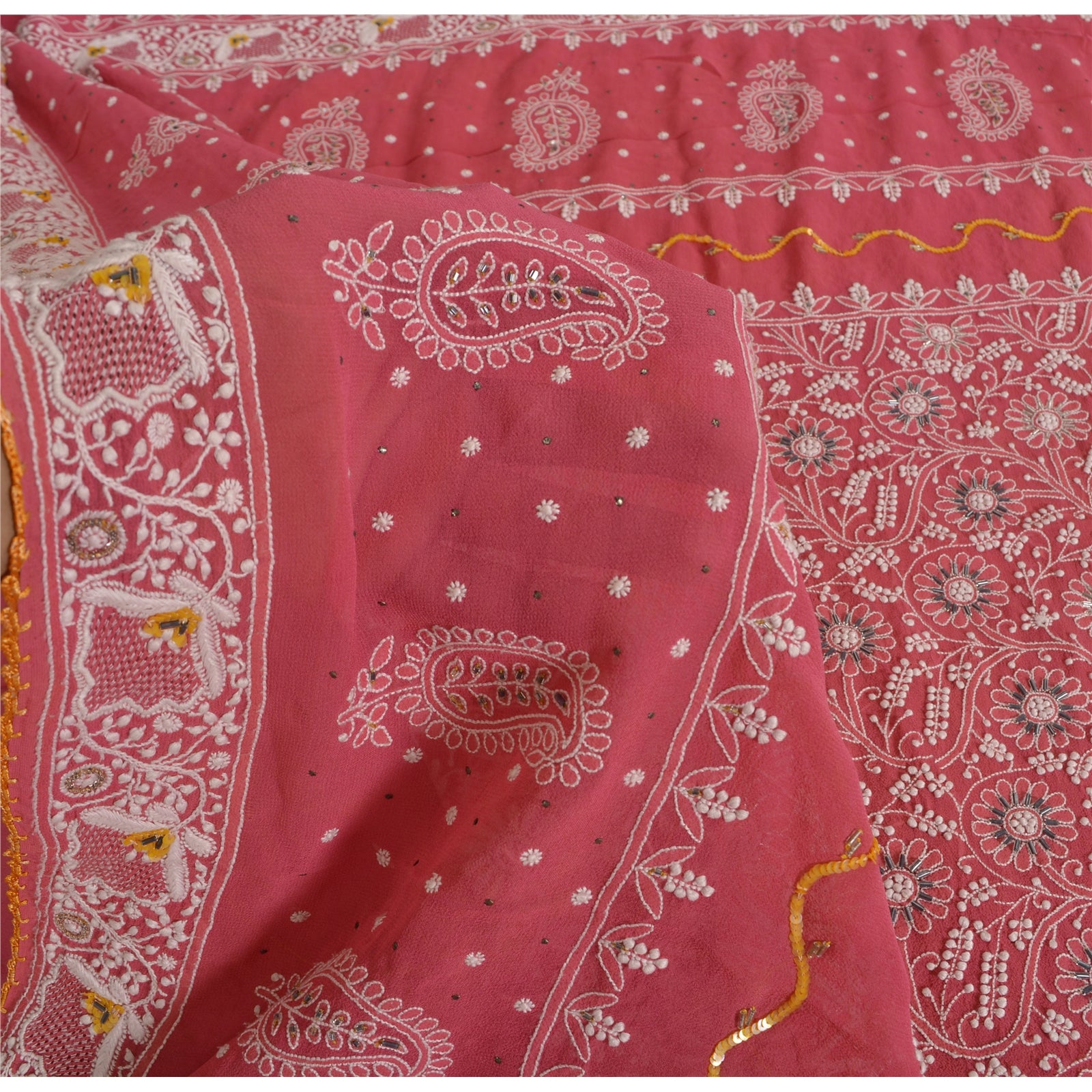 Санскритские винтажные розовые сари из чистого шелка-жоржета с ручной вышивкой из экологически чистой ткани сари