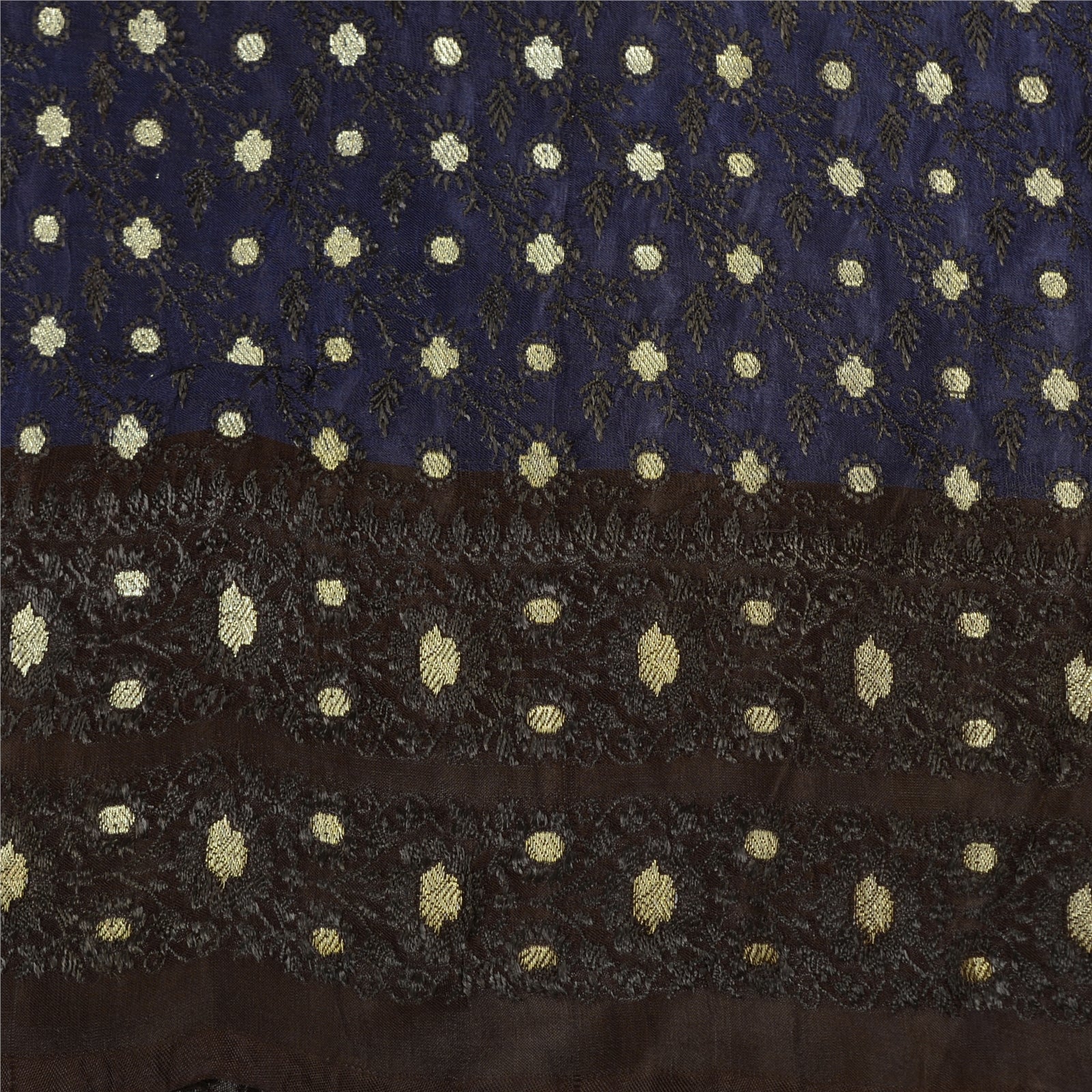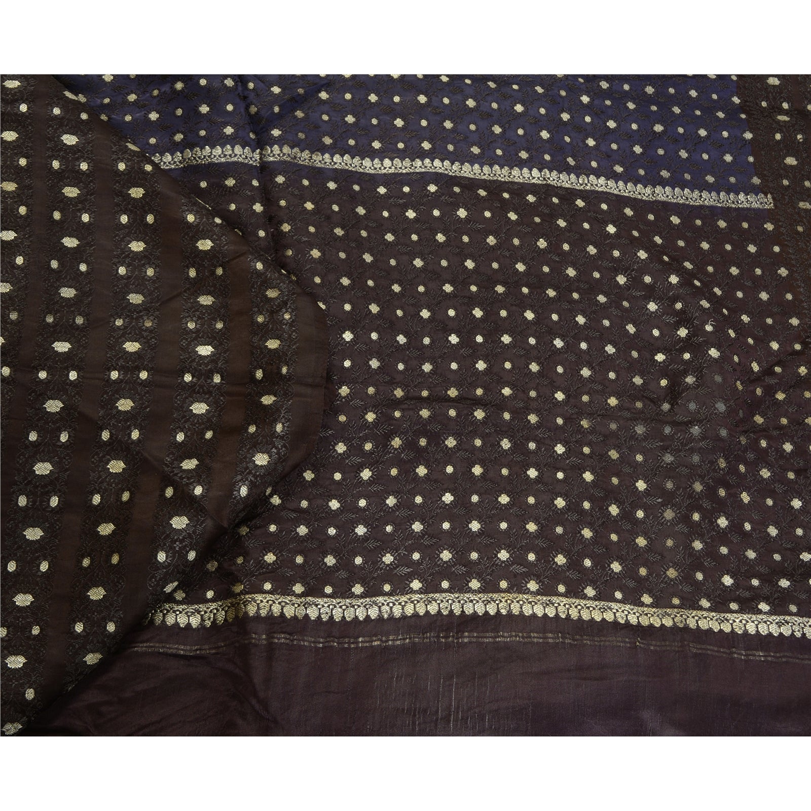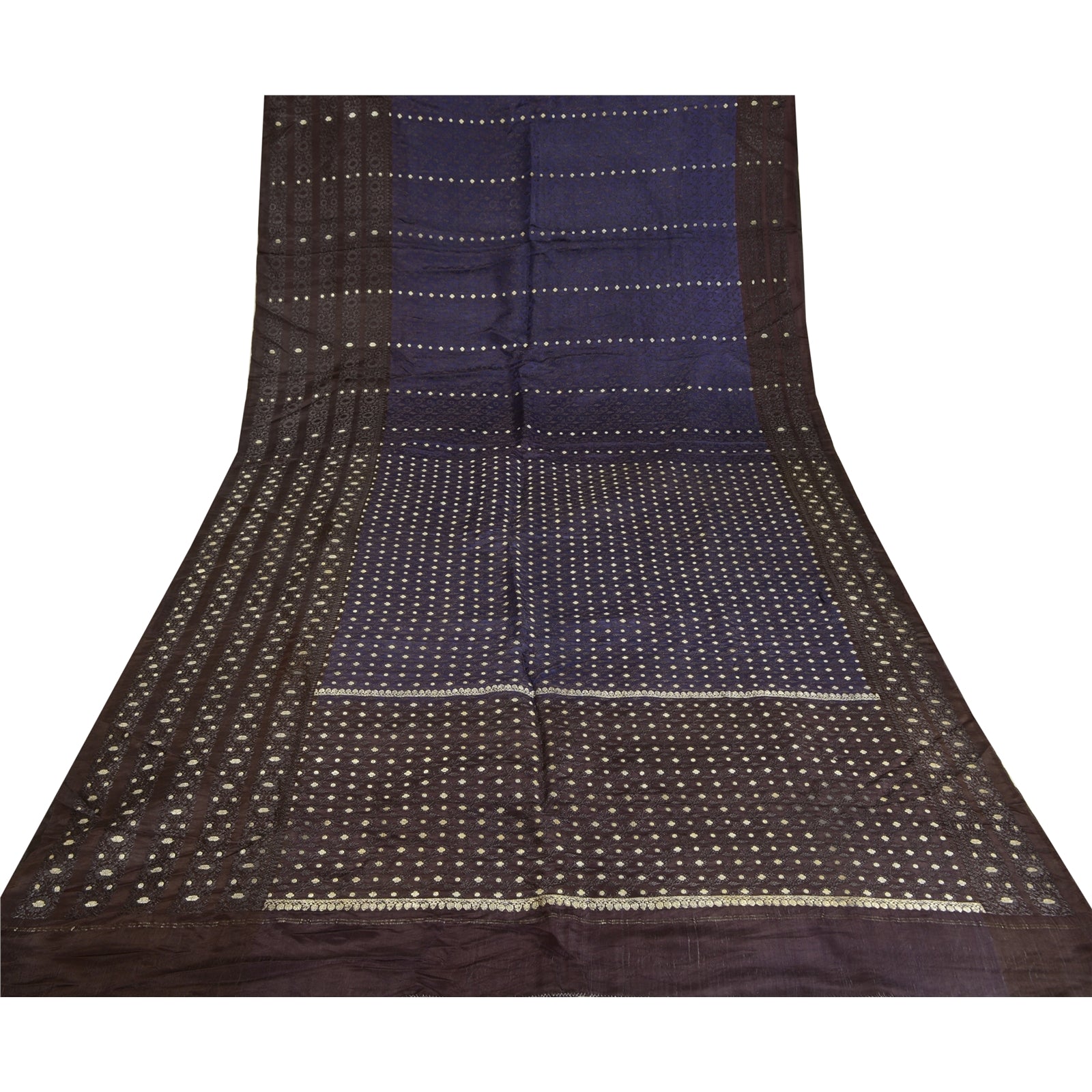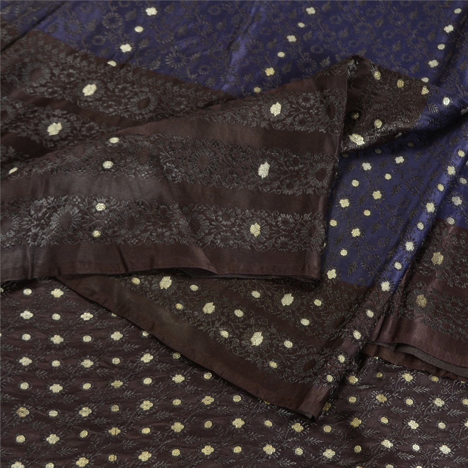 Санскритское винтажное фиолетовое/синее сари из чистого атласа и шелка, тканое сари Банараси, экологически чистая ткань