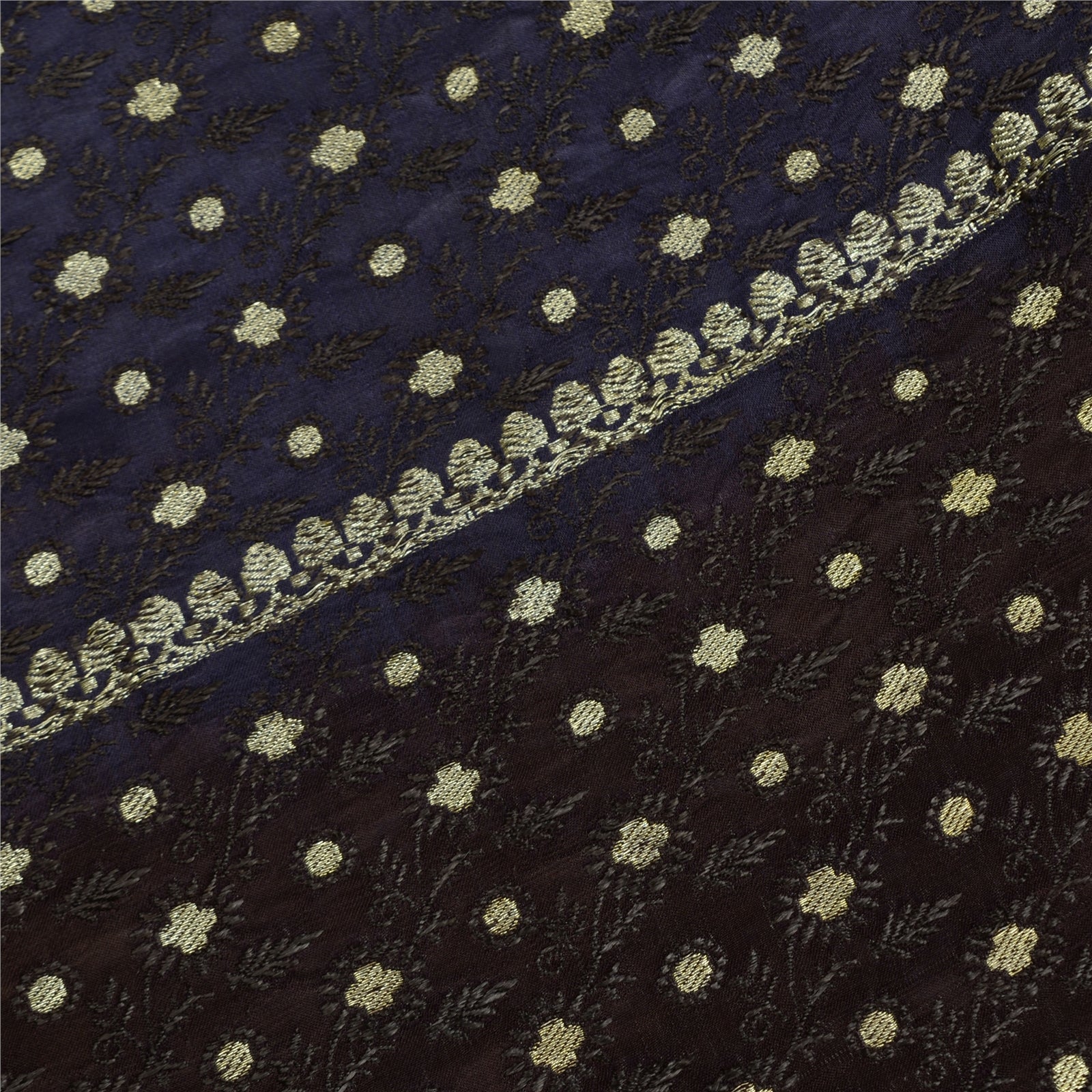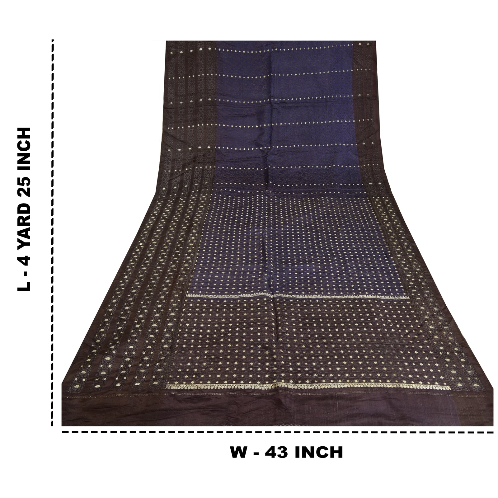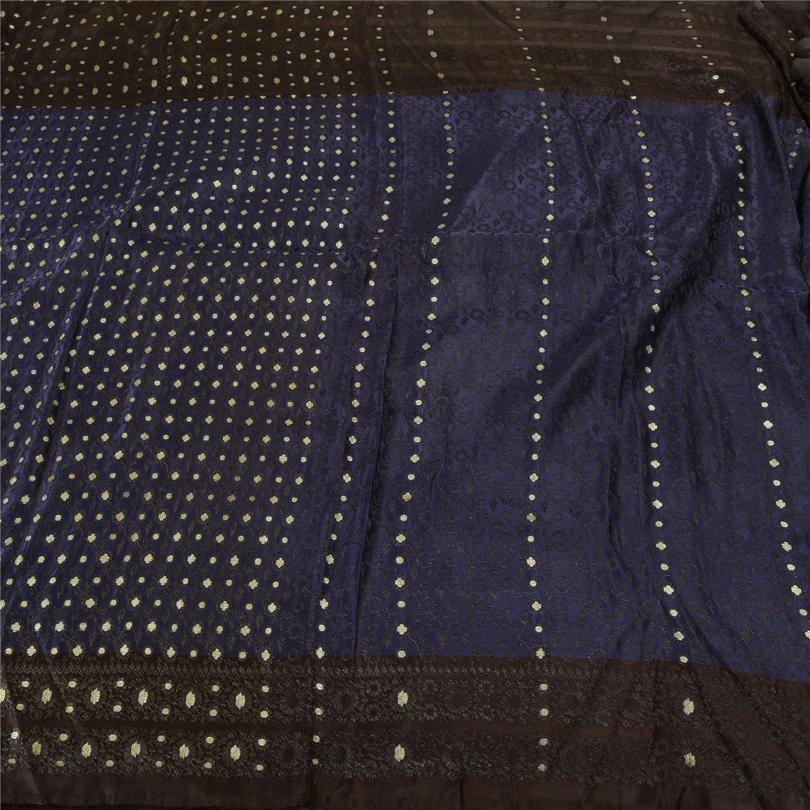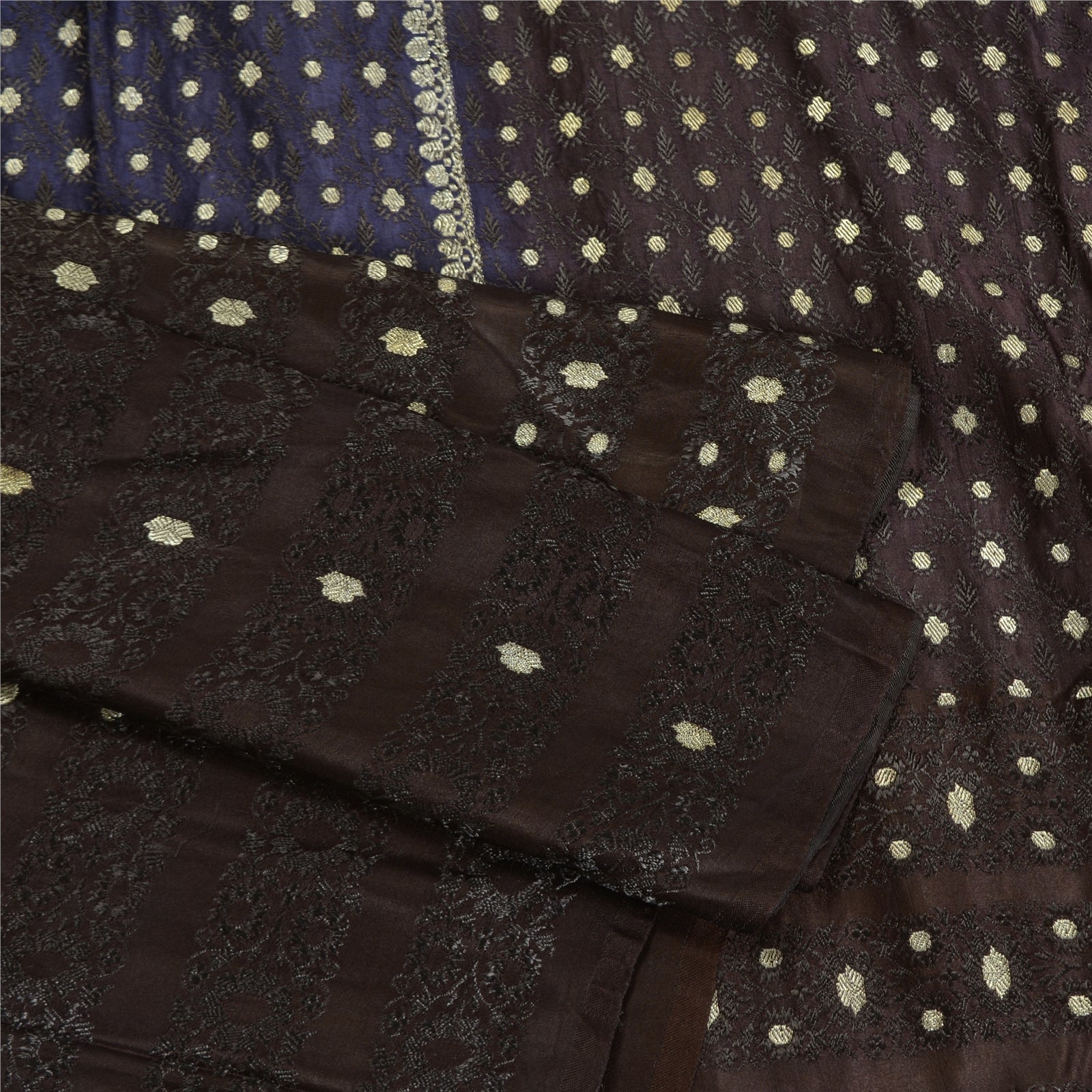 Санскритское винтажное фиолетовое/синее сари из чистого атласа и шелка, тканое сари Банараси, экологически чистая ткань