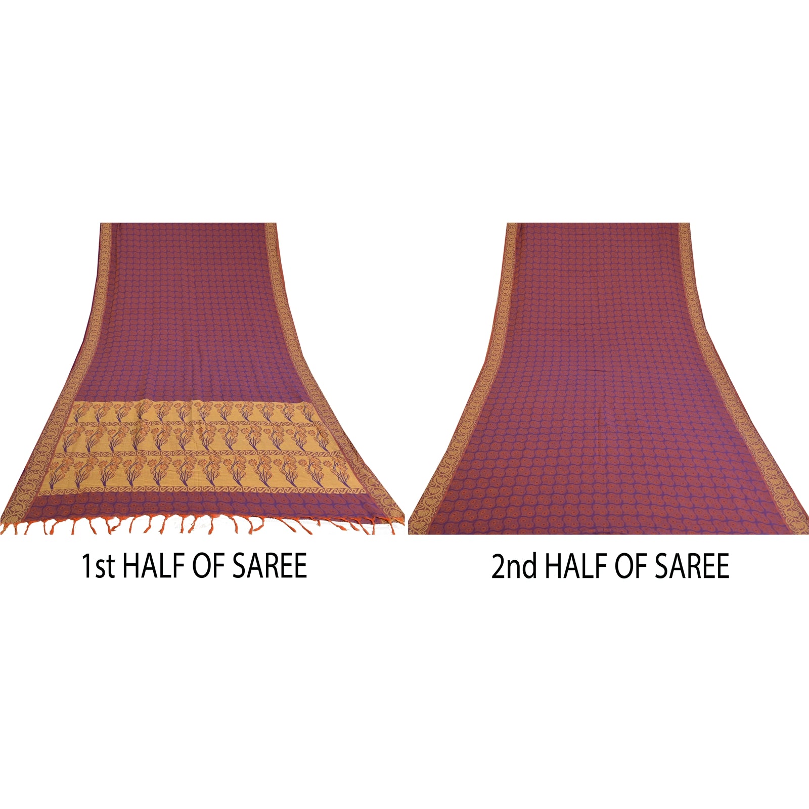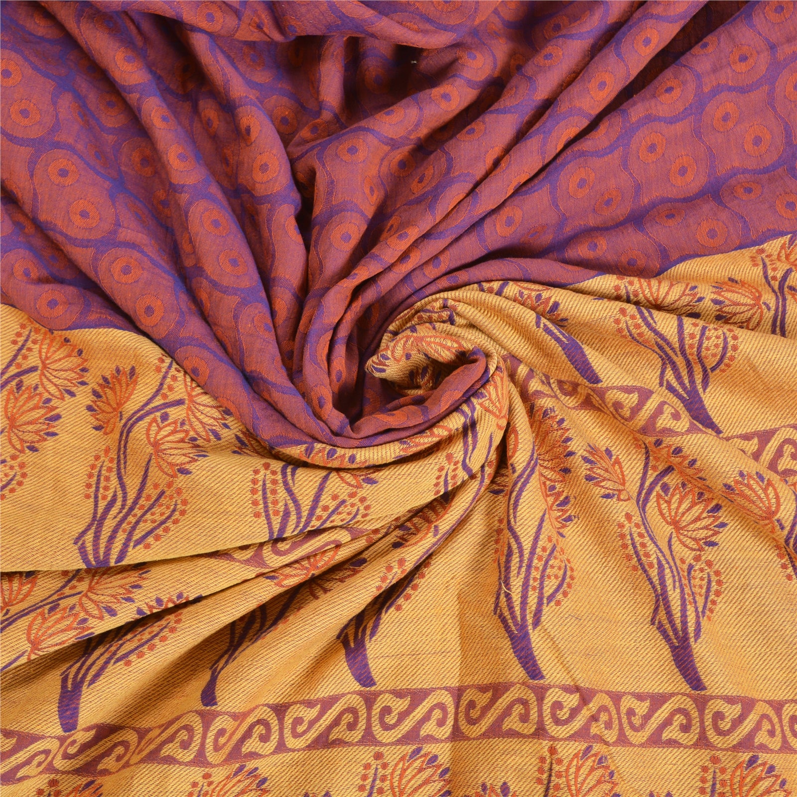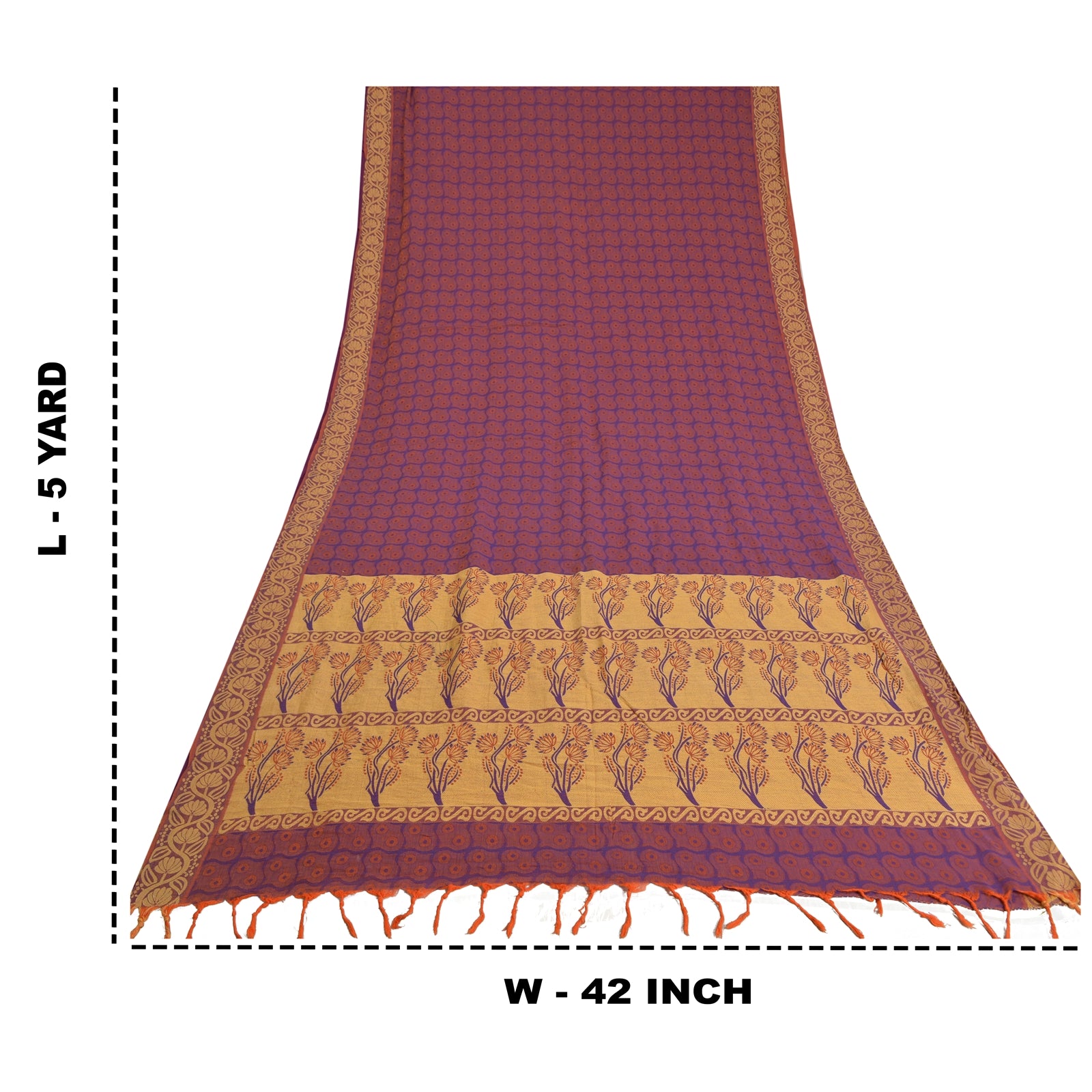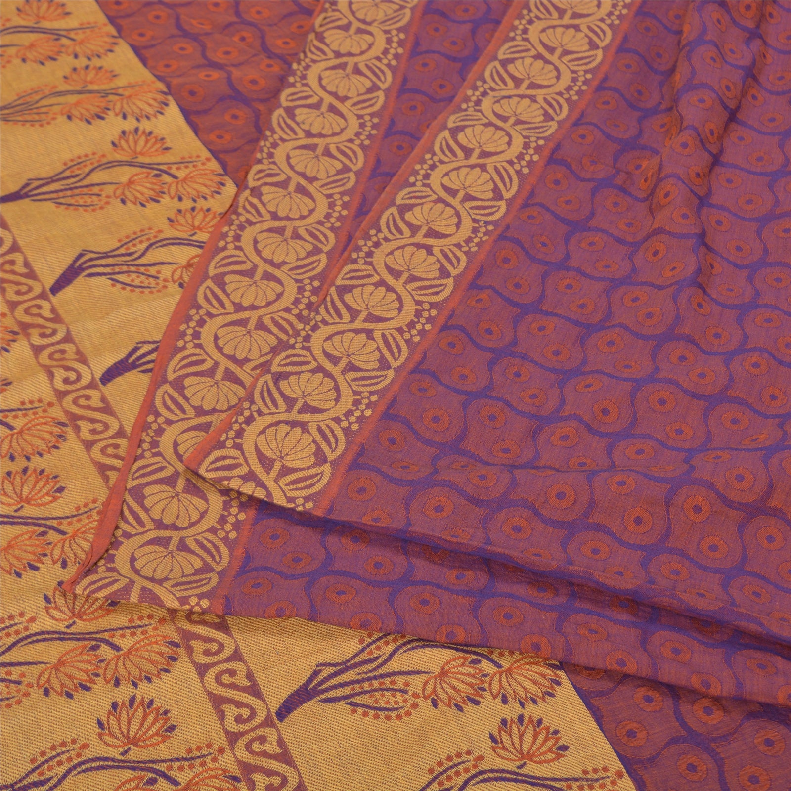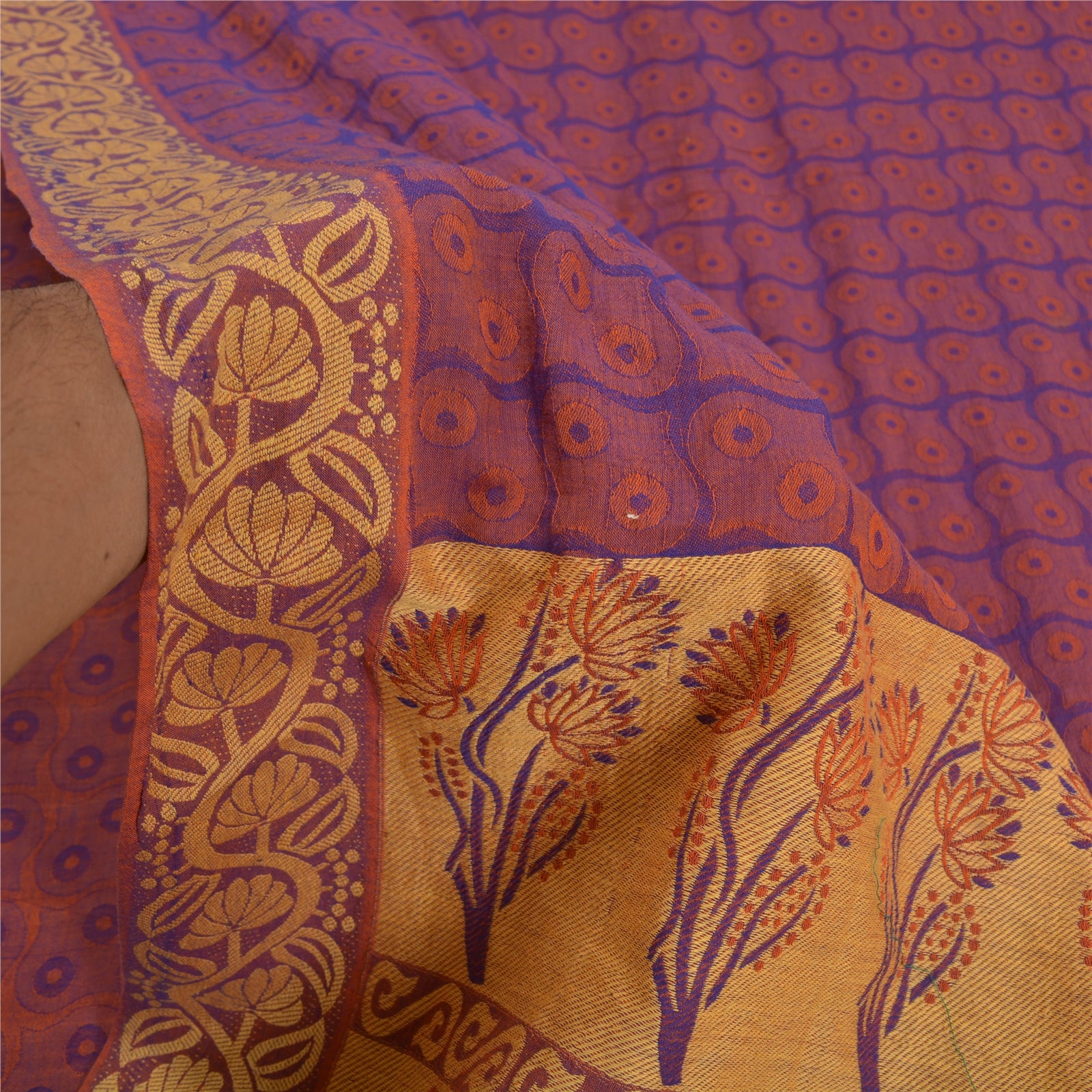 Санскритские винтажные фиолетовые сари 100% чистый хлопок тканый премиальный сари ремесло устойчивая ткань