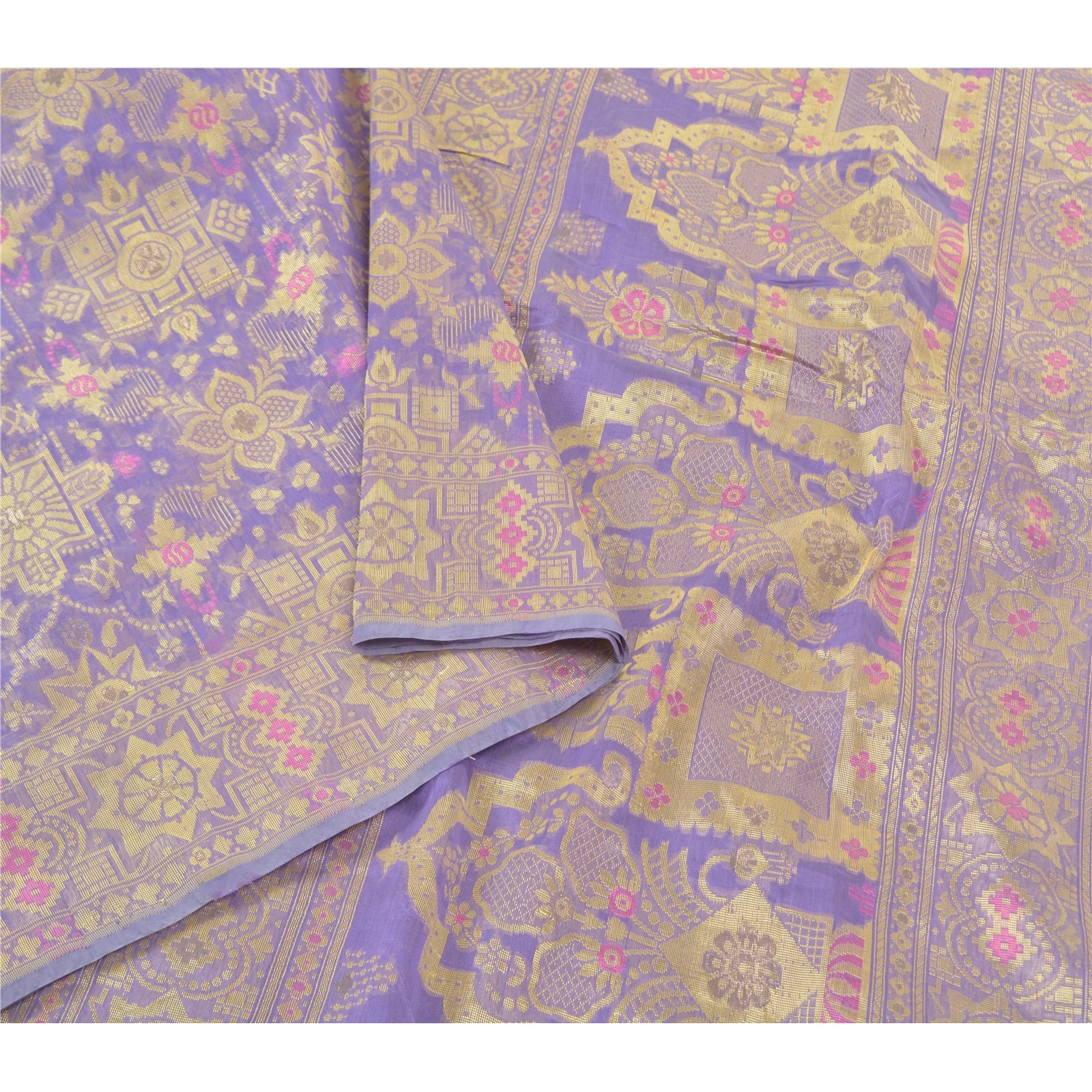 Санскритские винтажные фиолетовые сари из искусственного шелка ручной работы, премиальное сари, 5 ярдов, устойчивая ткань