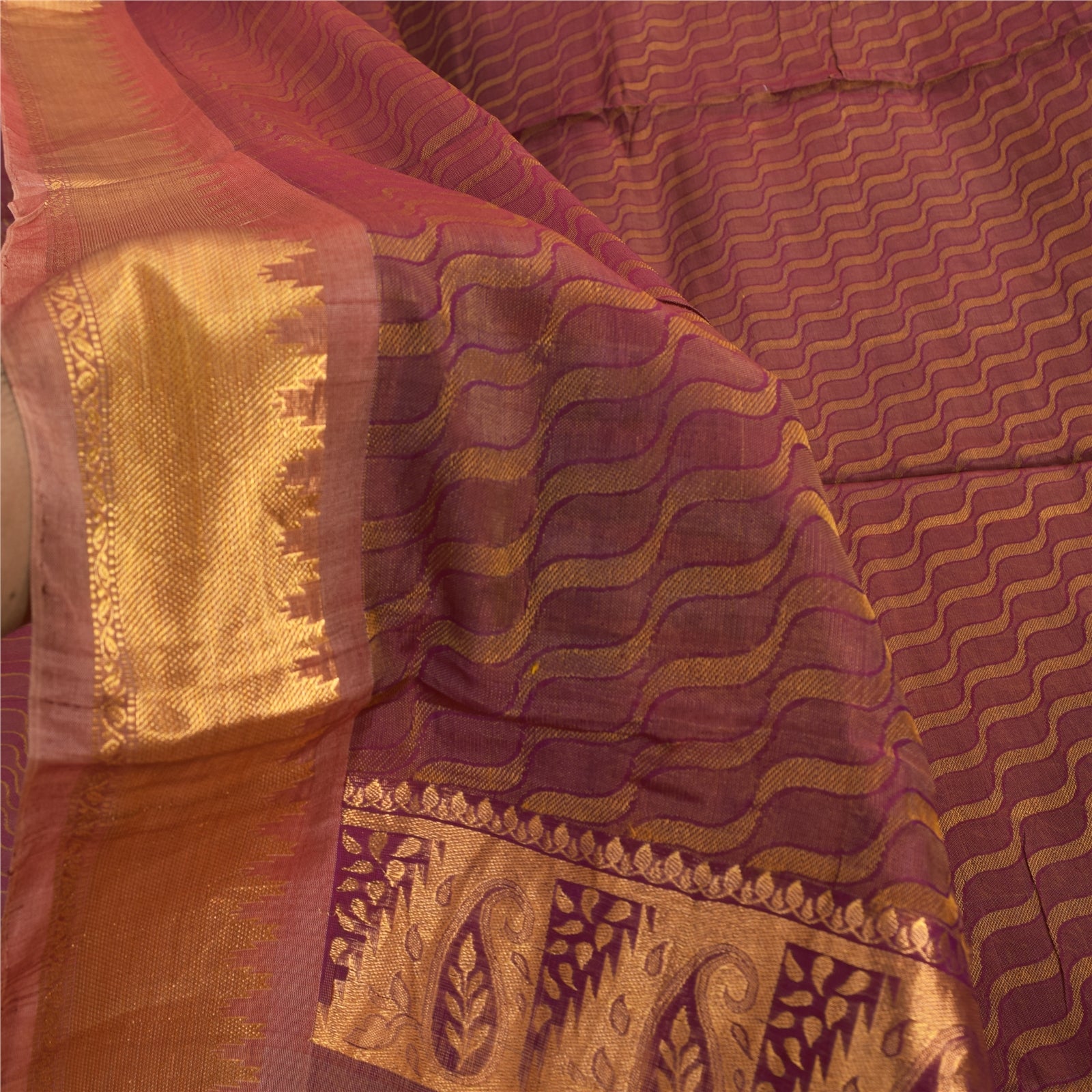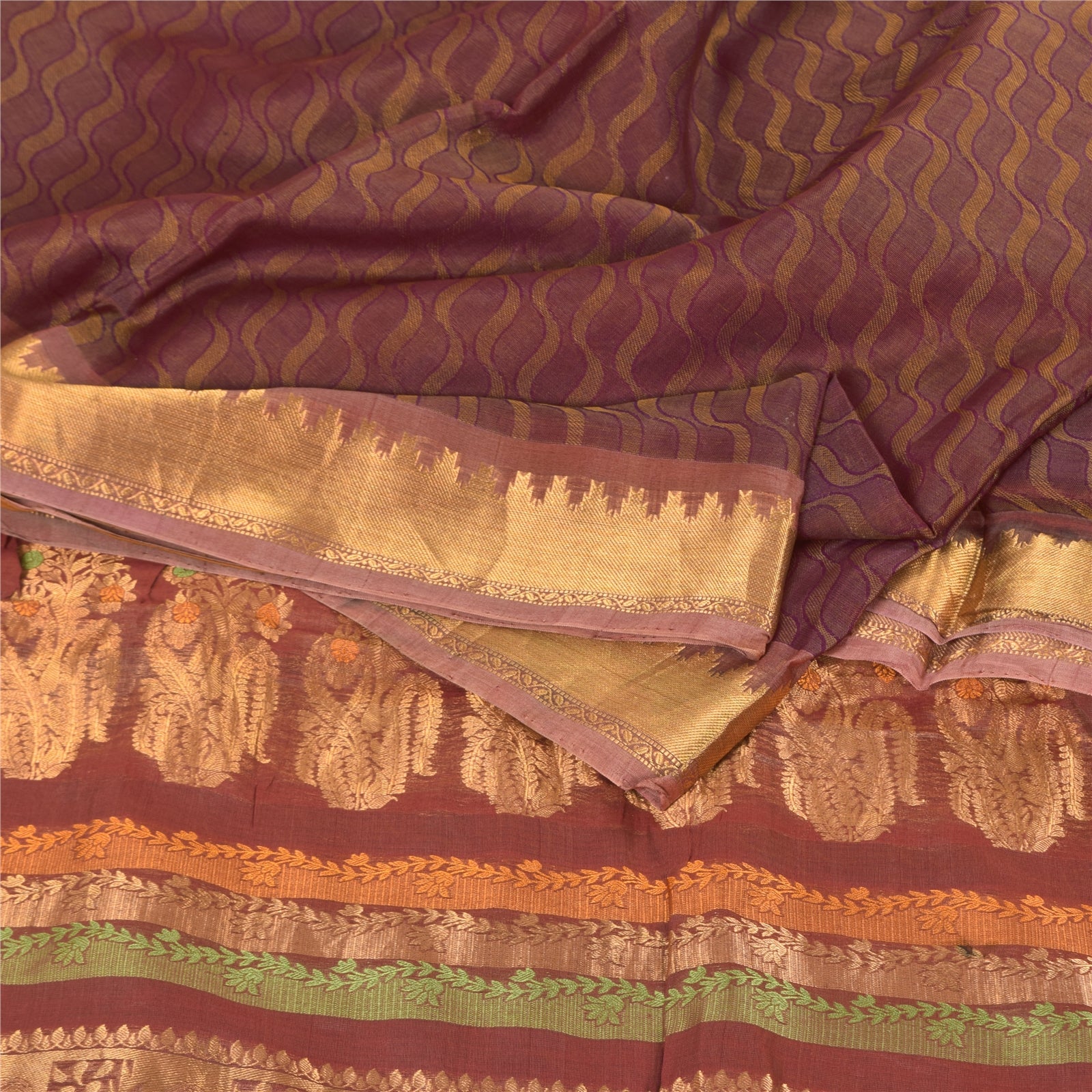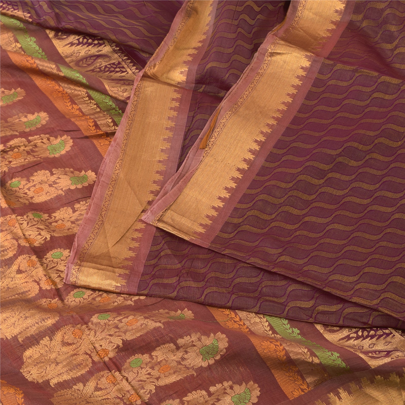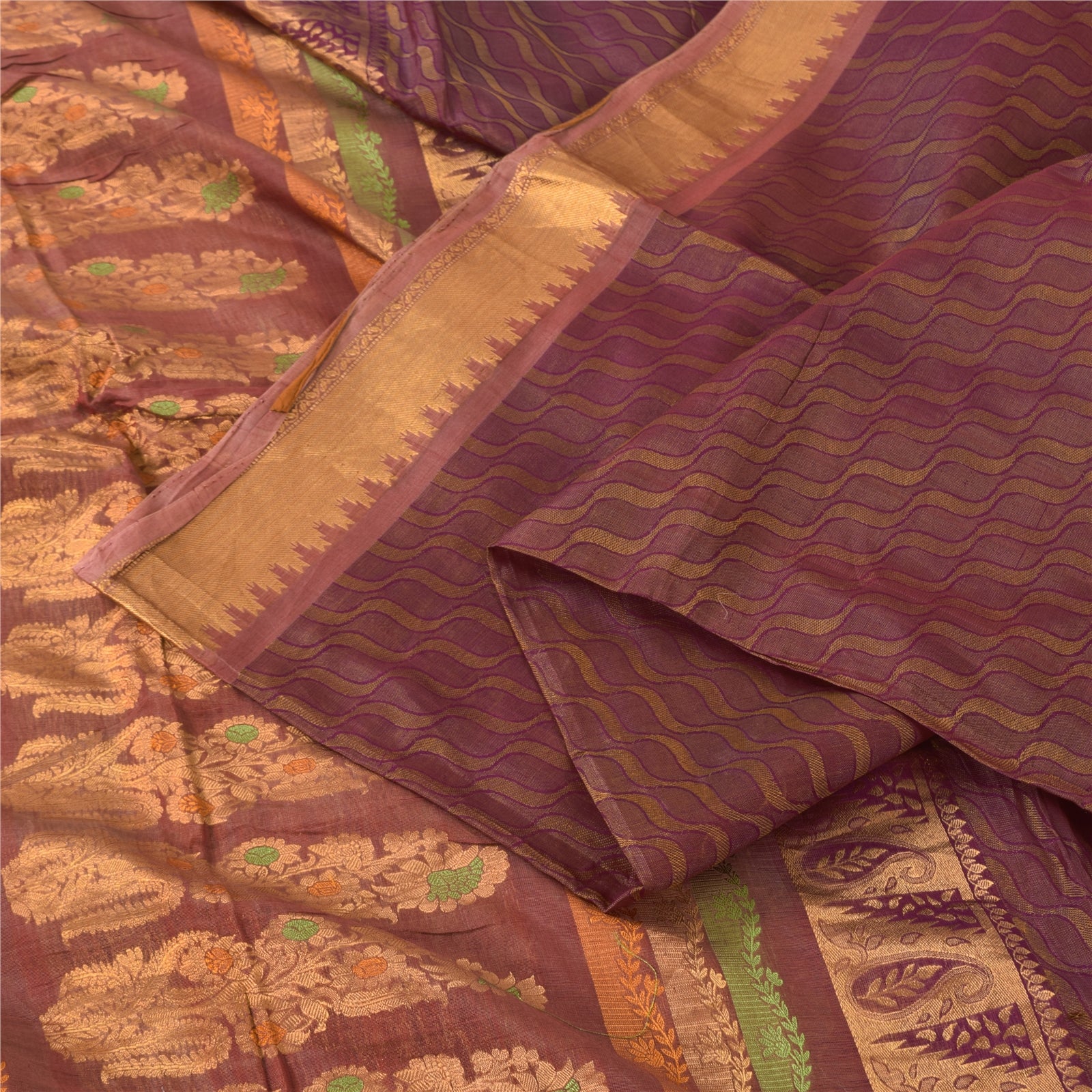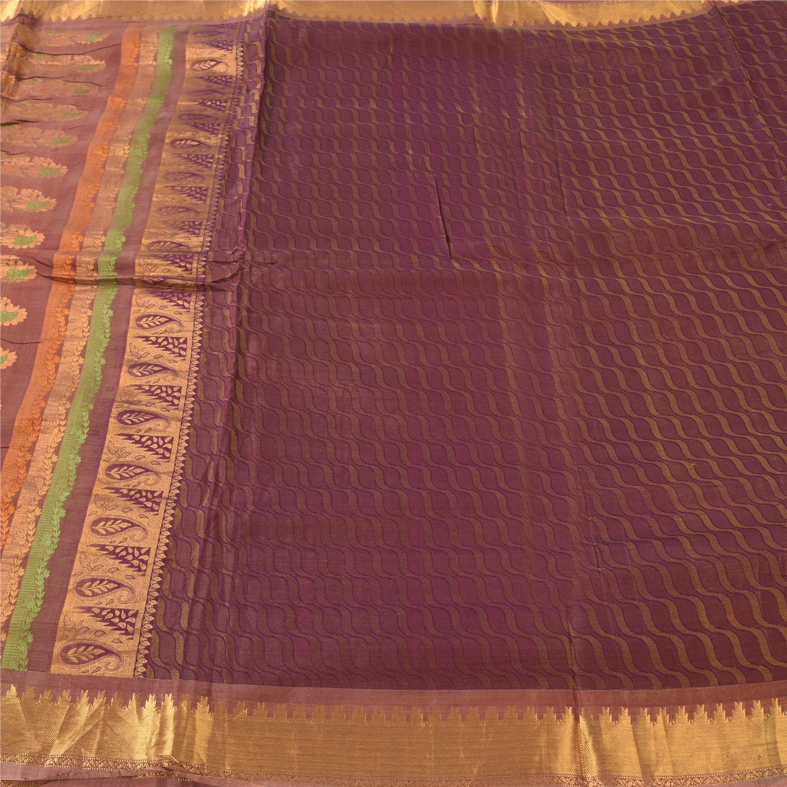 Санскритские винтажные фиолетовые сари из чистого шелка, тканые премиум-сари, 5,5+ ярдов, ремесленная экологичная ткань
