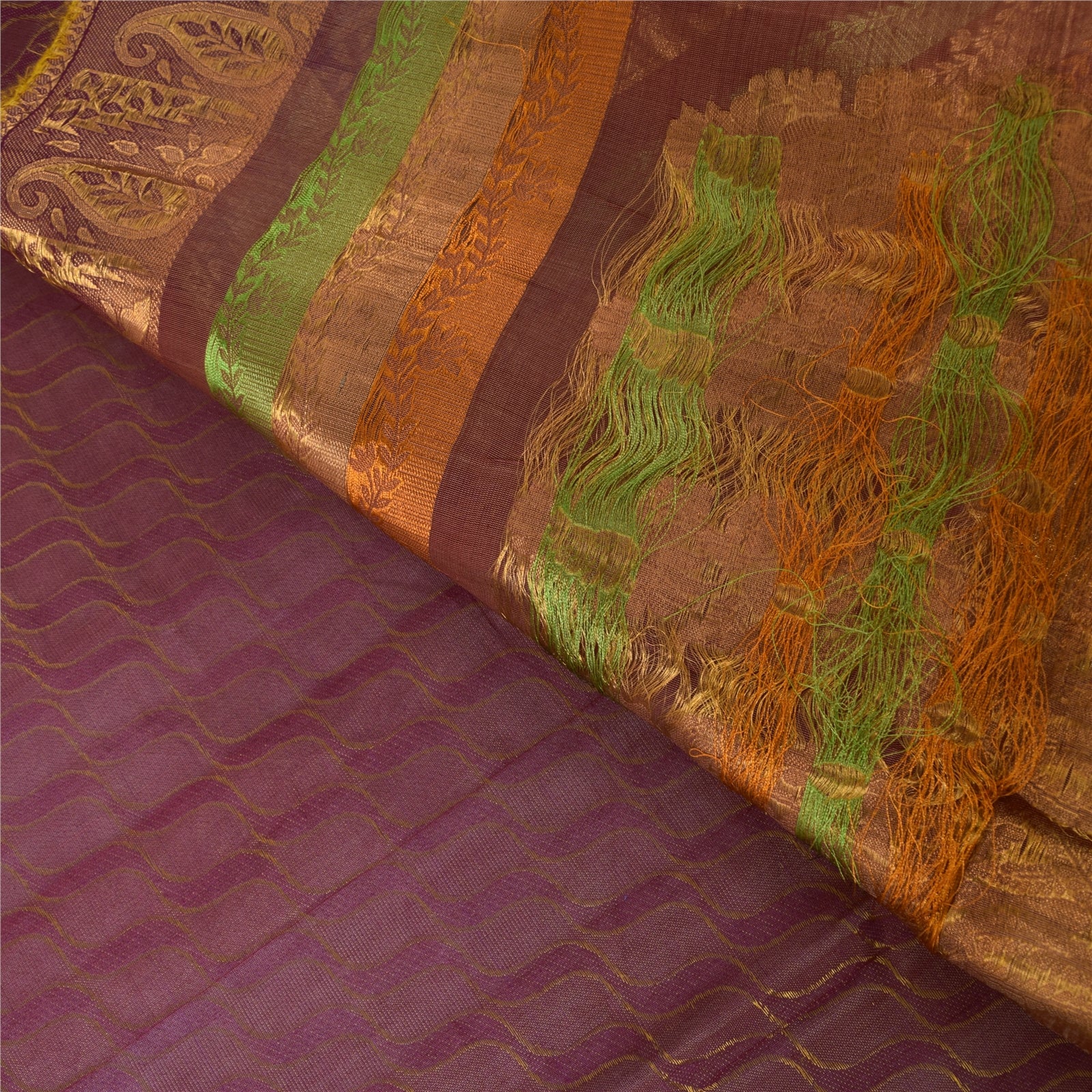 ЦВЕТ ИЛИ ОТТЕНОК ИЗДЕЛИЯ МОЖЕТ БЫТЬ ТЕМНЕЕ ИЛИ СВЕТЛЕЕ, ЧЕМ НА ИЗОБРАЖЕНИИ. Великолепное сари из 100% чистого шелка фиолетового оттенка, сотканное сари/устойчивая ткань. Pallu & Border — цветочный узор, украшенный тканым узором золотисто-зеленого и оранжевого цветов. Вы можете увидеть центральную часть сари с похожим золотым тканым узором с волнистыми линиями. Это уникальное винтажное сари можно использовать для различных идей по рукоделию, например, для создания платья, использования его в качестве пледа, для оформления окон, обивки, столового белья и многого другого. Дайте волю своим творческим сокам и используйте эту декорированную устойчивую ткань в различных модах Накладная: Международные покупатели, обратите внимание: импортные пошлины, налоги и сборы не включены в цену товара или стоимость почтовых расходов. Эти сборы являются ответственностью покупателя. Пожалуйста, свяжитесь с таможней вашей страны, чтобы определить, какими будут эти дополнительные расходы, до торгов или покупки. Покупатель будет платить таможенную пошлину/налог. Они рассчитываются и взимаются по-разному в каждой стране. Как продавец, я не имею никакого контроля над ними. НДС или налог с продаж рассчитывается платформой во время оформления заказа. Таможенный сбор оплачивается во время доставки. Артикул: PS-64111