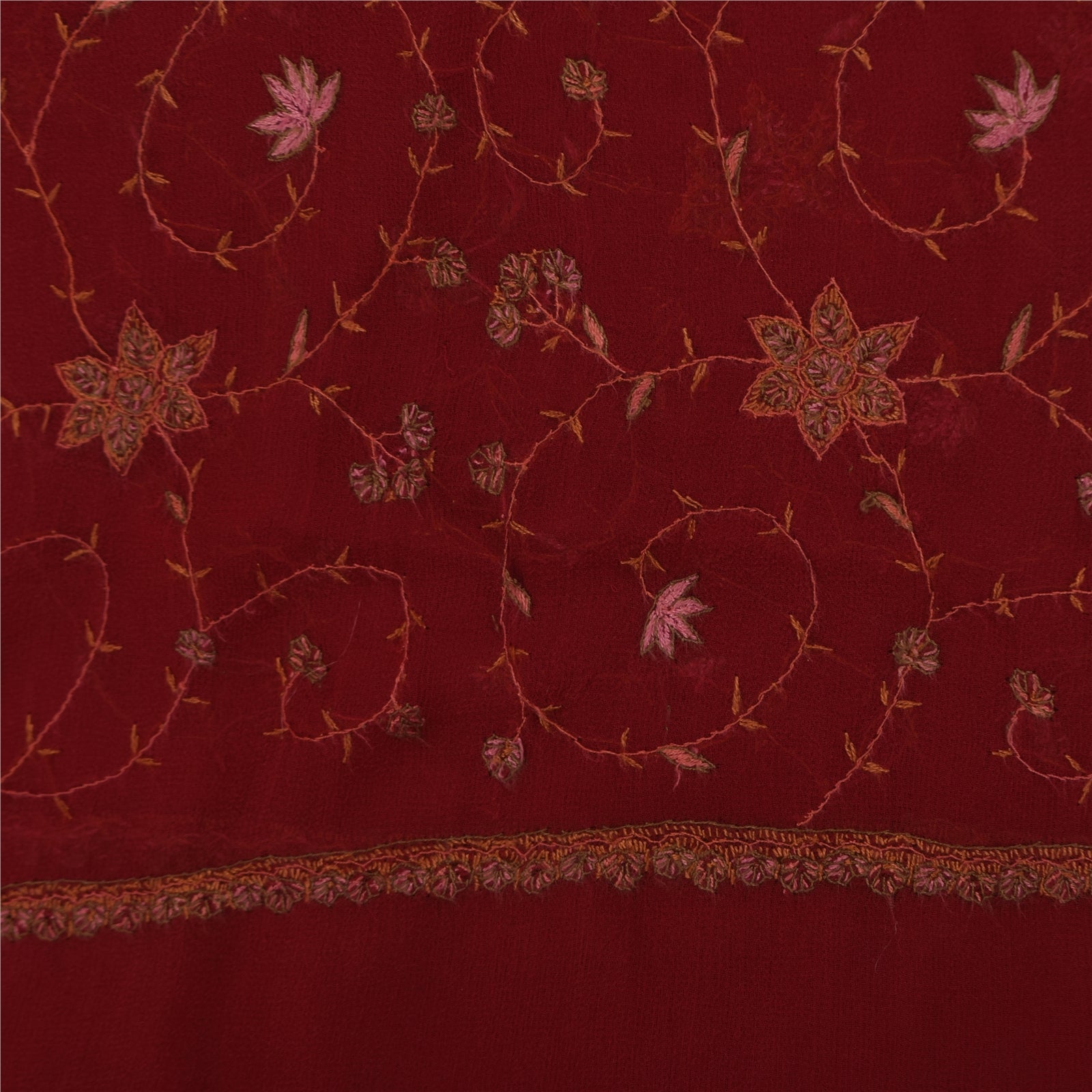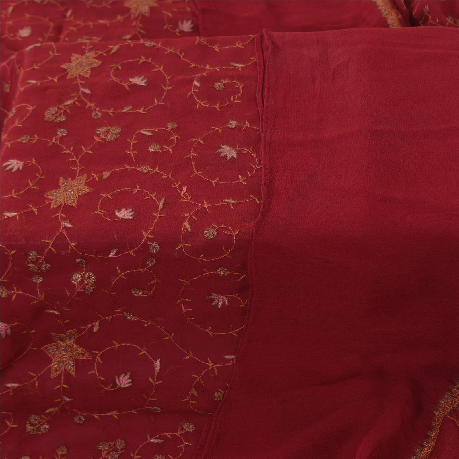 Sanskriti Vintage Red Dupatta Long Stole Pure Georgette Embroidered Premium veil