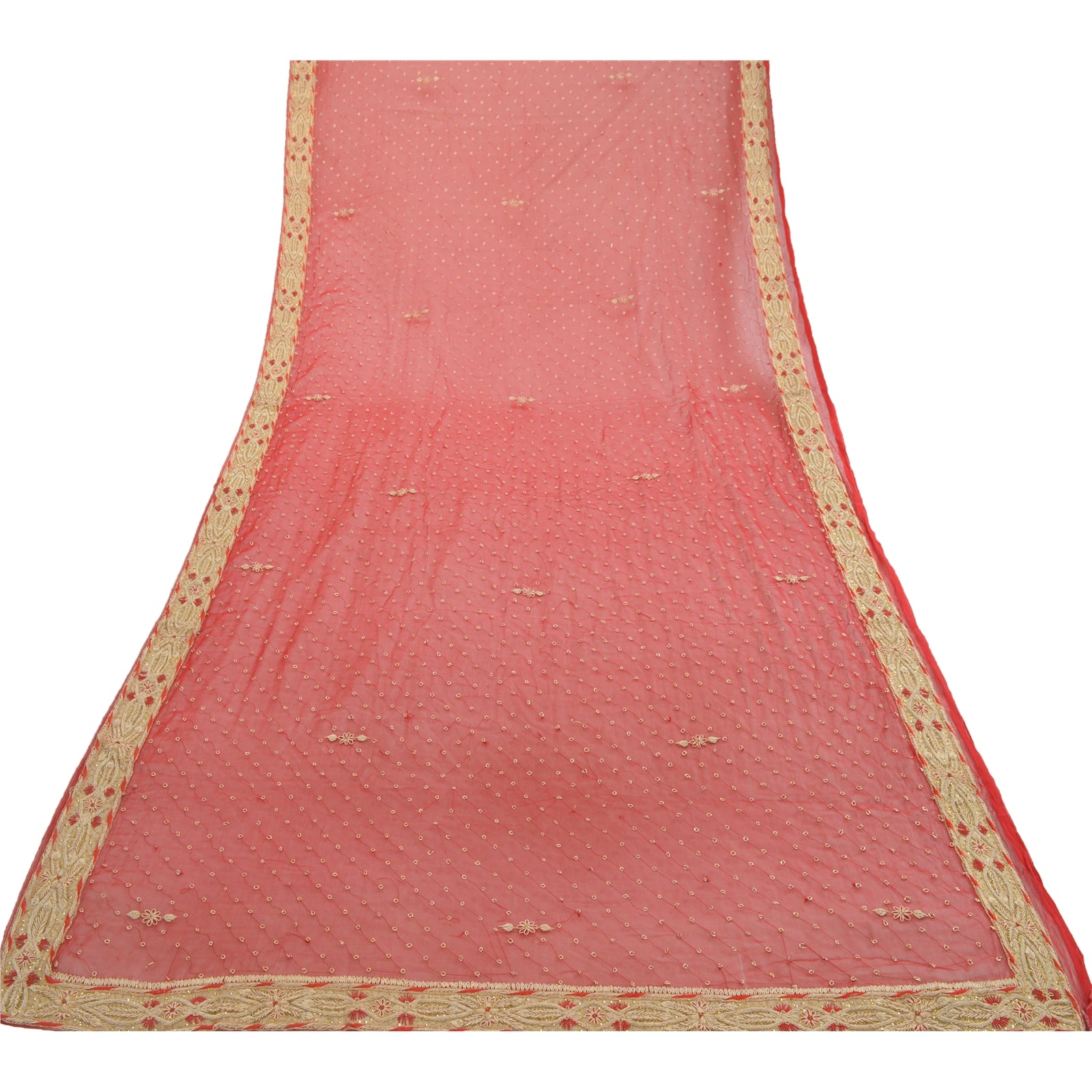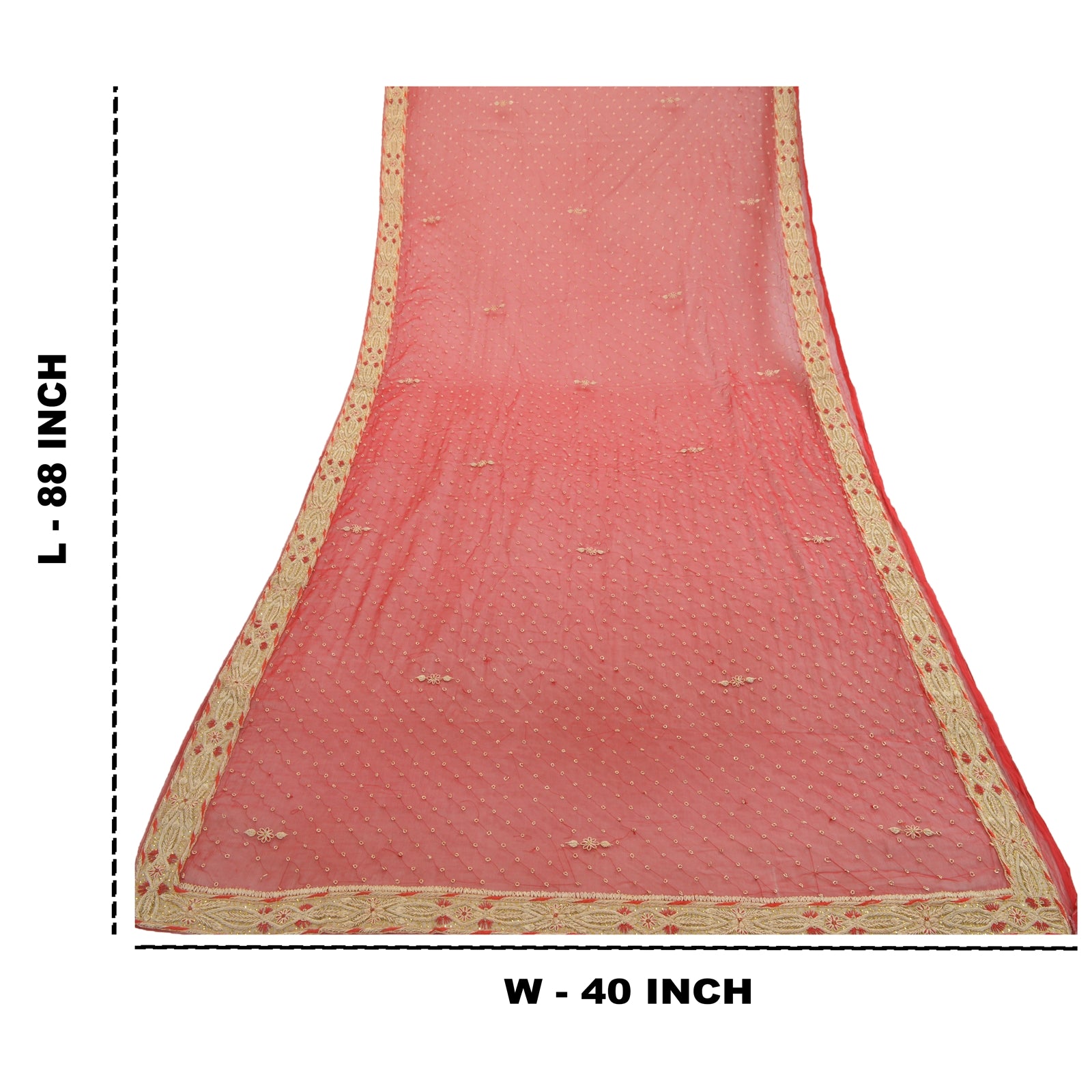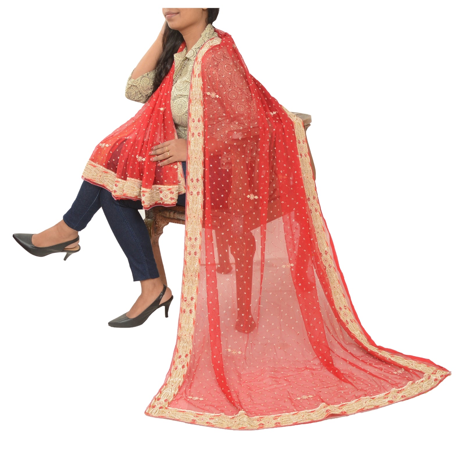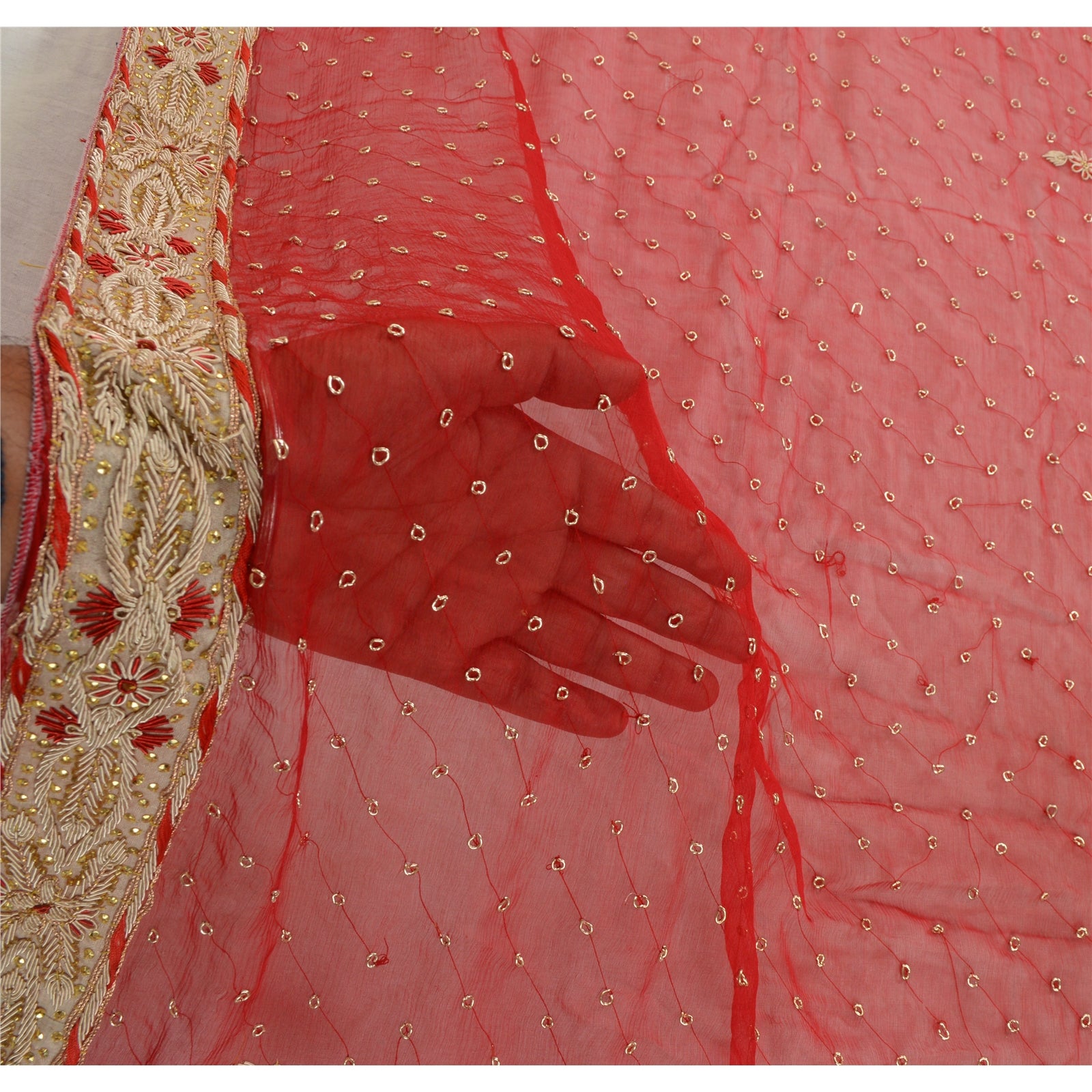 'THE ITEM COLOR OR SHADE MAY BE DARKER OR LIGHTER THAN THE PICTURE.' Fabulous hand embroidered Dupatta/stole in red color. There is so much antique work done in this one, it is fully covered with zardozi work. Base fabric is pure chiffon silk. Borders of dupatta has floral design with pure metallic golden/red zardozi, copper strings, gold sequins work on golden fabric patch work further beautify the design. Small zardozi work in center part of dupatta. A very traditional dupatta with beautiful craftsmanship which I am sure you will truly appreciate. The quality of zari work is amazing, its a metallic zari. Some zari work gives an antique look. 'International buyers please note: Import duties, taxes, and charges are not included in the item price or postage cost. These charges are the buyer's responsibility. Please check with your country's customs office to determine what these additional costs will be prior to bidding or buying. Buyer will pay custom duty/tax. It is calculated and charged differently by every country. As a seller I do not have any control over it. VAT or sales tax is calculated by the platform at the time of checkout. Customs charge is payable at the time of delivery.'