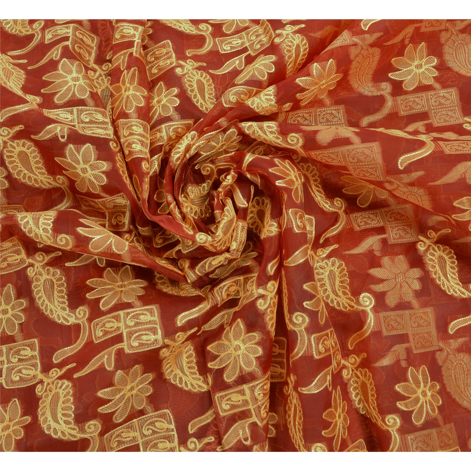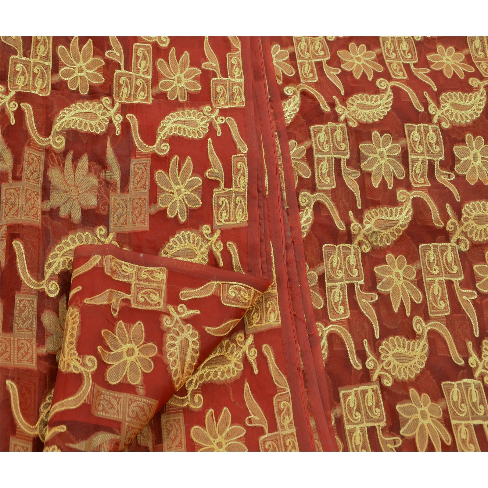 Sanskriti Vintage Red Sarees Art Silk Hand Embroidered Woven Craft Fabric Sari