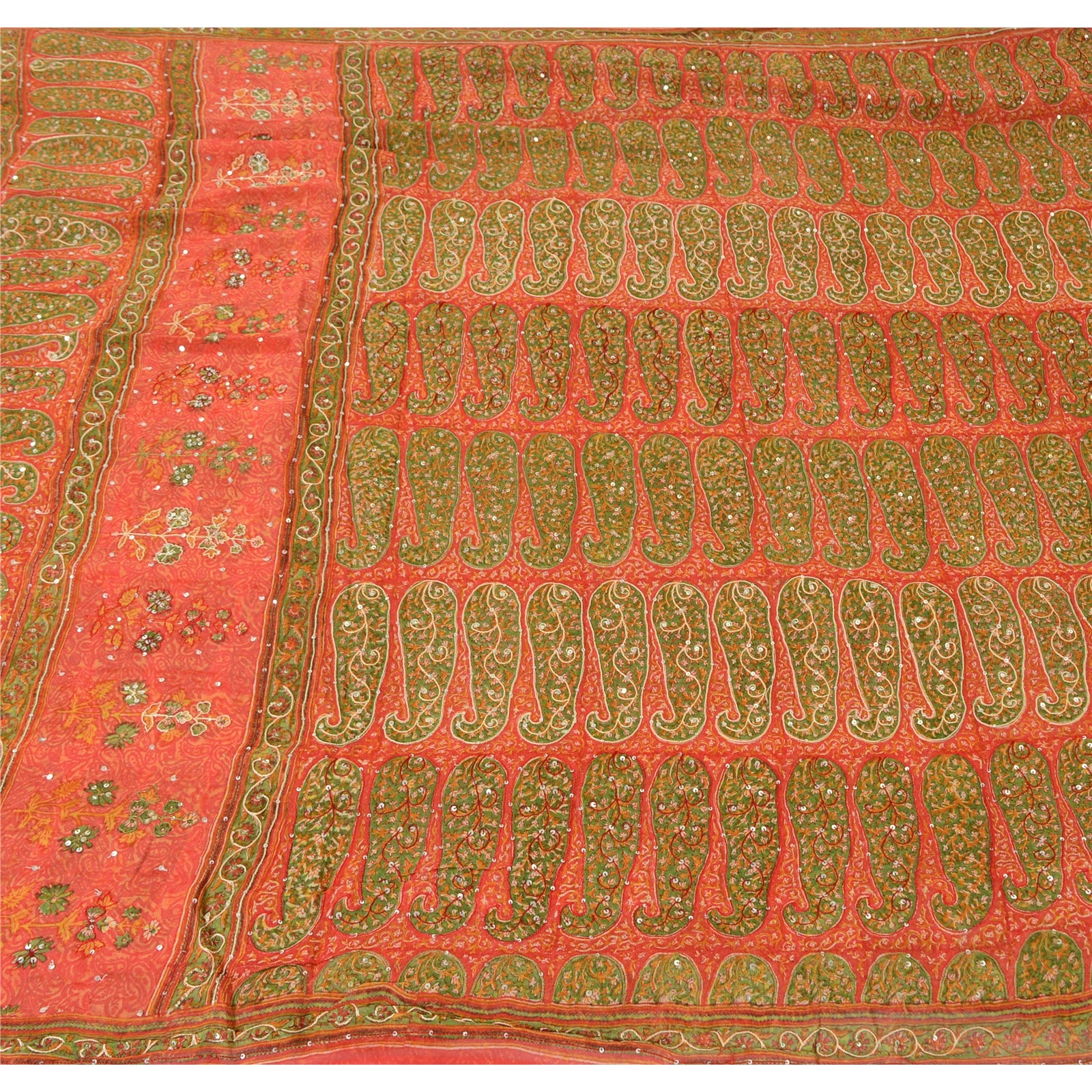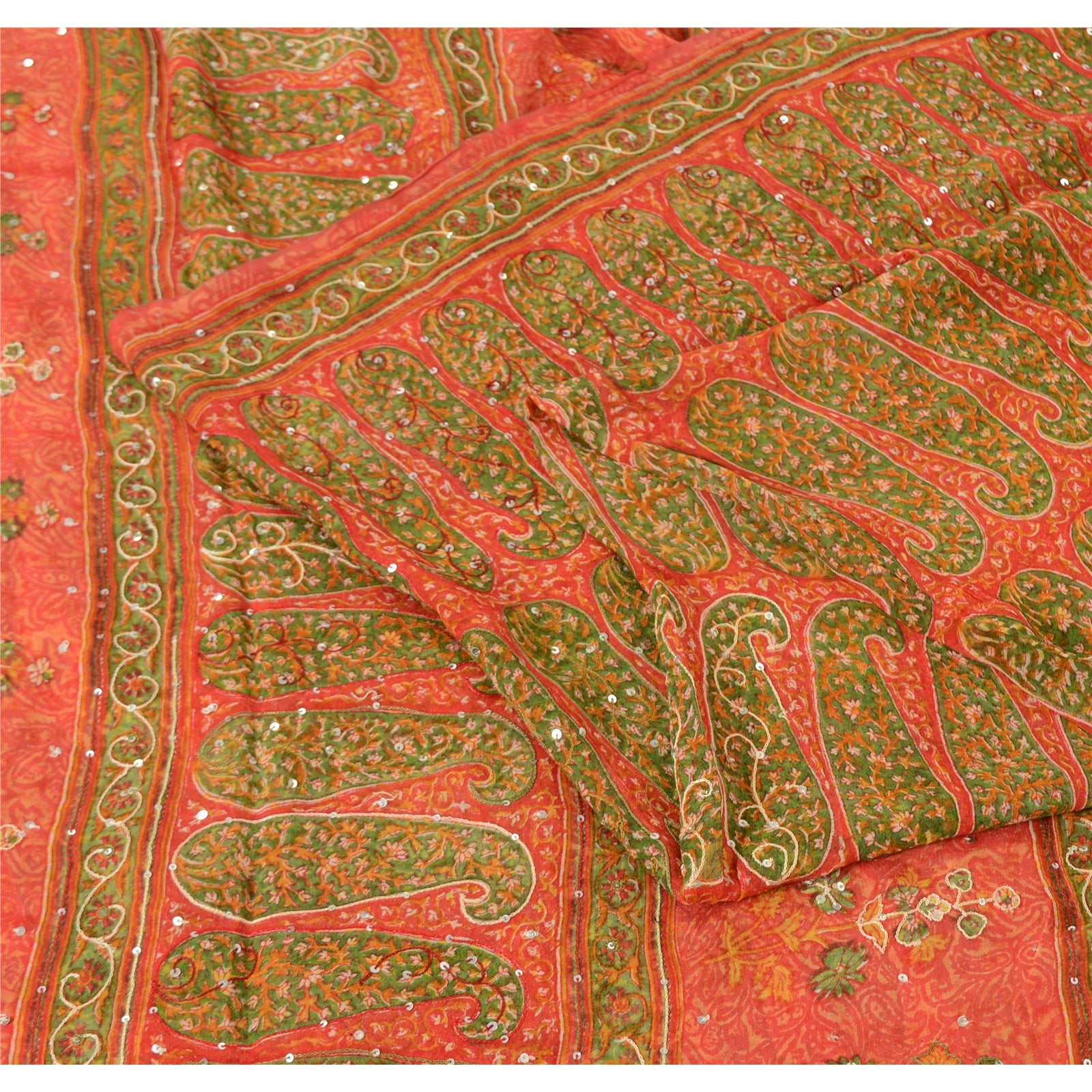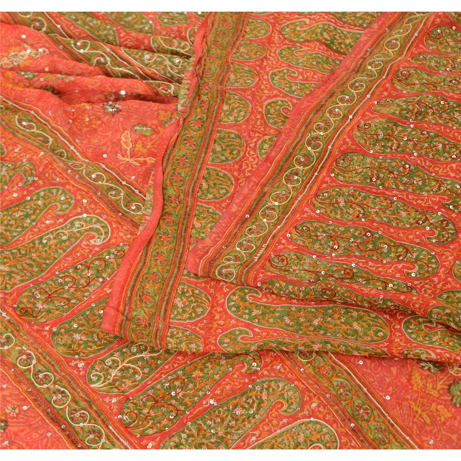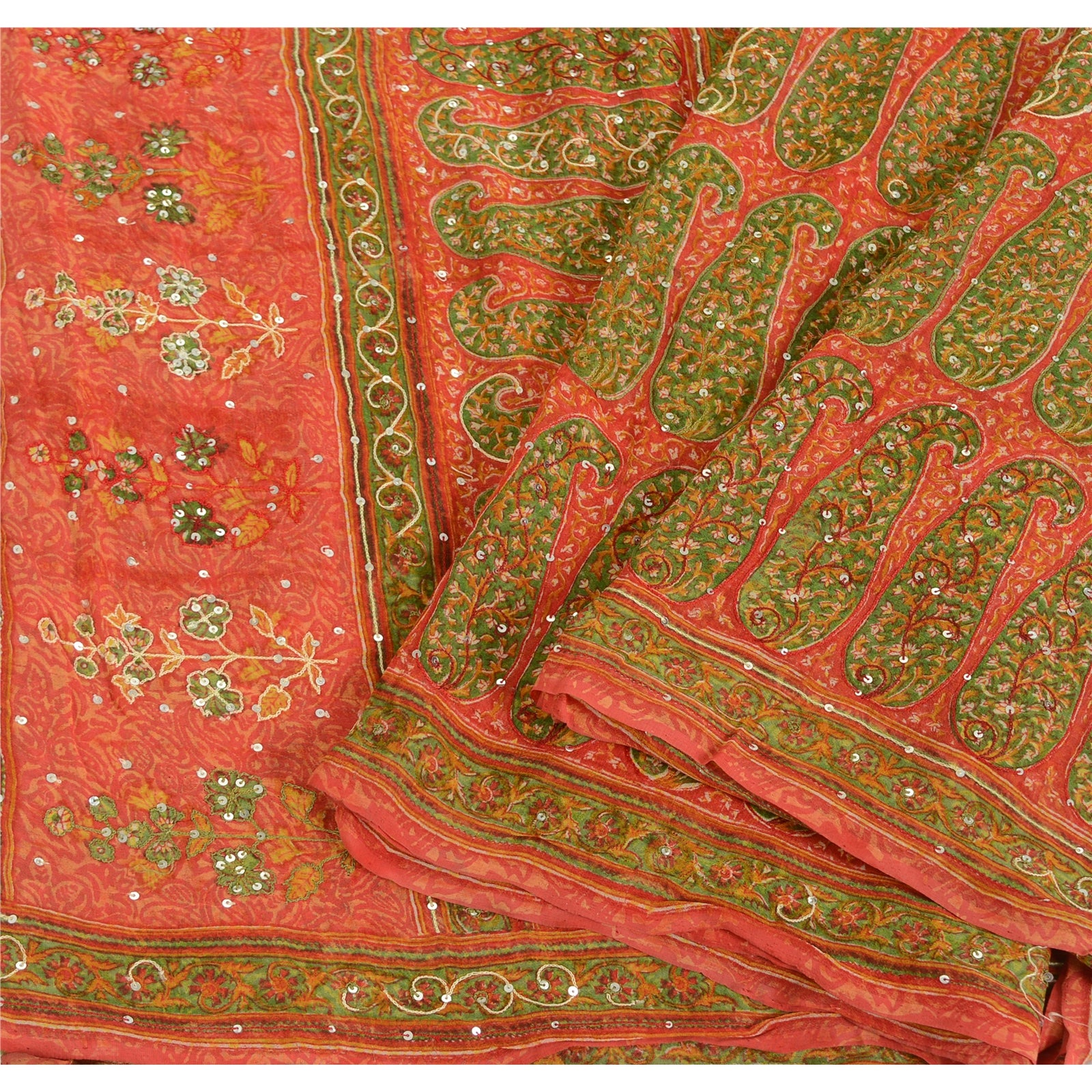 THE ITEM COLOR OR SHADE MAY BE DARKER OR LIGHTER THAN THE PICTURE.' • Beautiful red colored hand embroidered printed pure georgette silk sari • Pallu & Border features floral design embellished with green/cream color thread work and silvers sequins work. • There are floral motifs with similar work in center part of sari. Sparkling silver sequins work with floral design on red color base fabric is really enhancing the beauty of the saree. This unique vintage saree can be used for various crafting ideas even if you don't want to use it as a sari. Design a dress, use it as a throw, as window dressing, upholstery, sarongs, table linen and much more. Let your creative juices flow and use this decorated fabric in multiple fashion. Shipping note: International buyers please note: Import duties, taxes, and charges are not included in the item price or postage cost. These charges are the buyer's responsibility. Please check with your country's customs office to determine what these additional costs will be prior to bidding or buying. Buyer will pay custom duty/tax. It is calculated and charged differently by every country. As a seller I do not have any control over it. VAT or sales tax is calculated by the platform at the time of checkout. Customs charge is payable at the time of delivery.