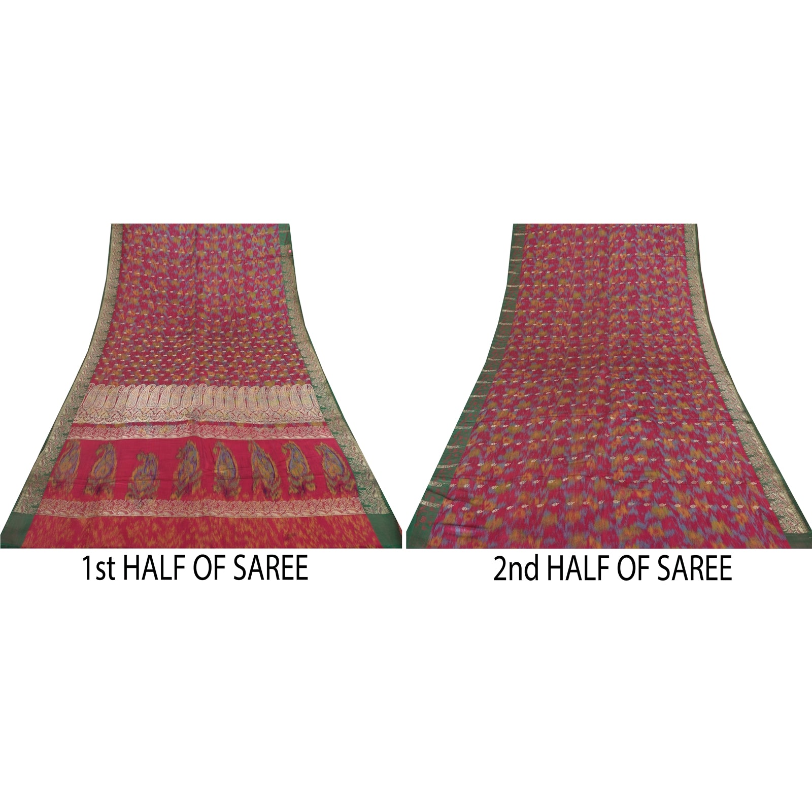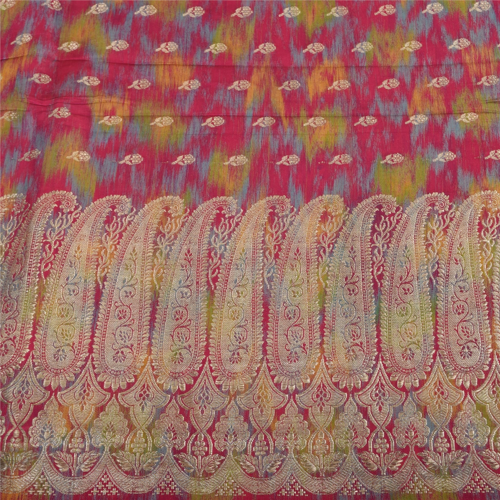 Sanskriti Vintage Red Sarees Pure Satin Silk Banarasi Brocade Craft Fabric Sari