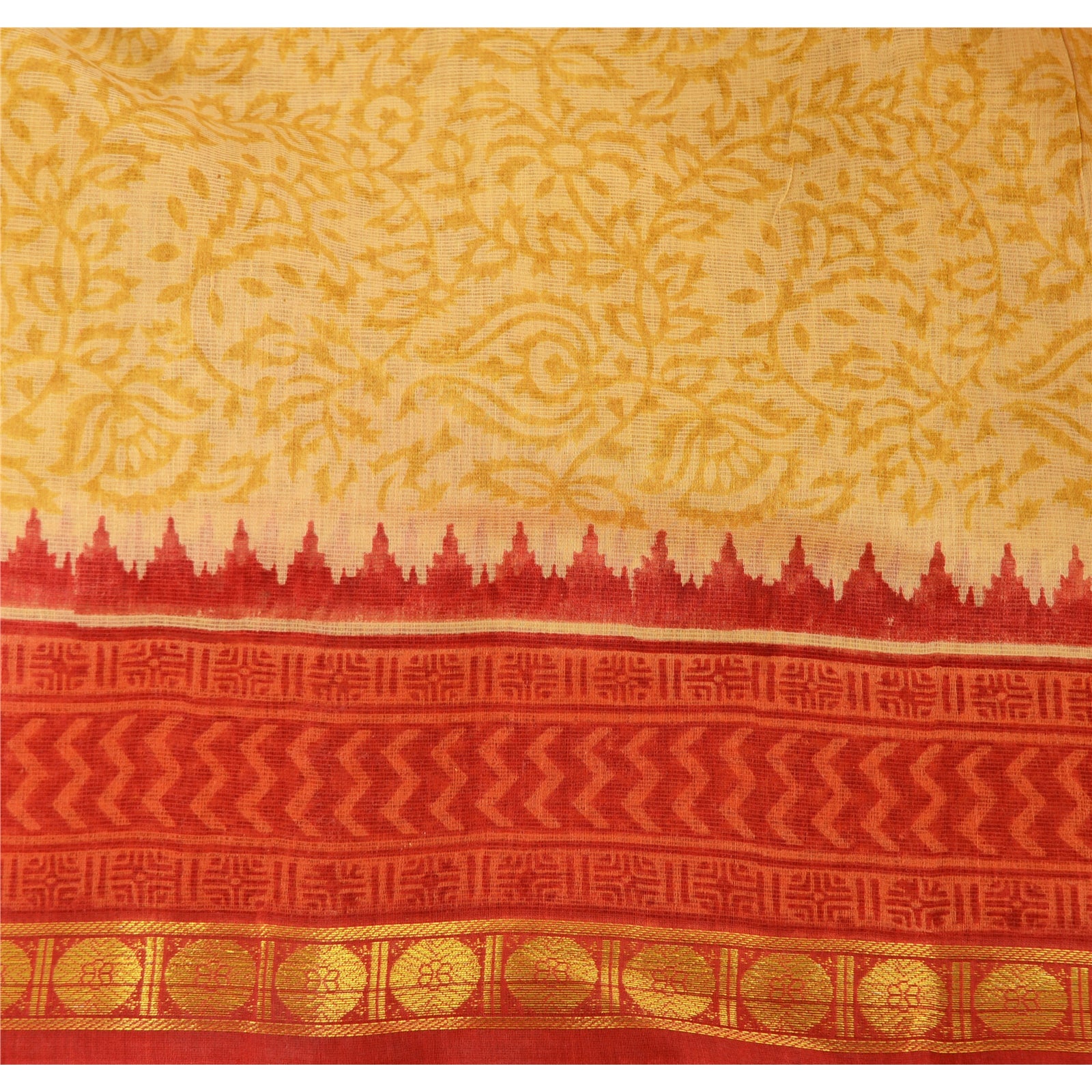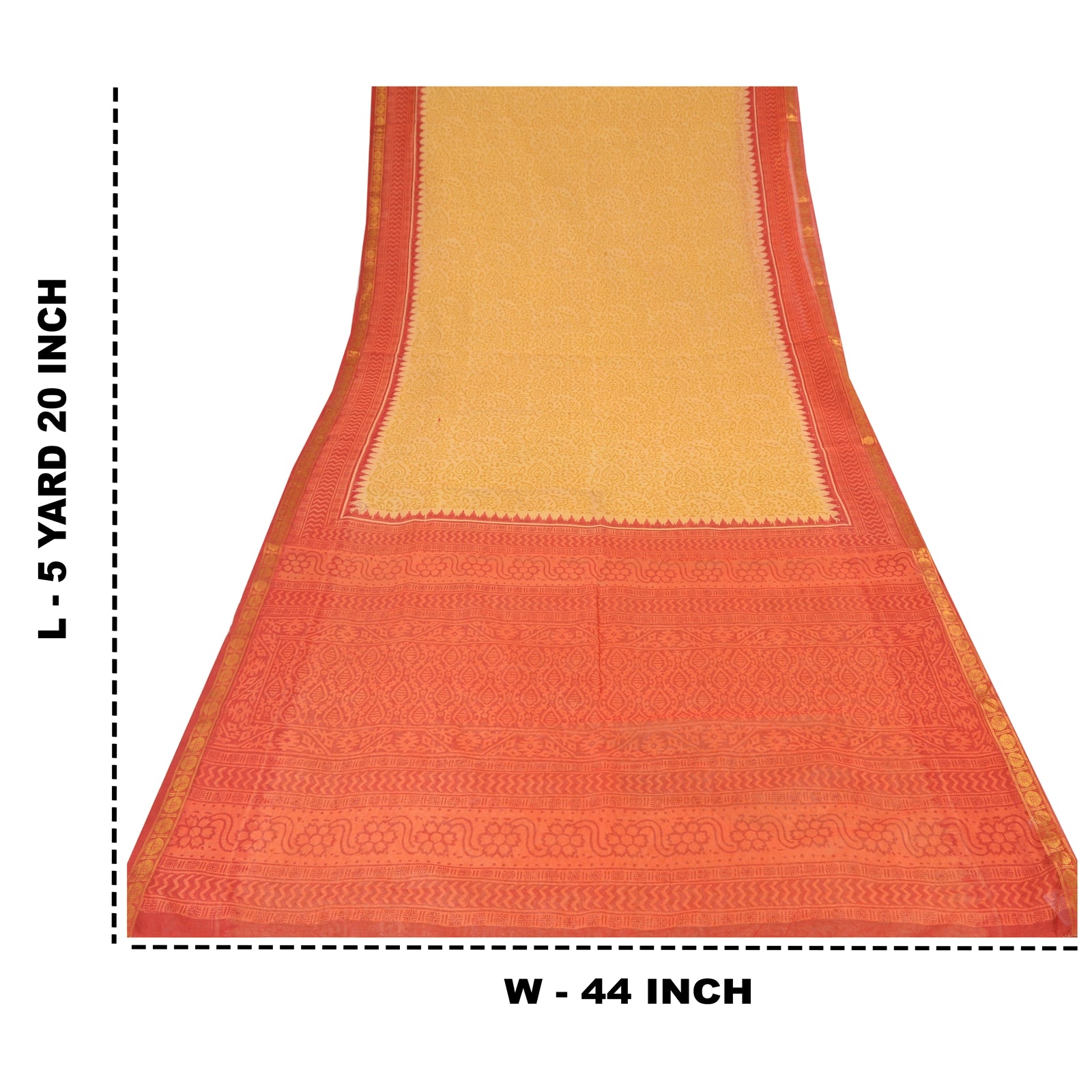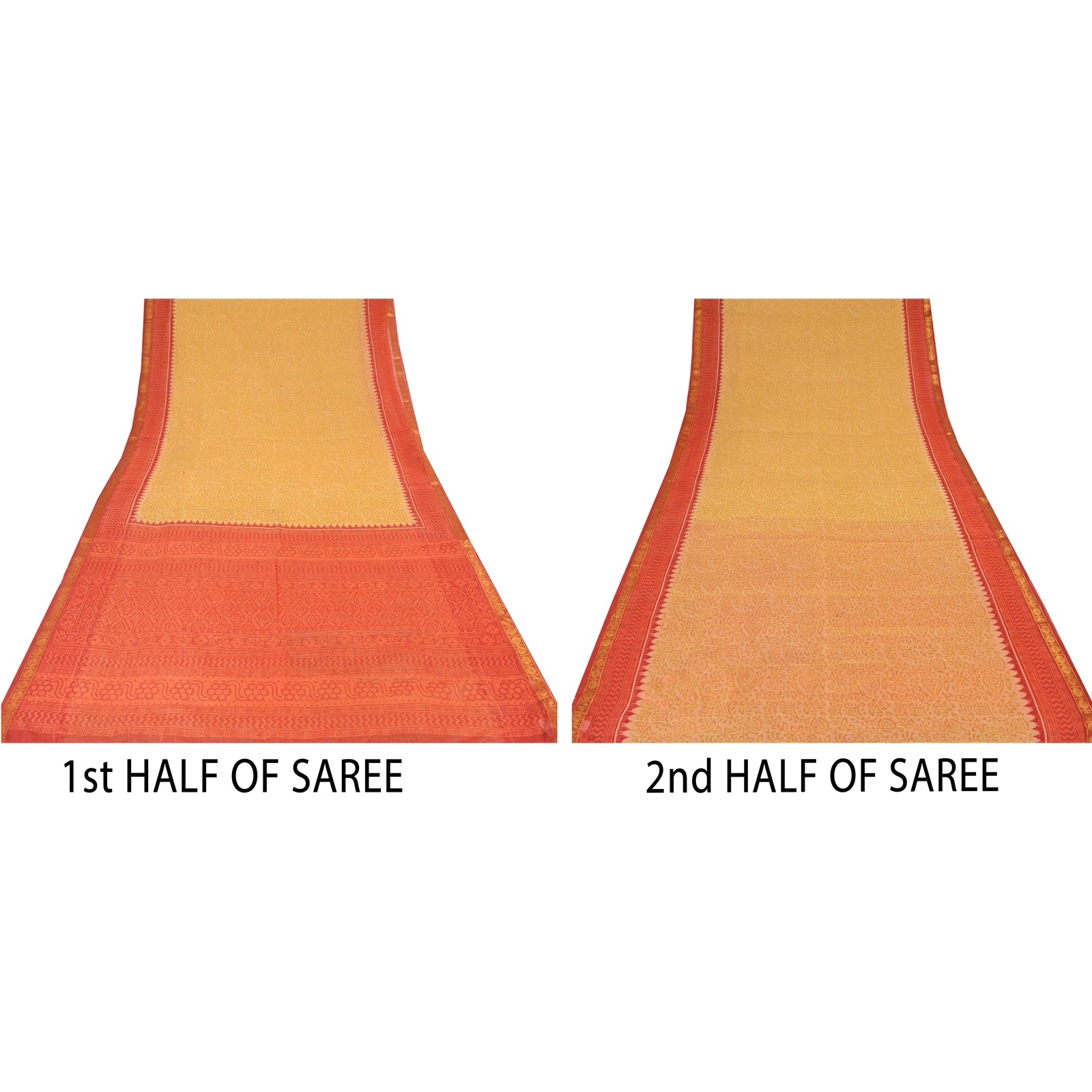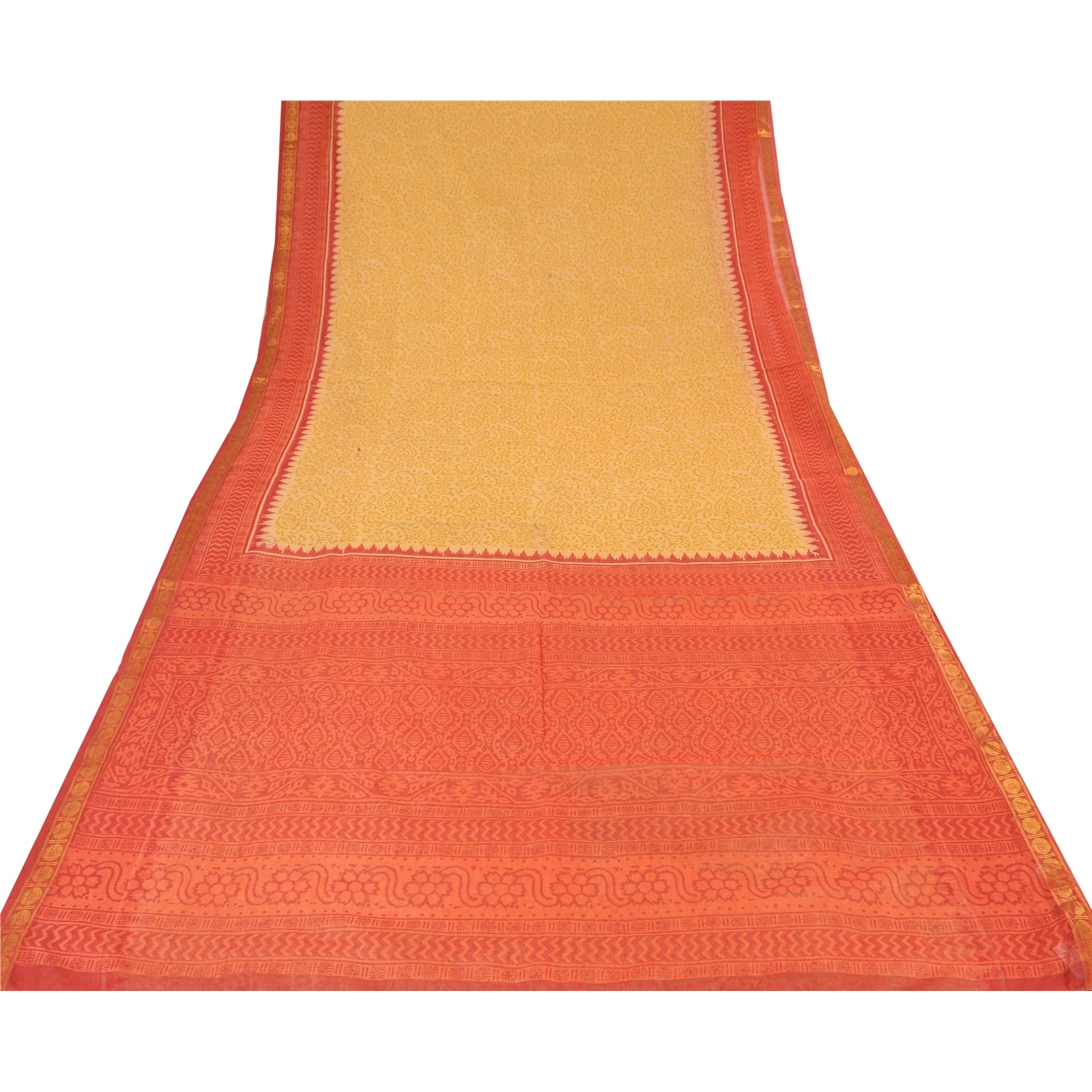 Sanskriti Vintage Red/Yellow Sarees Cotton Silk Block Printed Ethnic Sari Fabric