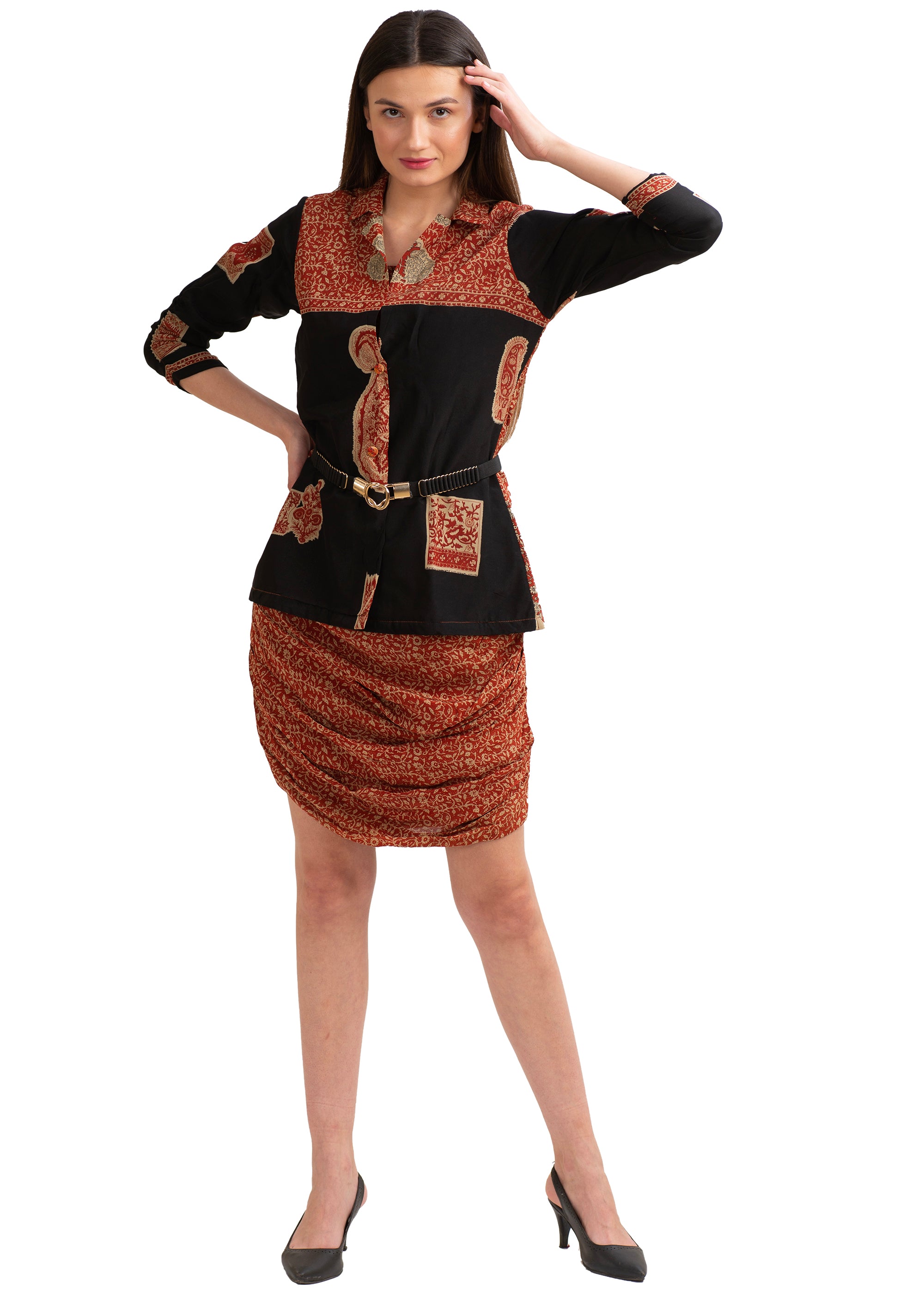 Этот комплект из юбки и блейзера, который мчится вперед, представляет собой шикарный и модный ансамбль, состоящий из юбки с привлекательным и женственным рюшевым дизайном и подходящего блейзера из роскошной и легкой шелковой устойчивой ткани. Шикарная, но удобная юбка создает изящный силуэт, а структурированный блейзер добавляет нотку утонченности. Комплект идеально подходит для особых случаев или для изысканного и модного рабочего наряда. Дышащая и мягкая шелковая устойчивая ткань обеспечивает комфорт и добавляет нотку роскоши в образ.