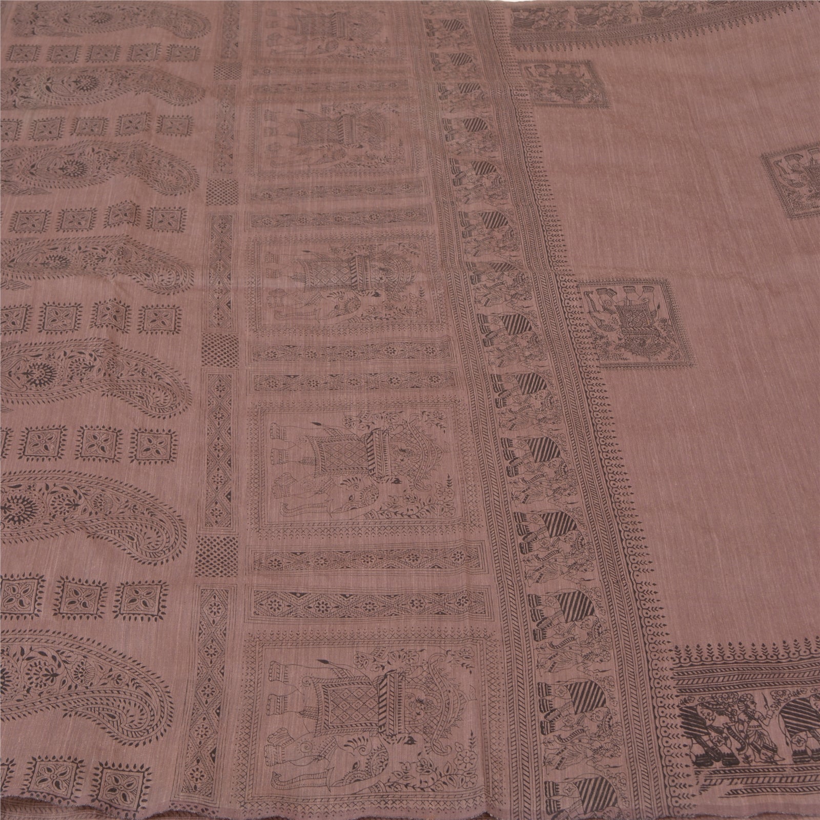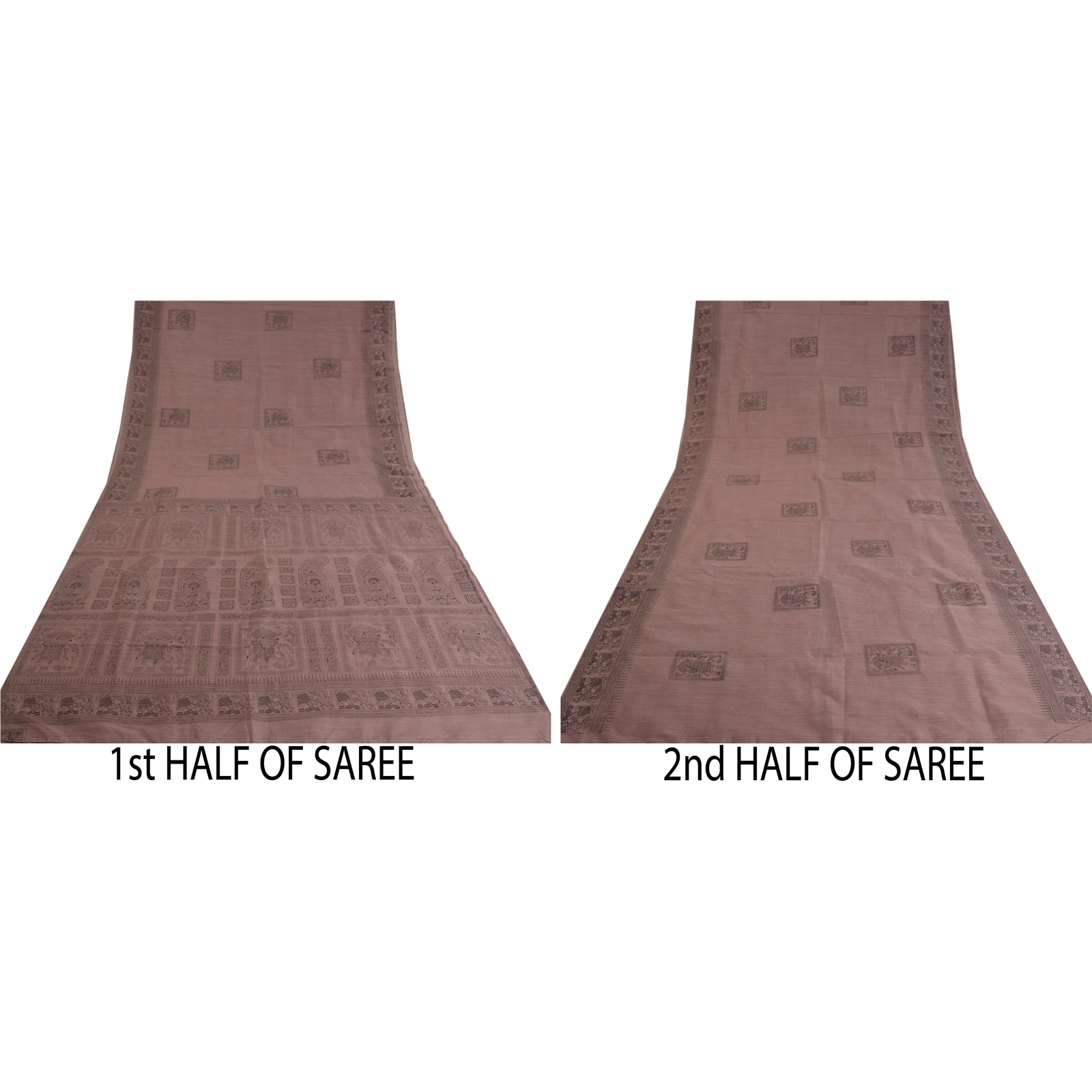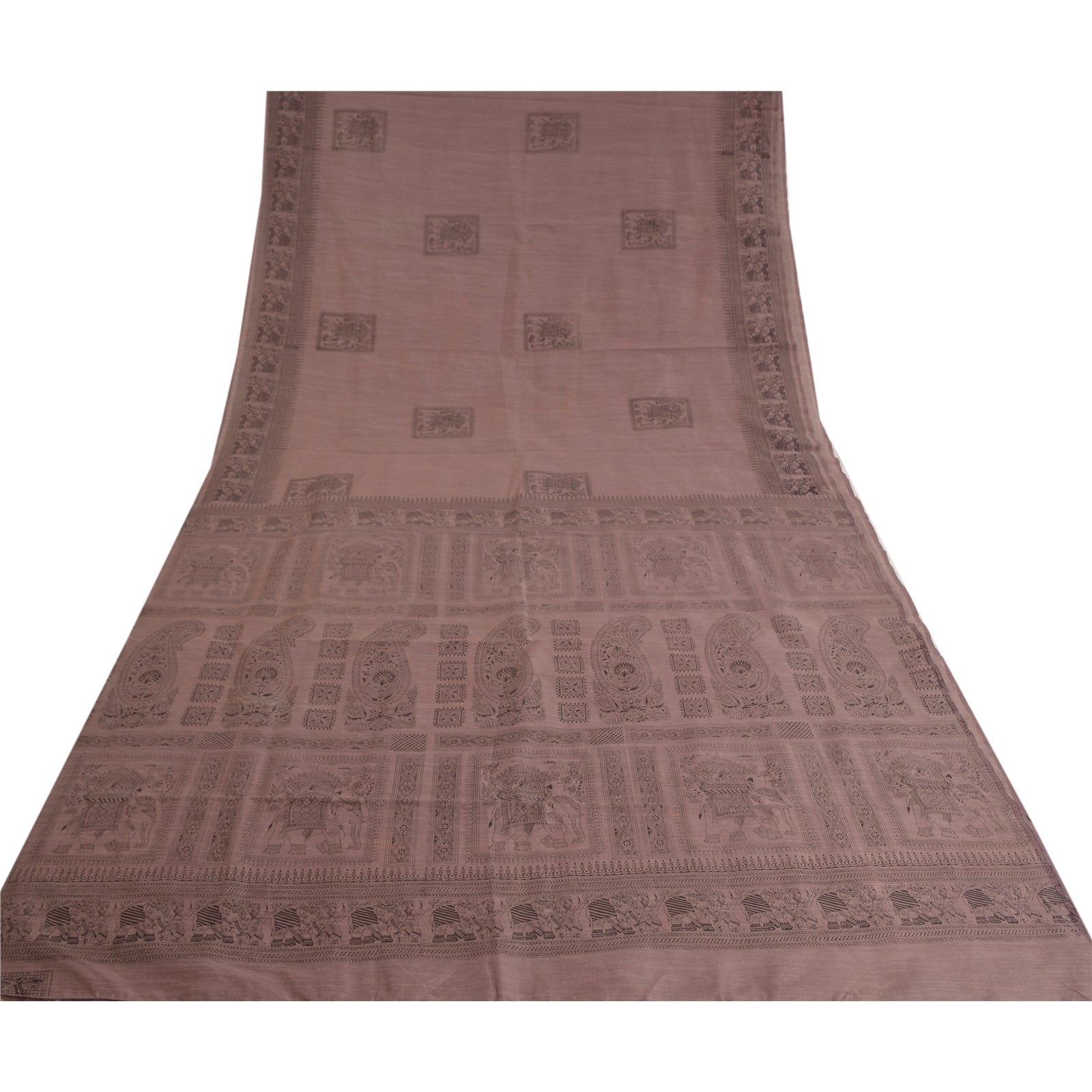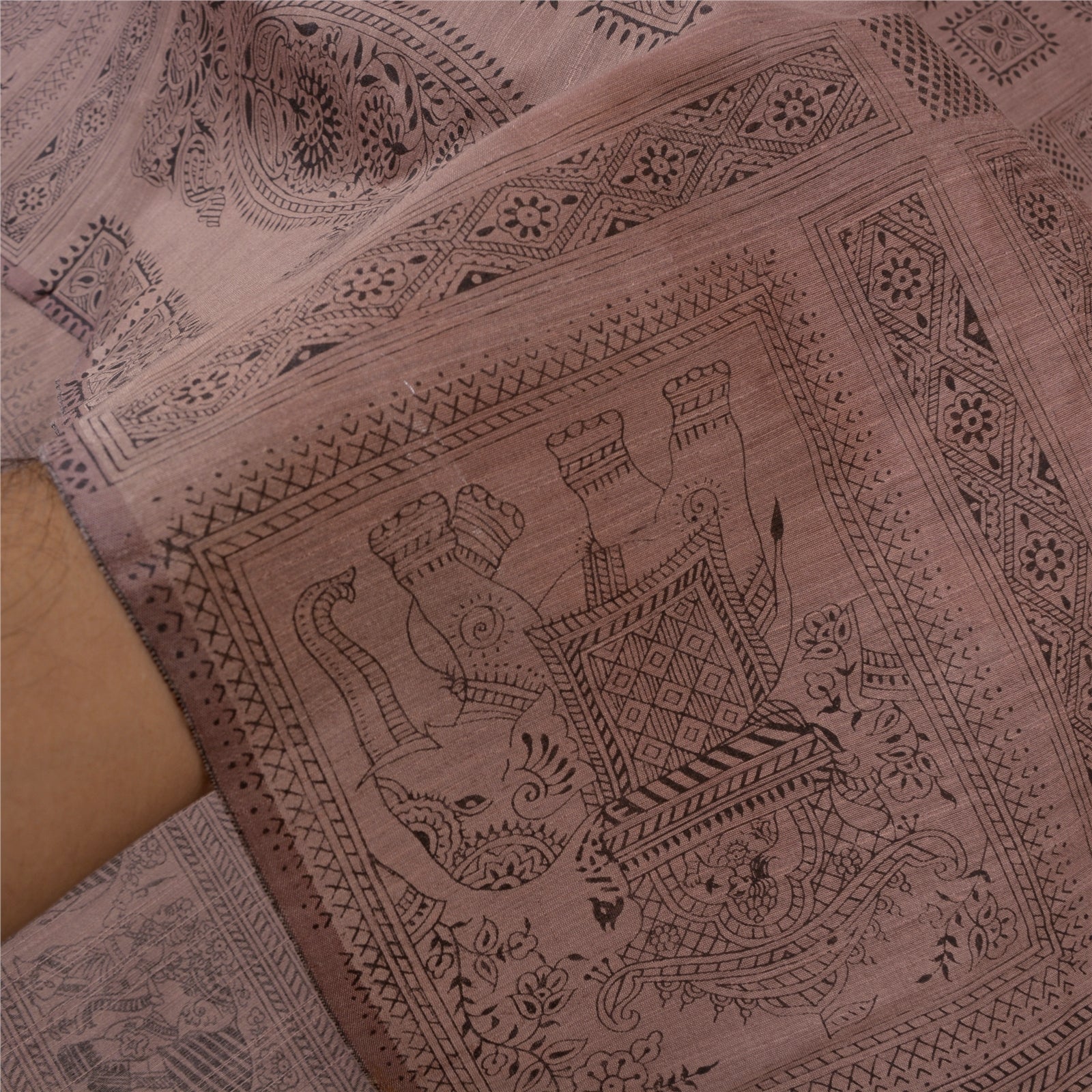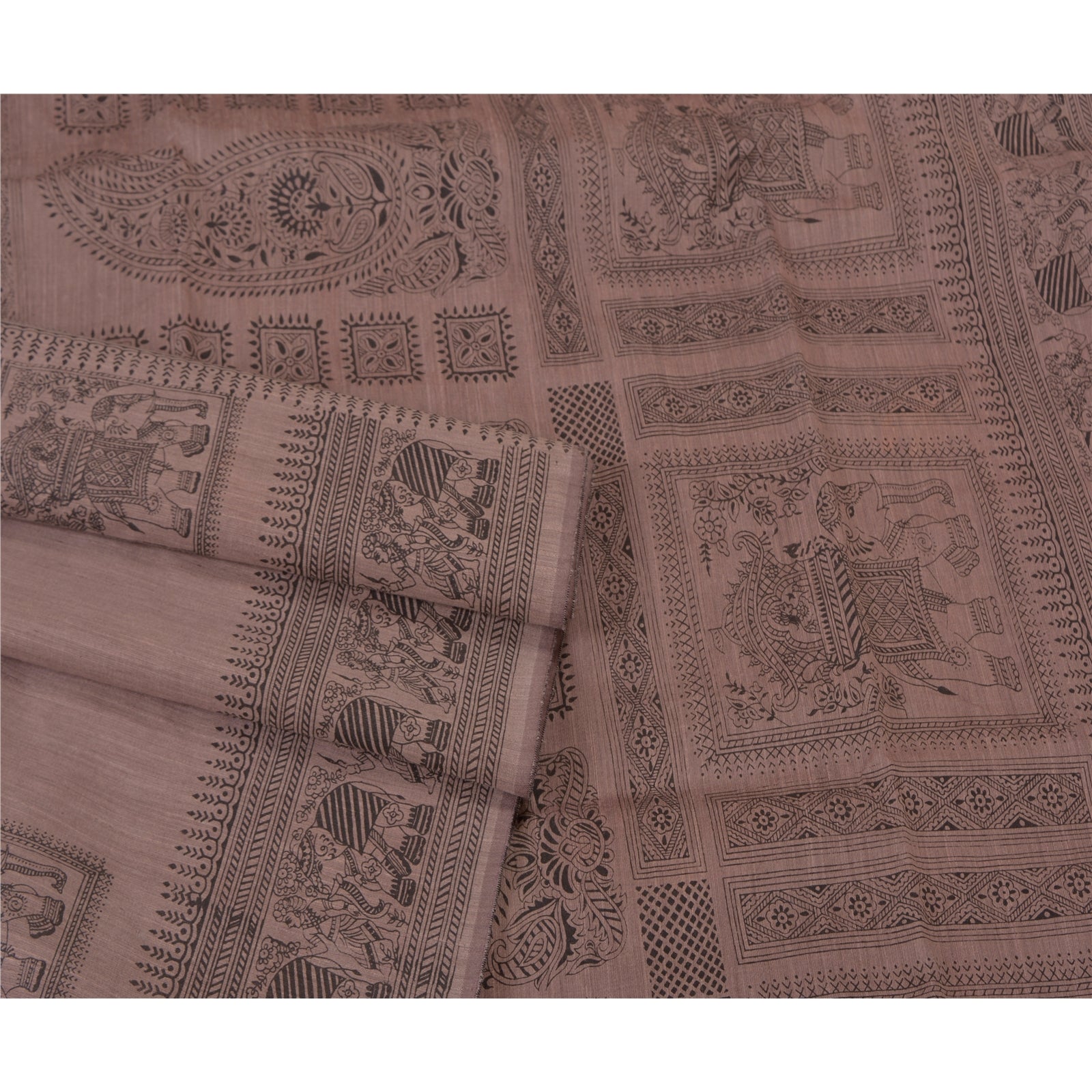 Санскритские винтажные ржаво-фиолетовые сари с рисунком из шелка и анималистичным принтом, устойчивая ткань