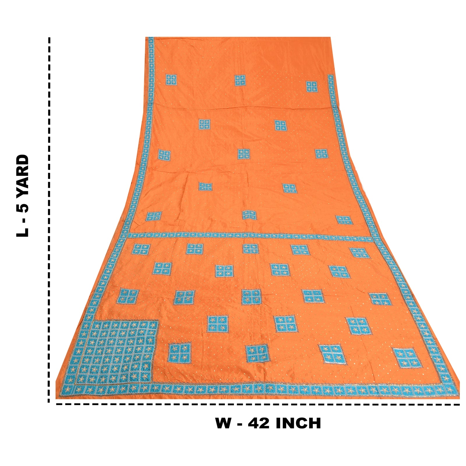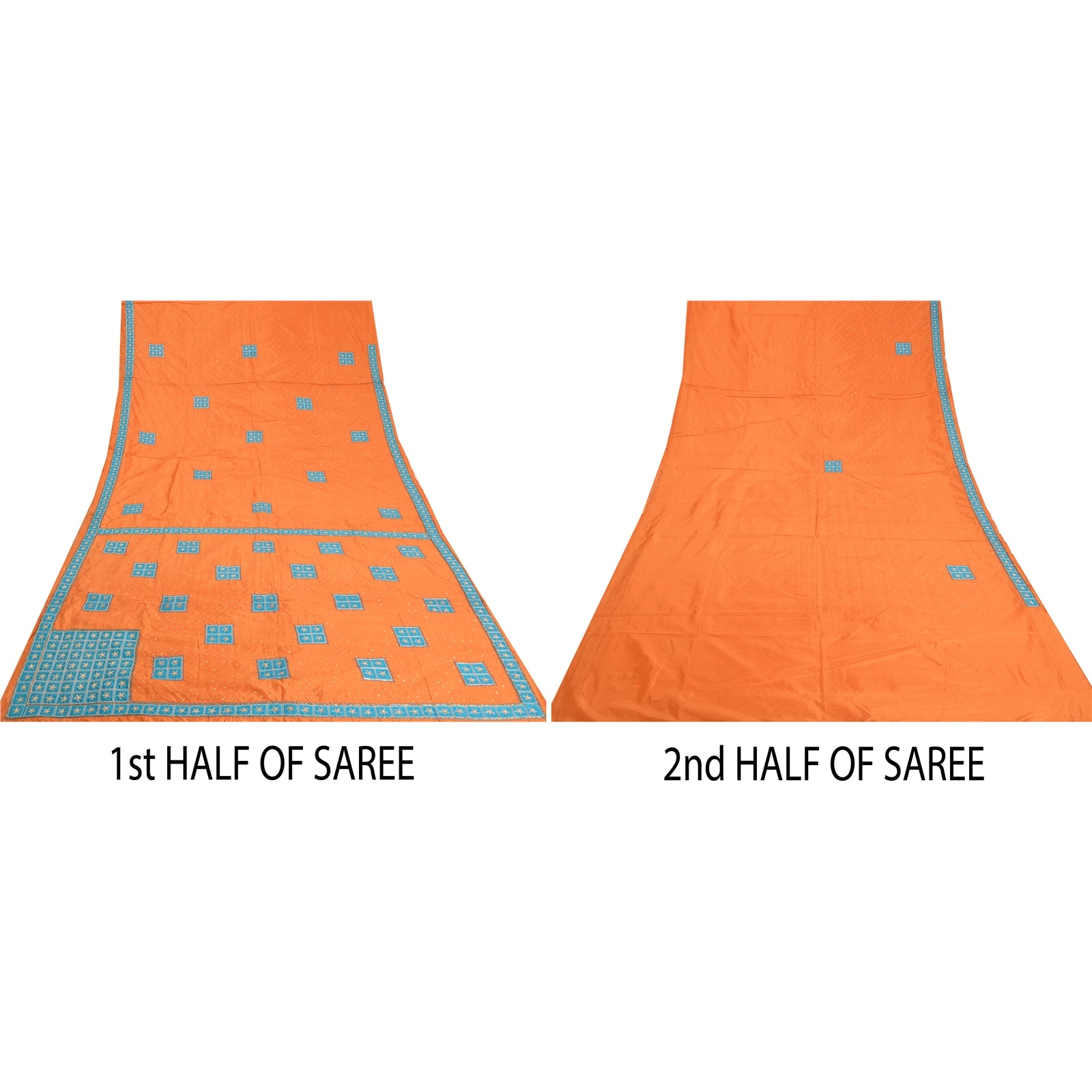 «ЦВЕТ ИЛИ ОТТЕНОК ИЗДЕЛИЯ МОЖЕТ БЫТЬ ТЕМНЕЕ ИЛИ СВЕТЛЕЕ, ЧЕМ НА ИЗОБРАЖЕНИИ». Красивое сари из чистого шелка шафранового цвета с ручной вышивкой/Экологичная ткань. Pallu & border имеет вышитый цветочный узор в виде пэчворка из синей устойчивой ткани, украшенный металлизированной золотистой вышивкой зари/зардози, золотыми пайетками, жемчужными бусинами и желтыми стеклянными бусинами. Центр сари отделан аналогичной лоскутной вышивкой с пайетками. Это сари можно использовать и для различных идей рукоделия. Используйте его для дизайна одежды, в качестве пледа, для оформления окон, обивки, столового белья и многого другого. Дайте волю своим творческим сокам. «Международные покупатели, обратите внимание: Импортные пошлины, налоги и сборы не включены в цену товара или стоимость почтовых расходов. Эти сборы оплачивает покупатель. Пожалуйста, свяжитесь с таможней вашей страны, чтобы определить, какими будут эти дополнительные расходы, до торгов или покупки. Покупатель оплачивает таможенную пошлину/налог. Она рассчитывается и взимается по-разному в каждой стране. Как продавец, я не имею никакого контроля над ней. НДС или налог с продаж рассчитывается платформой во время оформления заказа. Таможенный сбор оплачивается во время доставки.
