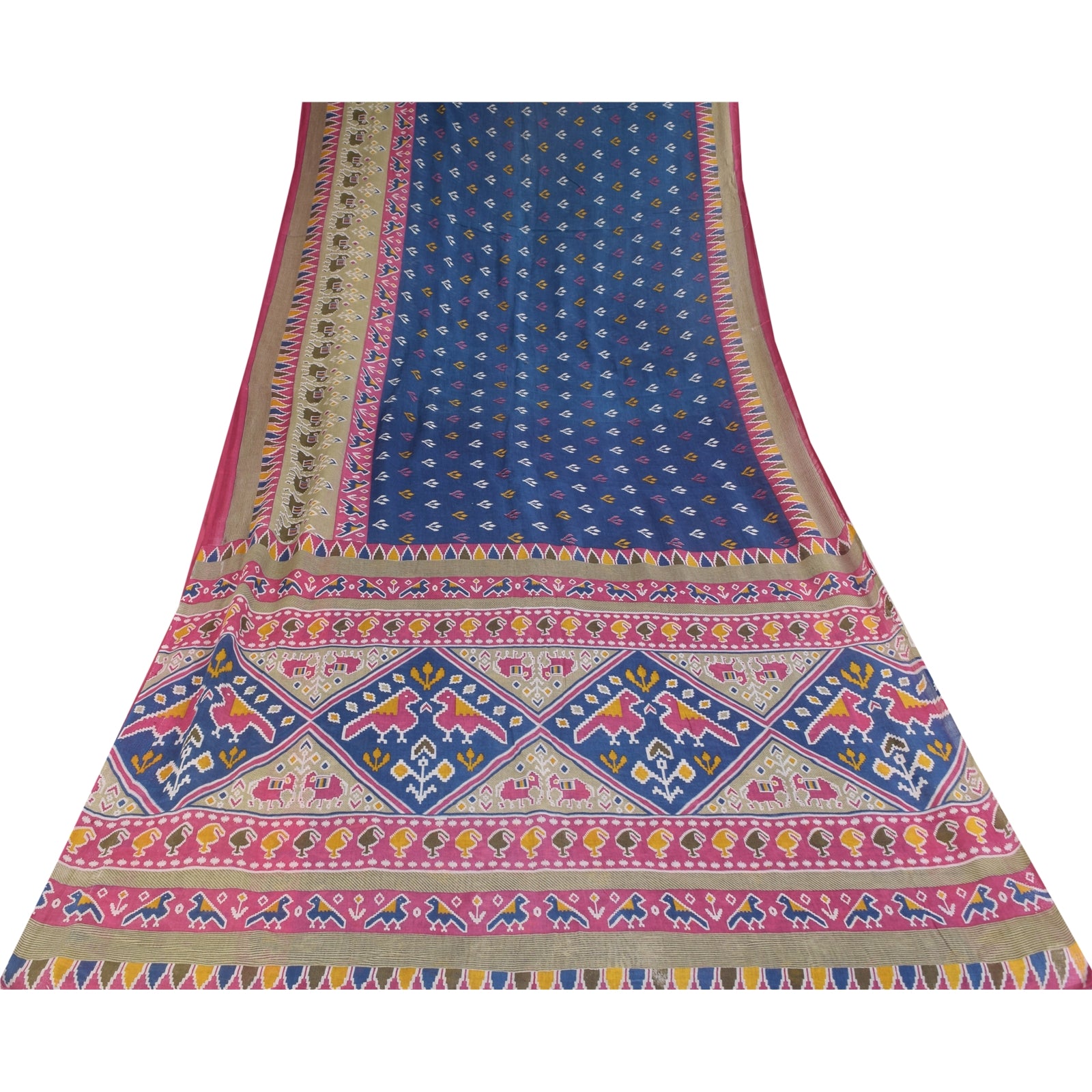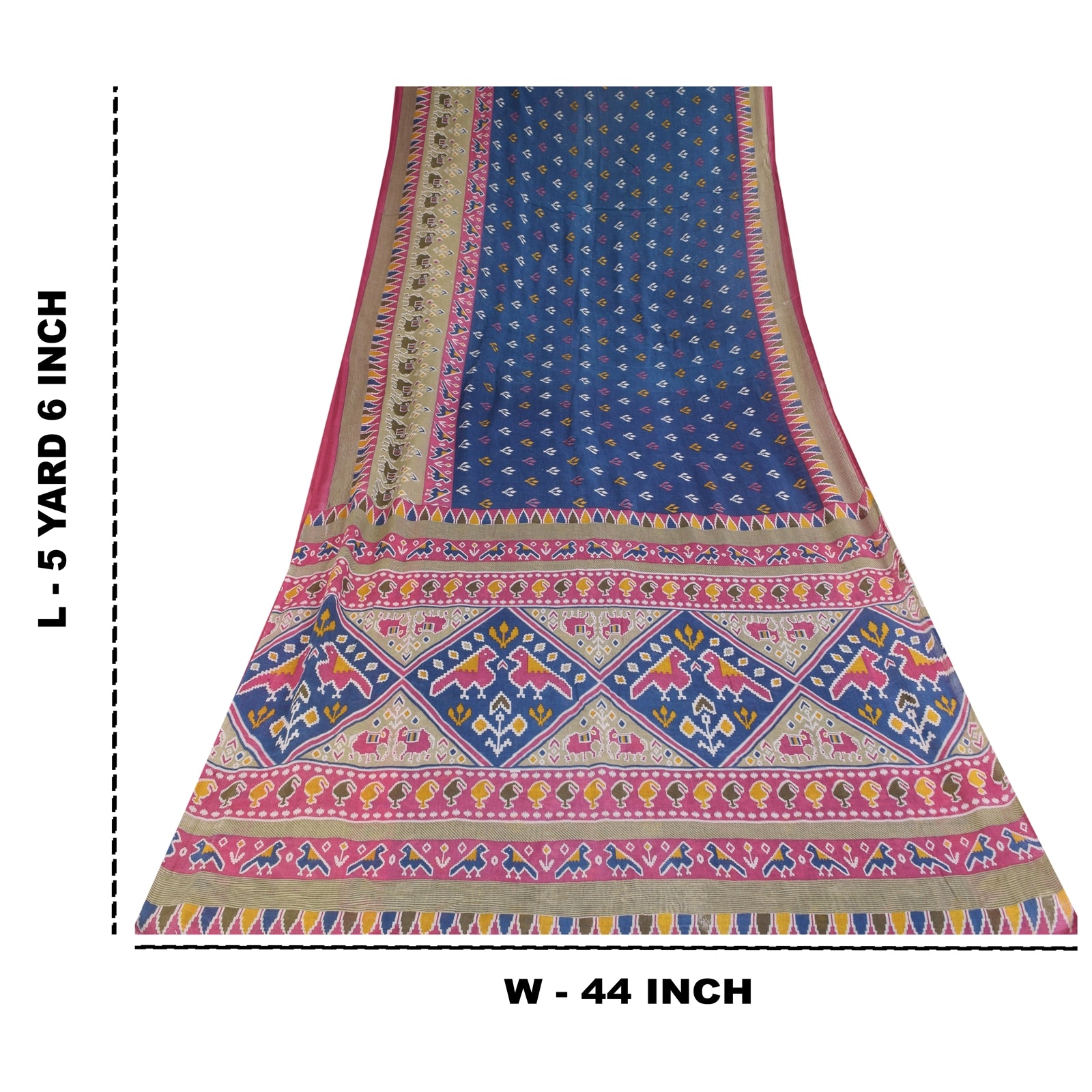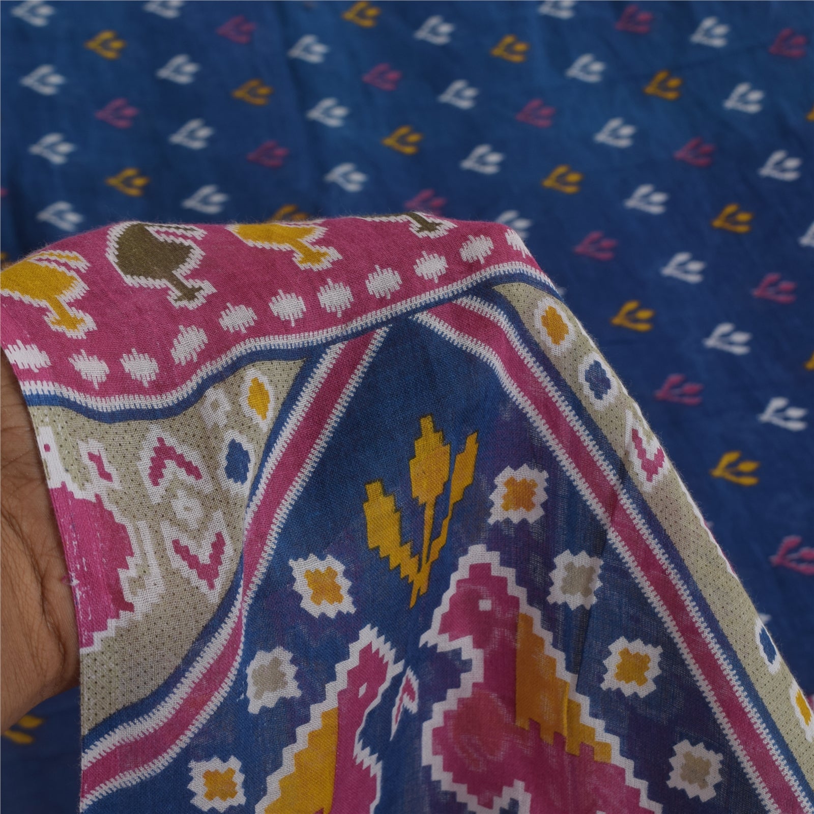 Санскритские винтажные сари синие Патан Патола напечатанное сари из чистого хлопка 5+ ярдов устойчивая ткань