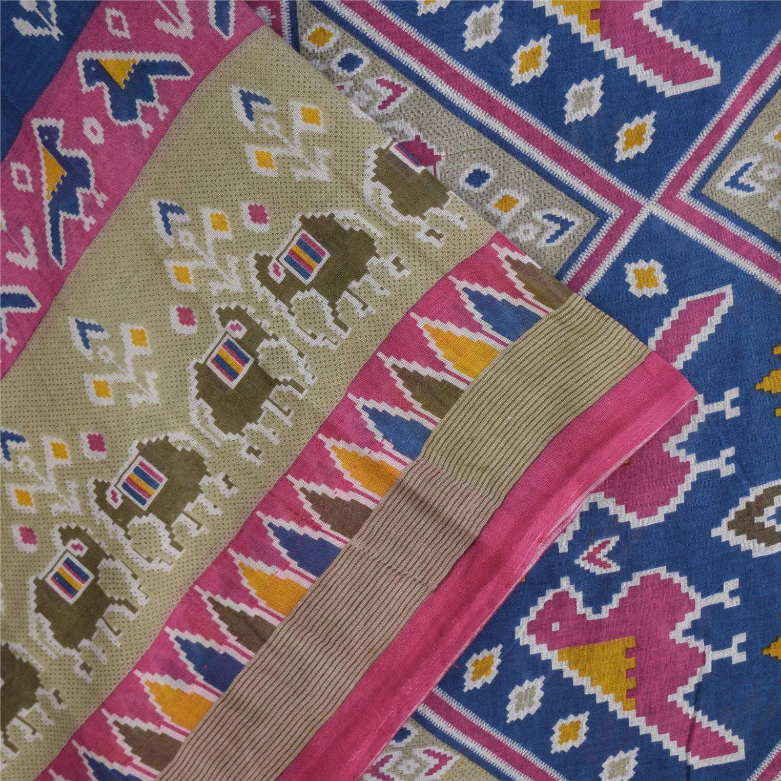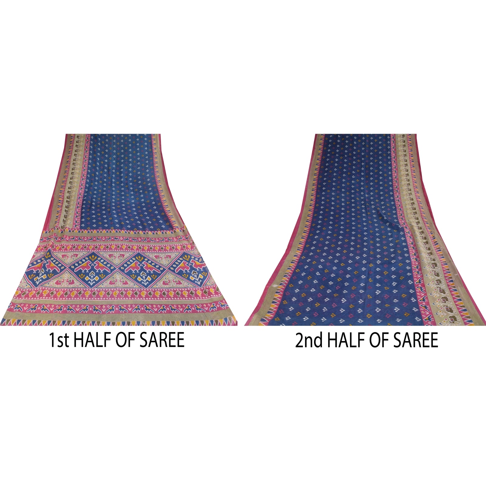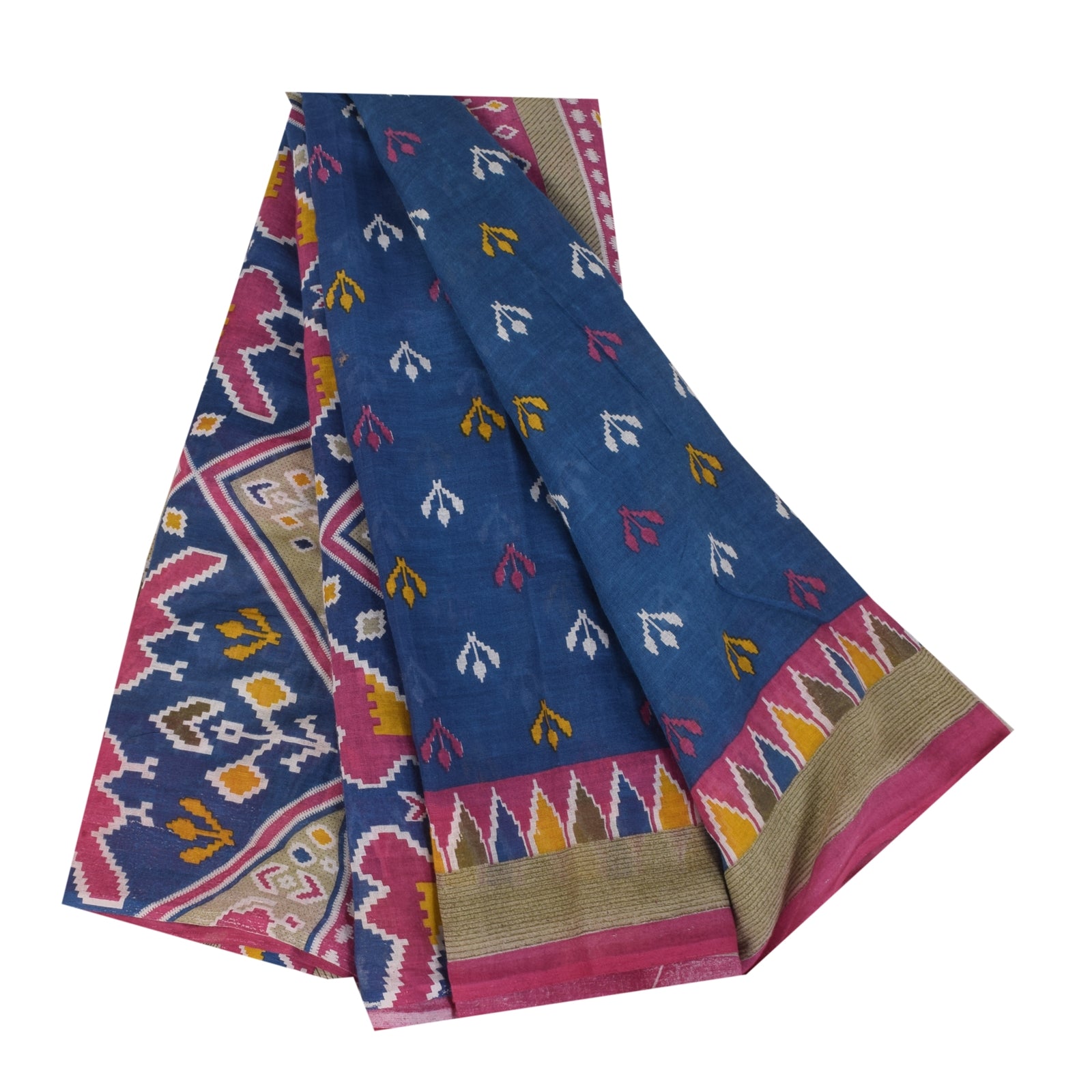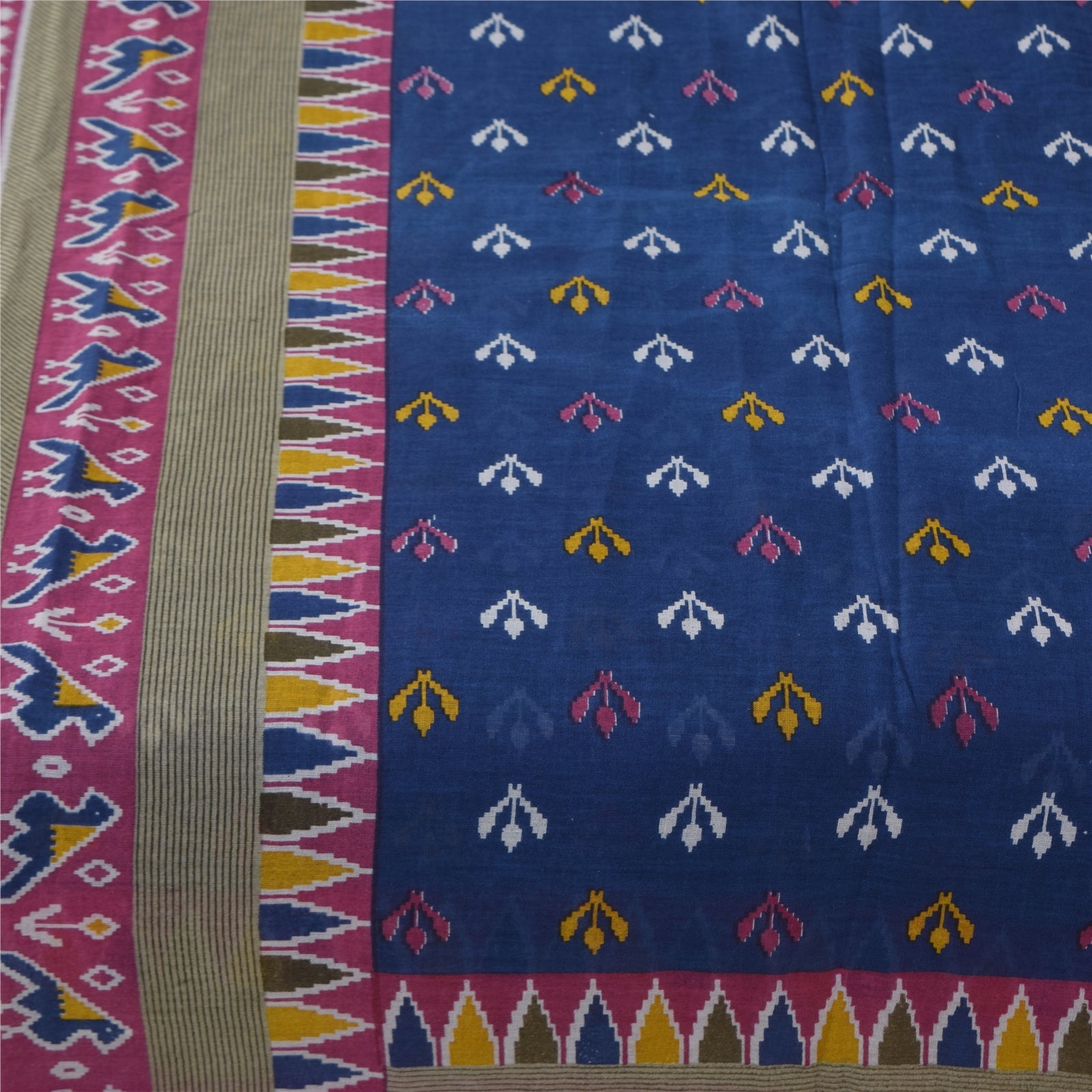 Санскритские винтажные сари синие Патан Патола напечатанное сари из чистого хлопка 5+ ярдов устойчивая ткань