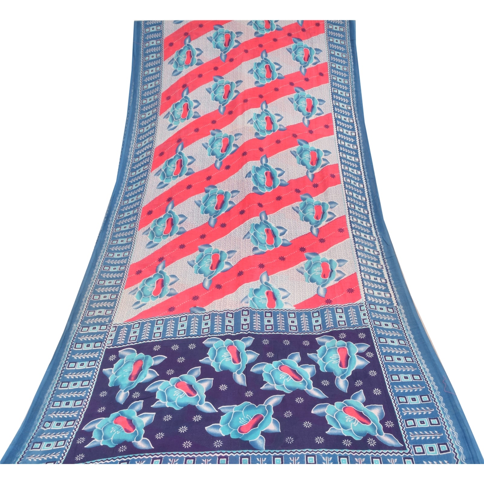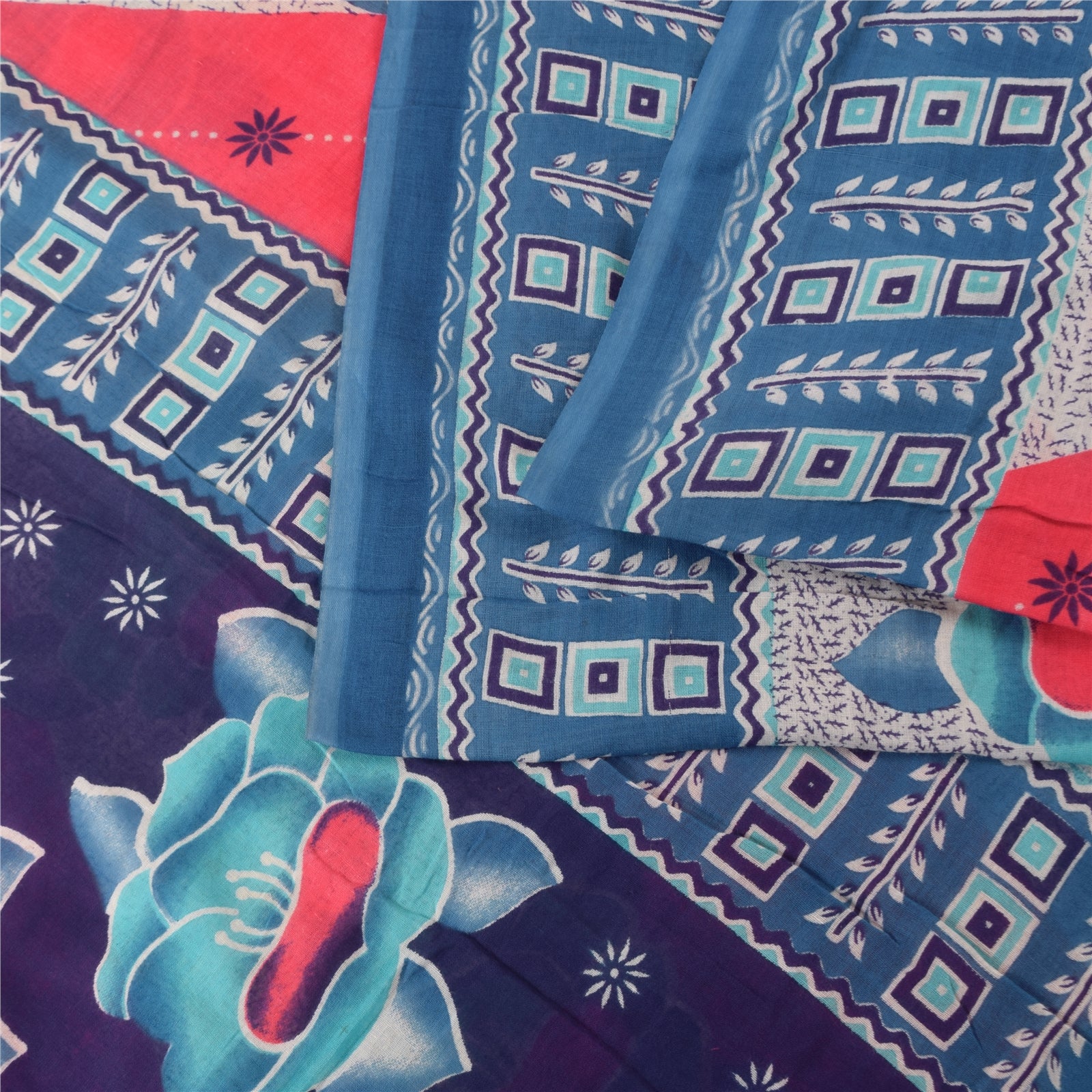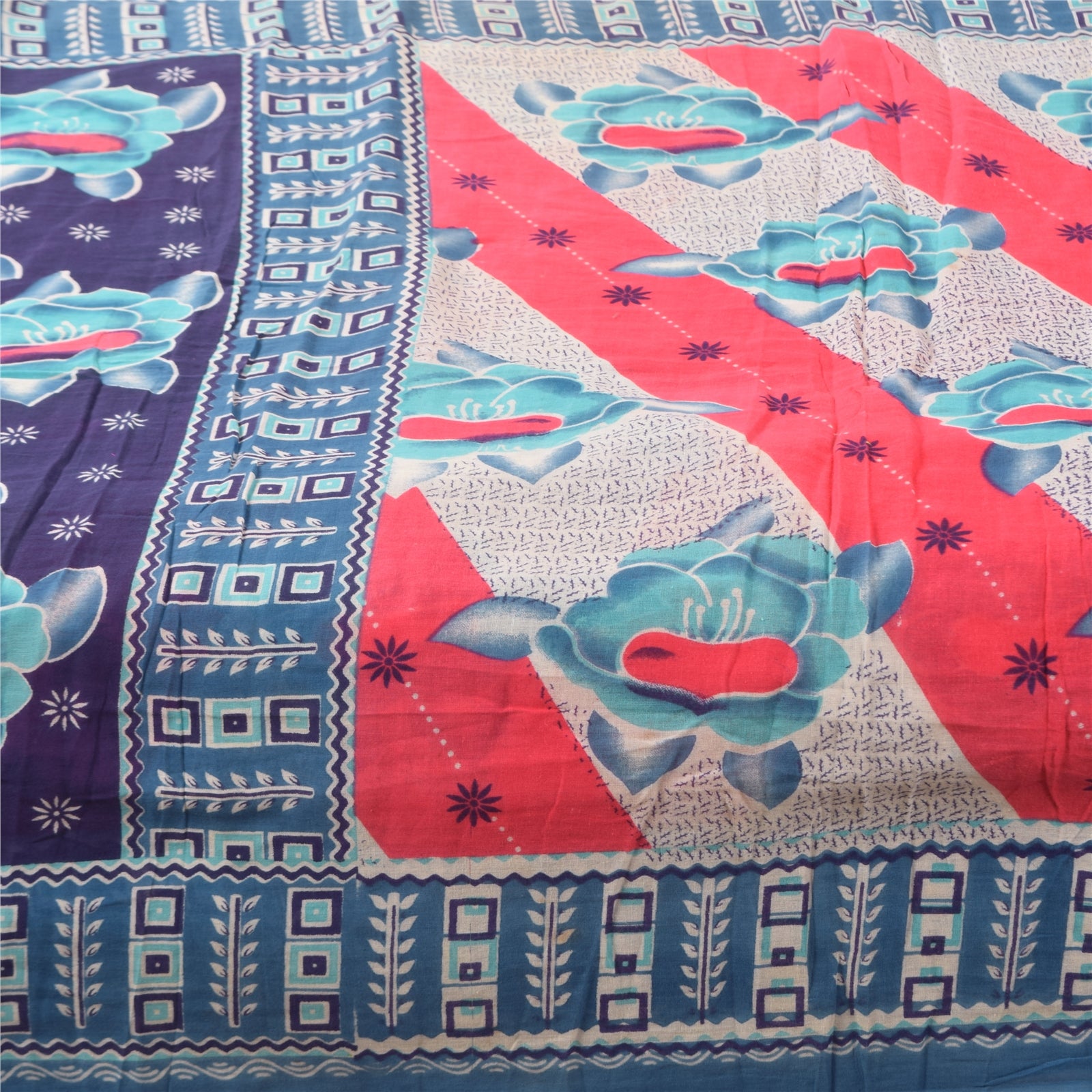Санскритские винтажные сари синие/красные 100% чистый хлопок набивное сари 5 ярдов ткань для рукоделия устойчивая ткань