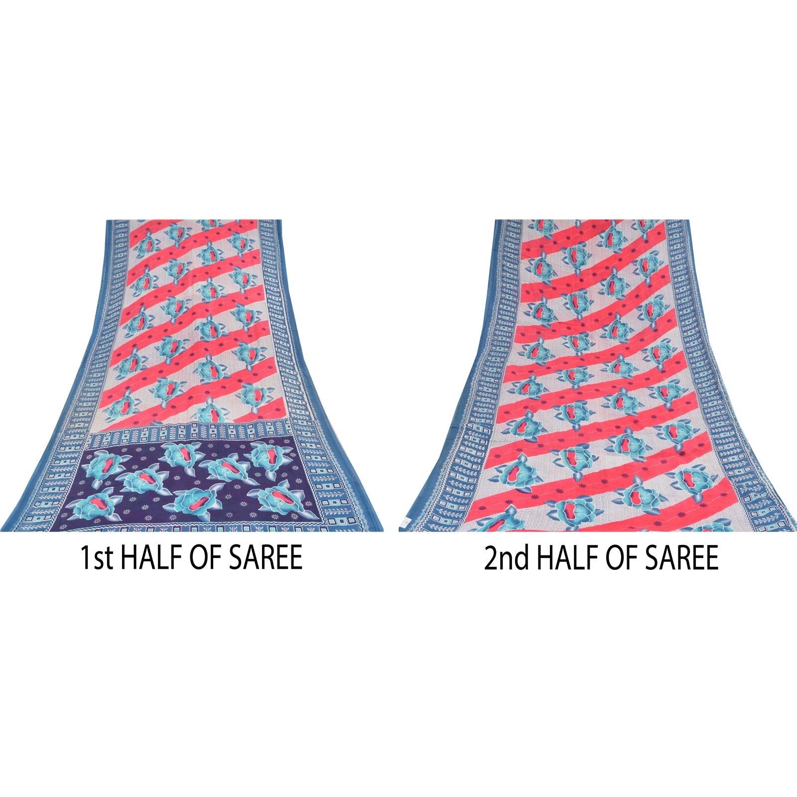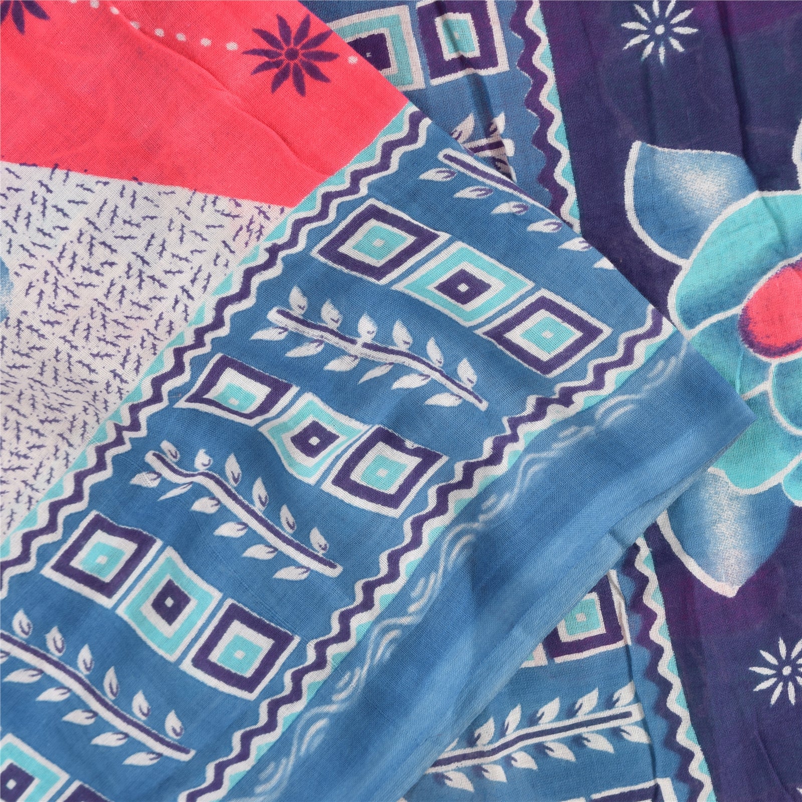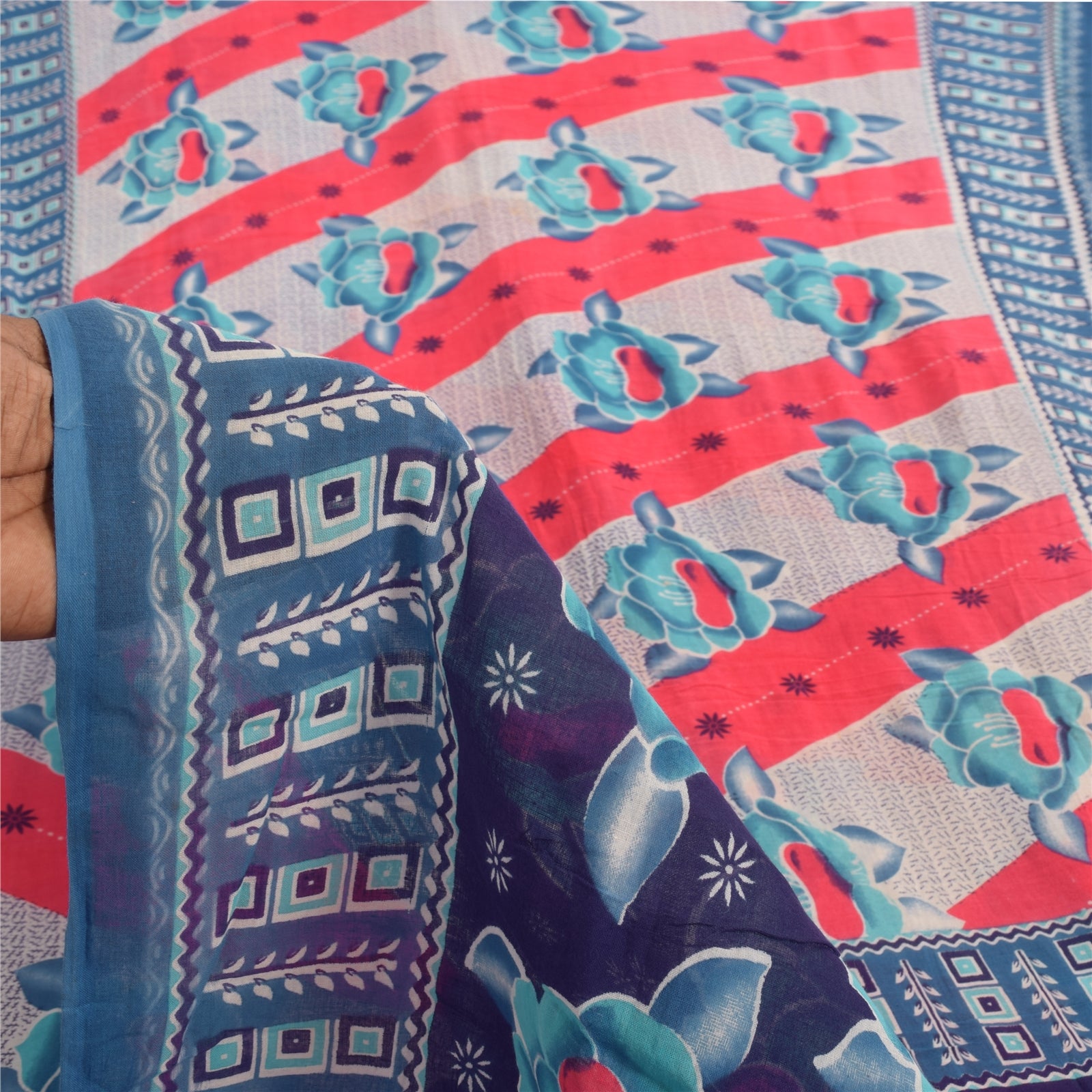 Санскритские винтажные сари синие/красные 100% чистый хлопок набивное сари 5 ярдов ткань для рукоделия устойчивая ткань